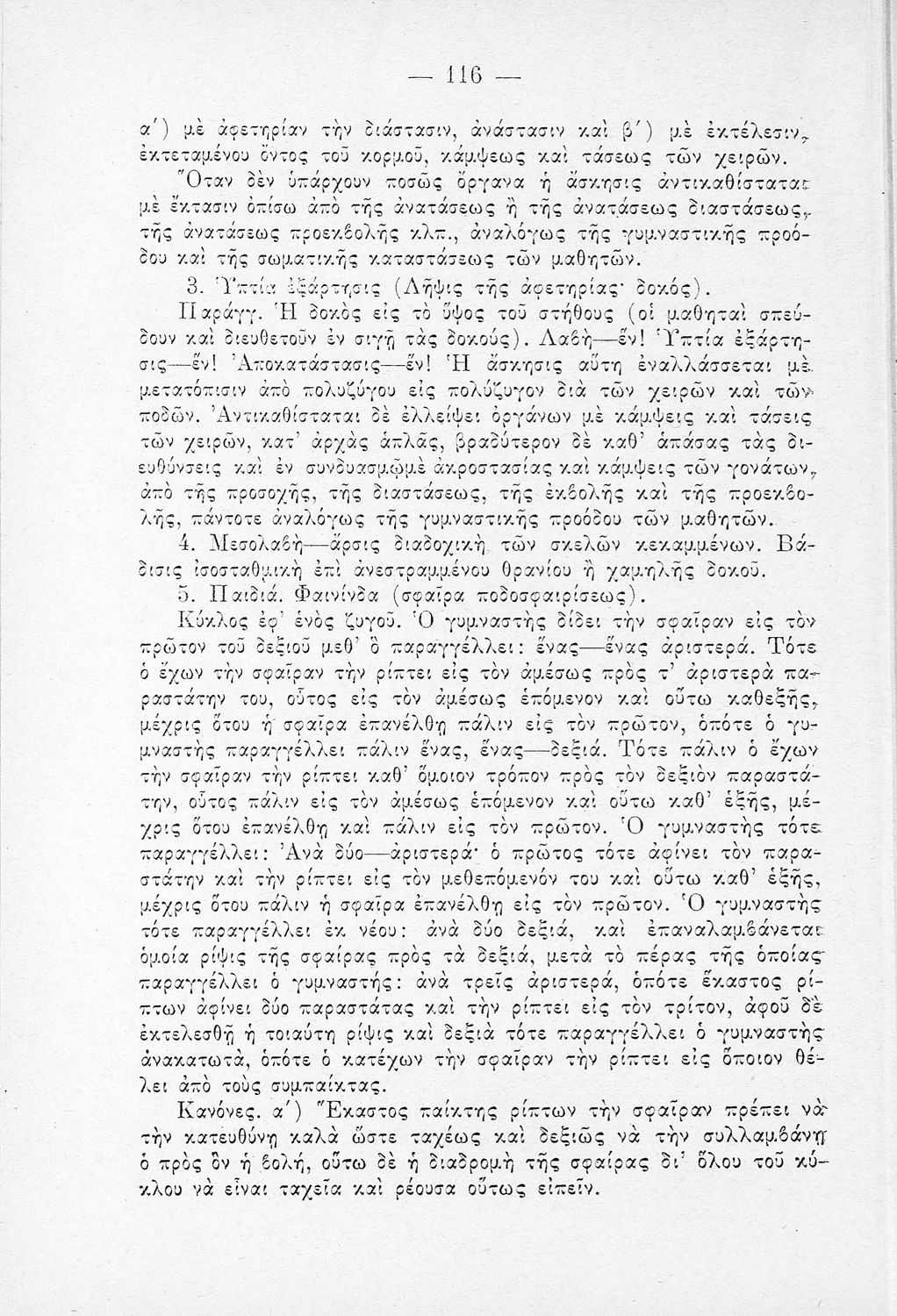 Παρουσίαση περιεχομένου: Παιδαγωγικό βοήθημα που απευθύνεται στους καθηγητές της μέσης και αποσκοπεί στο να θεμελιώσει την Γυμναστική ως εφαρμοσμένη επιστήμη. Ο συγγραφέας ήταν διευθυντής του τμήματος σωματικής αγωγής του Υπουργείου Παιδείας και Θρησκευμάτων.
