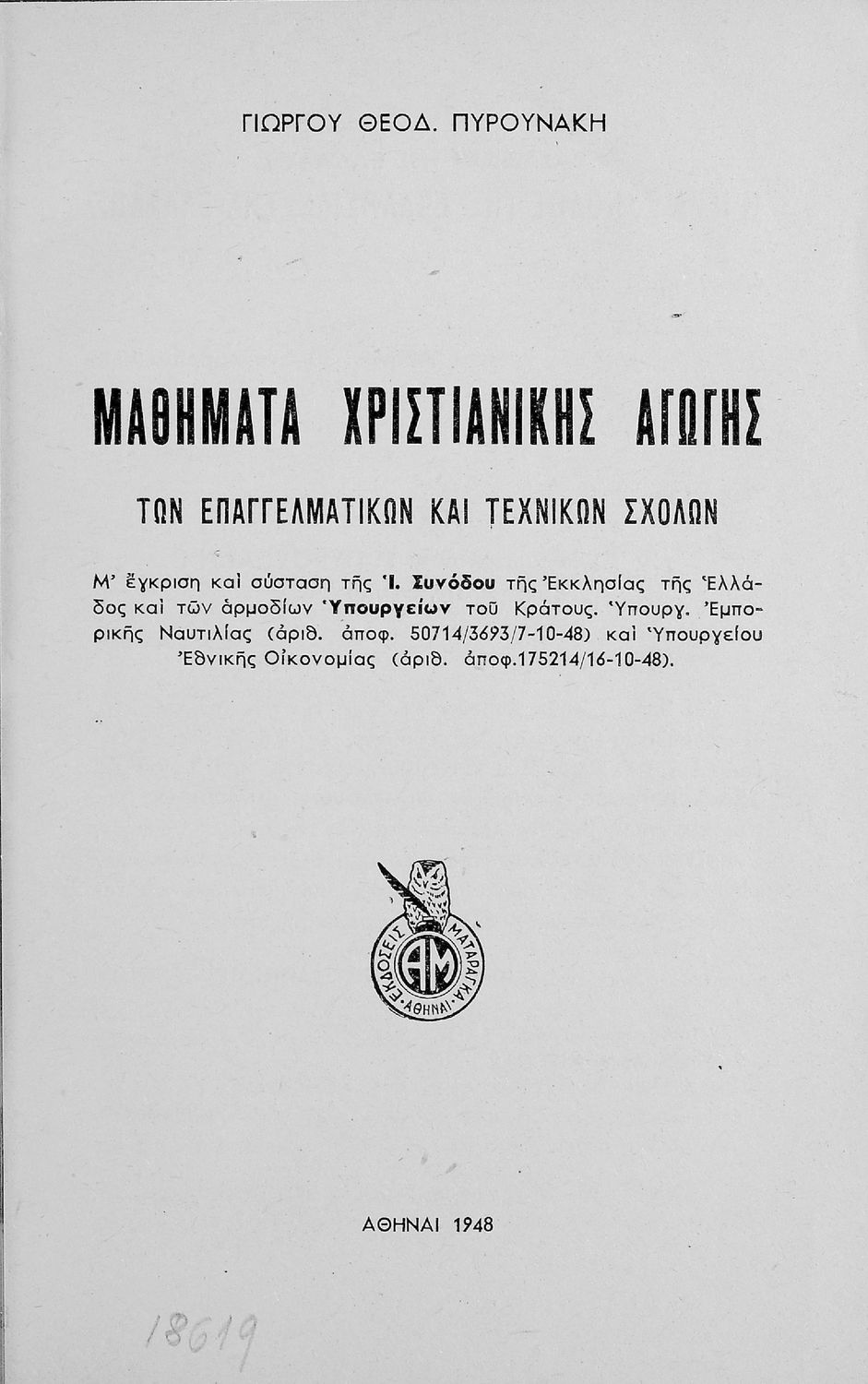Σχολικό εγχειρίδιο Θρησκευτικών για τις Επαγγελματικές και Τεχνικές Σχολές που παρουσιάζει τα δόγματα, την οργάνωση και τη διδασκαλία της Ορθόδοξης Εκκλησίας και περιέχει περικοπές από τα Ευαγγέλια.