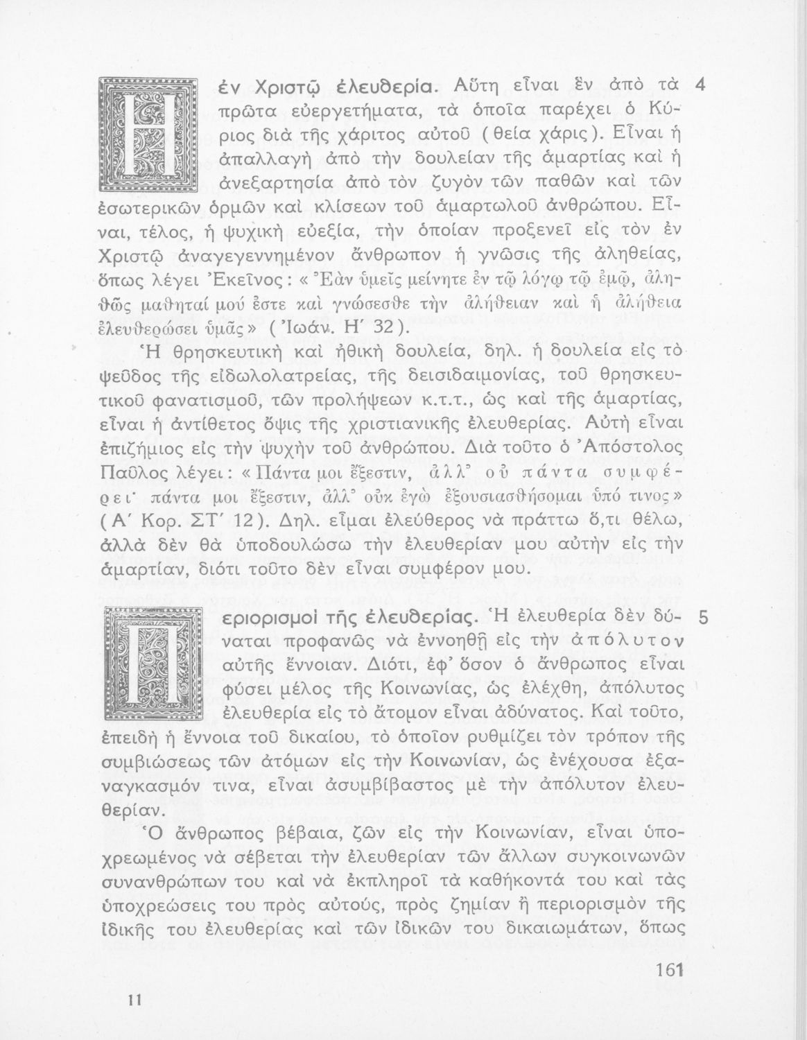 Σχολικό εγχειρίδιο Θρησκευτικών ΣΤ΄ Γυμνασίου που πραγματεύεται ζητήματα χριστιανικής ηθικής και εστιάζει στη ελευθερία της βούλησης και τη σχέση του ατόμου με το Θεό, την εργασία, τους συνανθρώπους του, και το κράτος.