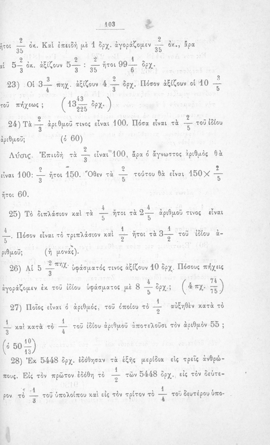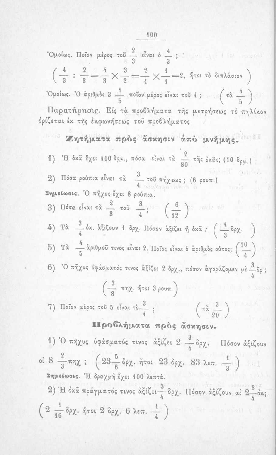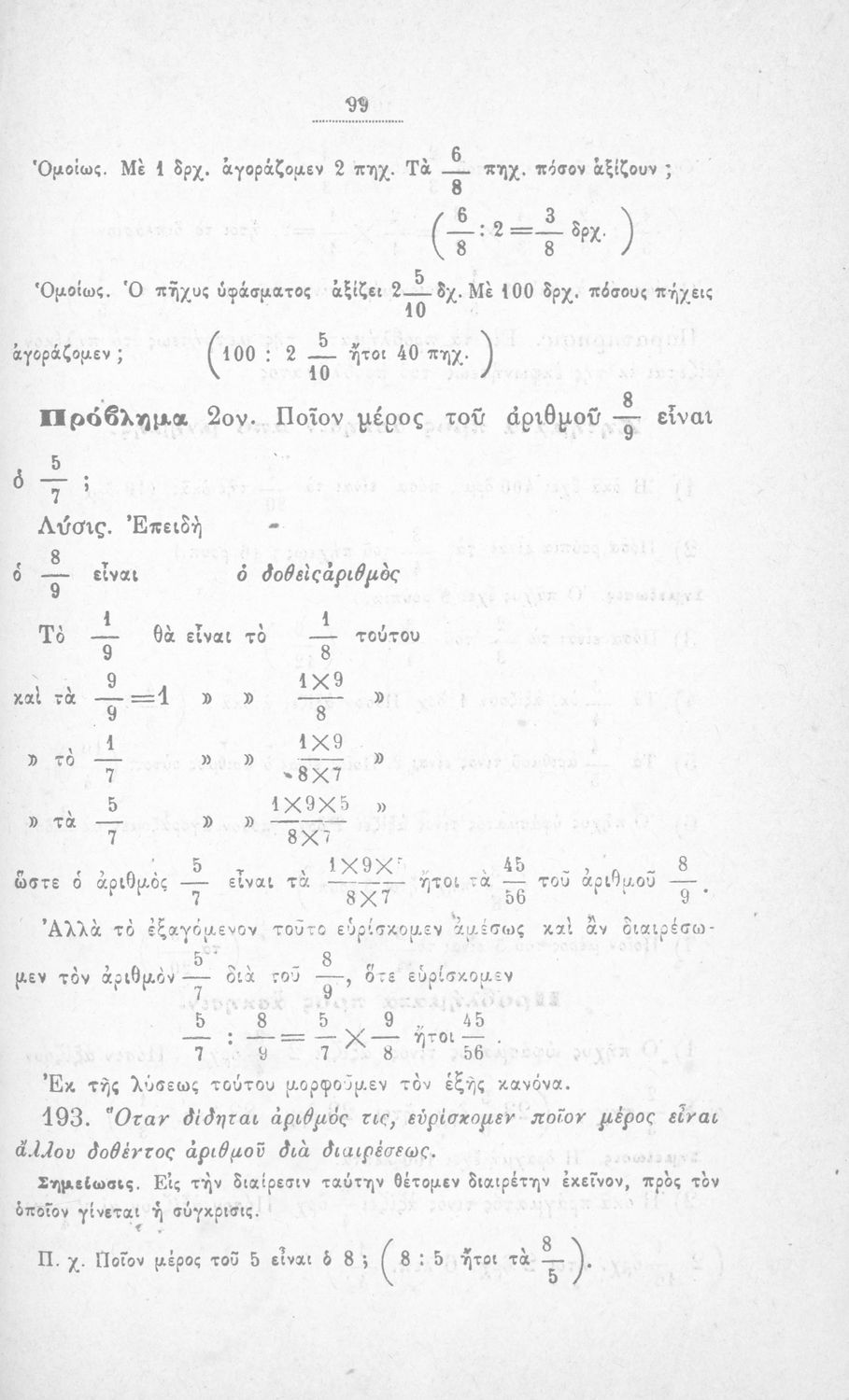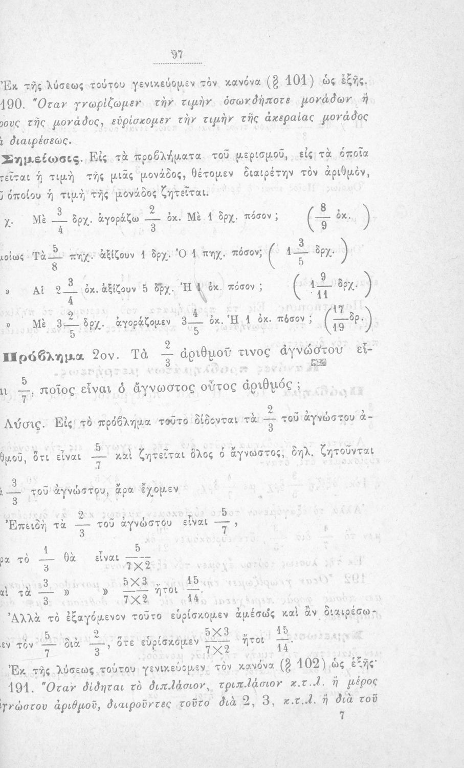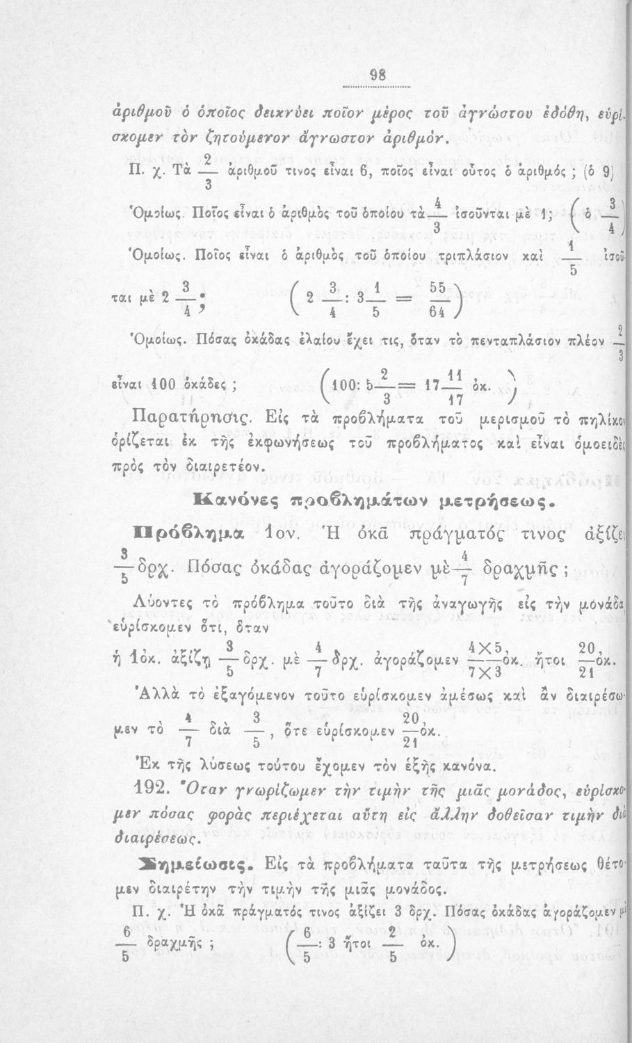Σχολικό εγχειρίδιο Αριθμητικής για τα Ελληνικά σχολεία και Παρθεναγωγεία που περιέχει θεωρία και ασκήσεις.