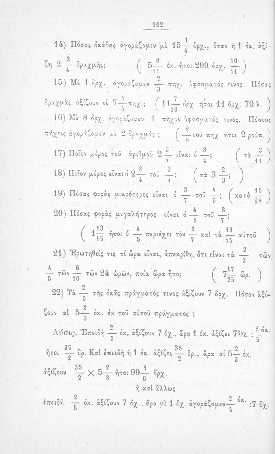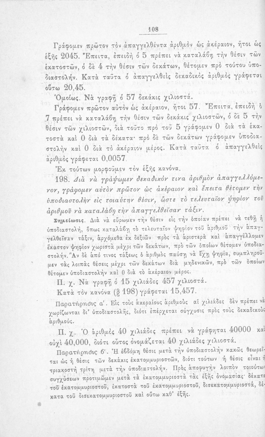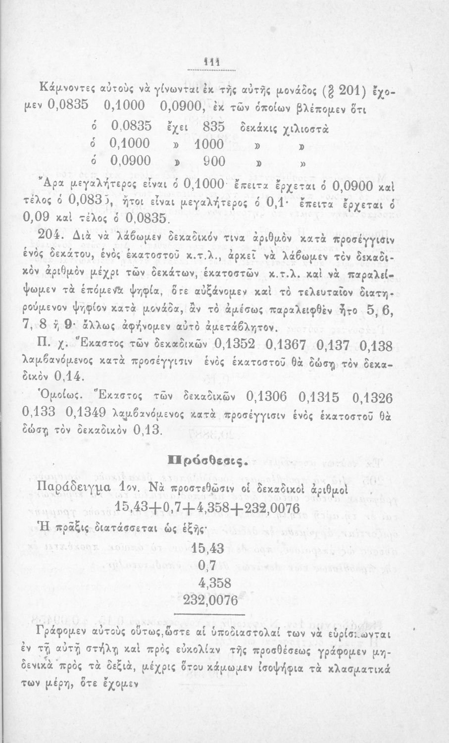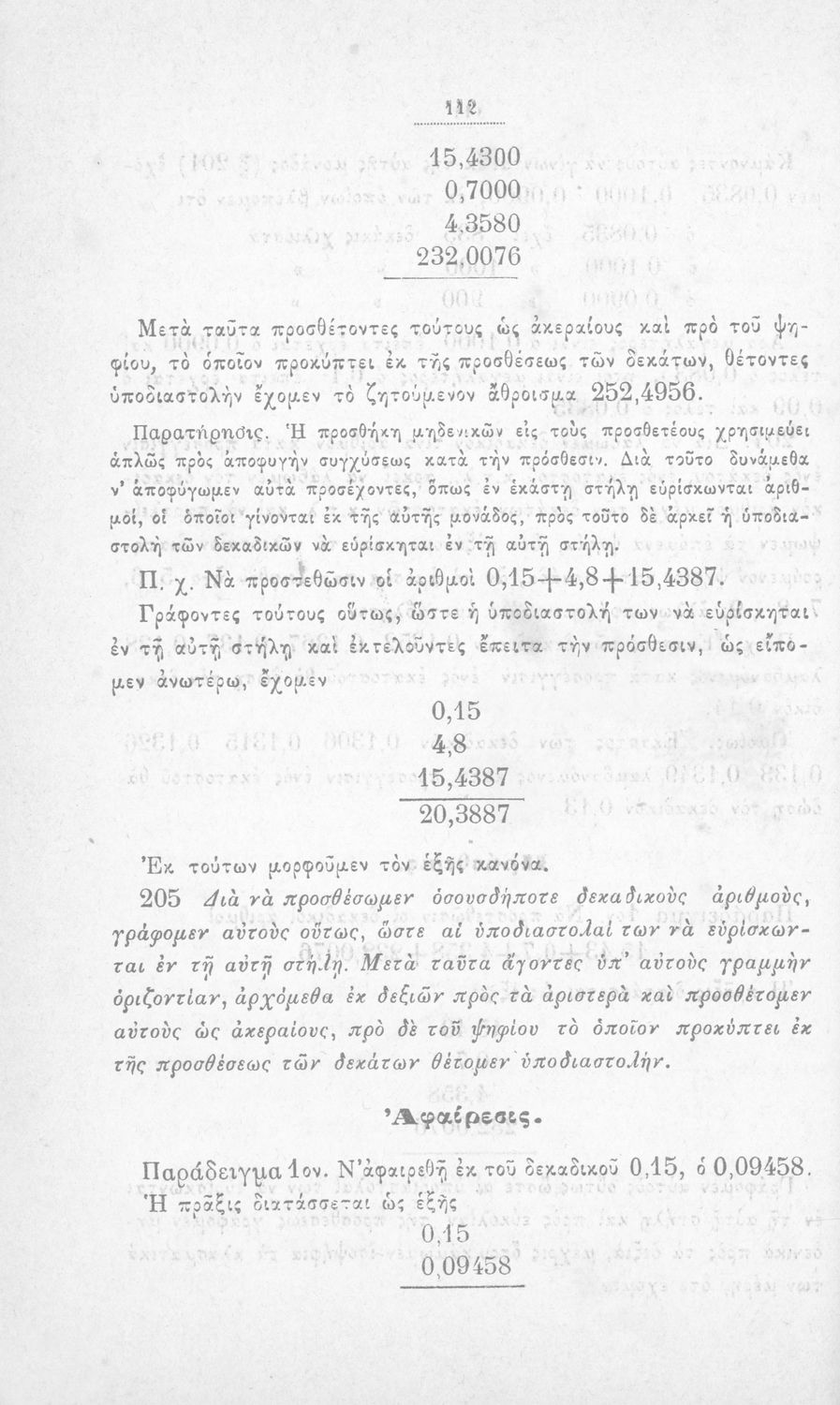 Σχολικό εγχειρίδιο Αριθμητικής για τα Ελληνικά και Αστικά Σχολεία και τα Παρθεναγωγεία που εστιάζει στις αριθμητικές πράξεις, τα κλάσματα, τους δεκαδικούς και συμμιγείς αριθμούς, και τις δυνάμεις. Περιέχει και