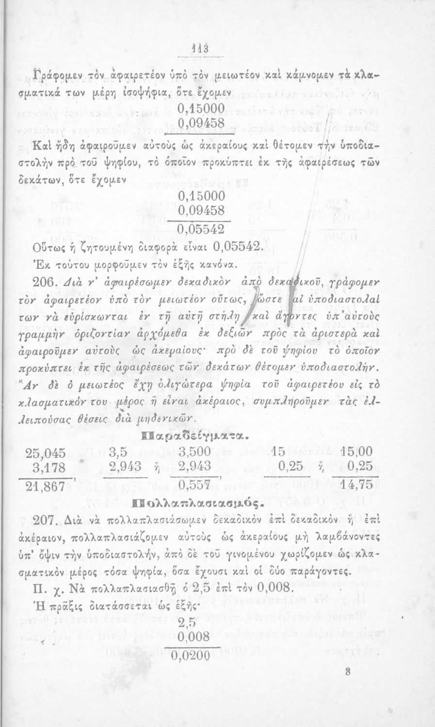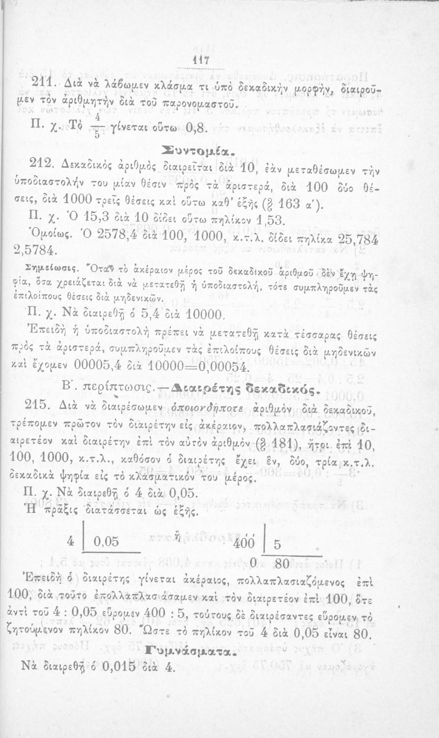 Σχολικό εγχειρίδιο Αριθμητικής για τα Ελληνικά και Αστικά Σχολεία και τα Παρθεναγωγεία που εστιάζει στις αριθμητικές πράξεις, τα κλάσματα, τους δεκαδικούς και συμμιγείς αριθμούς, και τις δυνάμεις. Περιέχει και