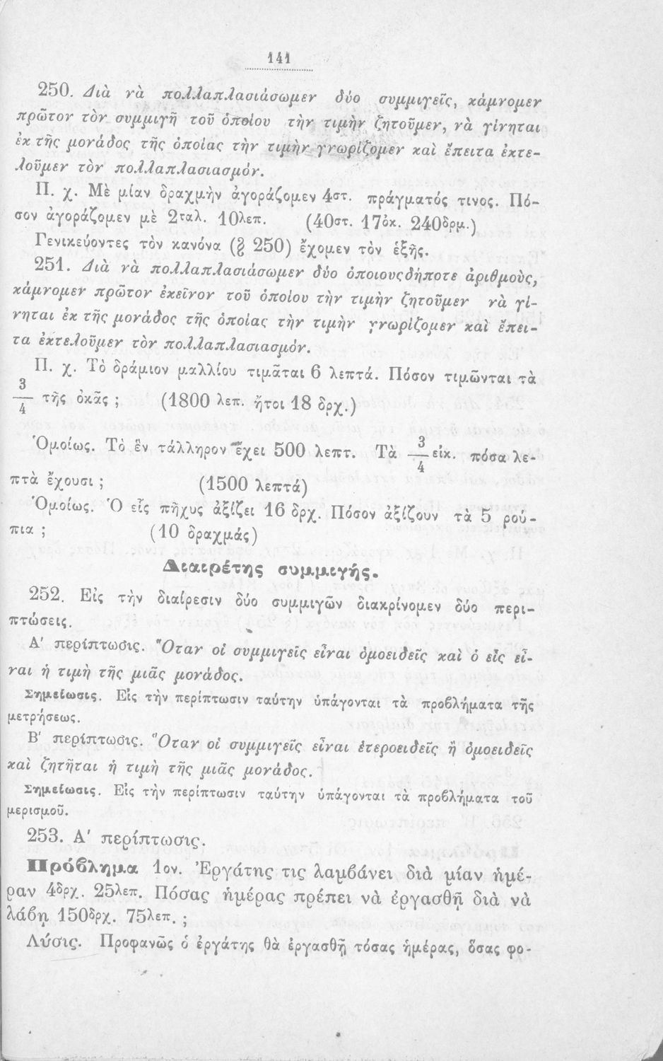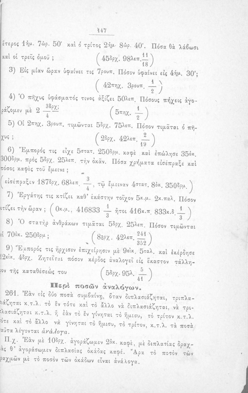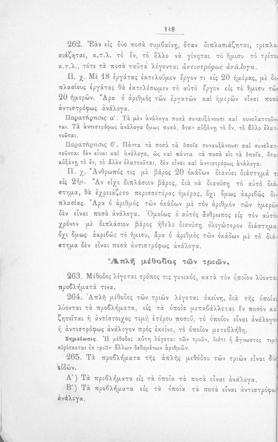 Σχολικό εγχειρίδιο Αριθμητικής για τα Ελληνικά σχολεία και Παρθεναγωγεία που περιέχει θεωρία και ασκήσεις.