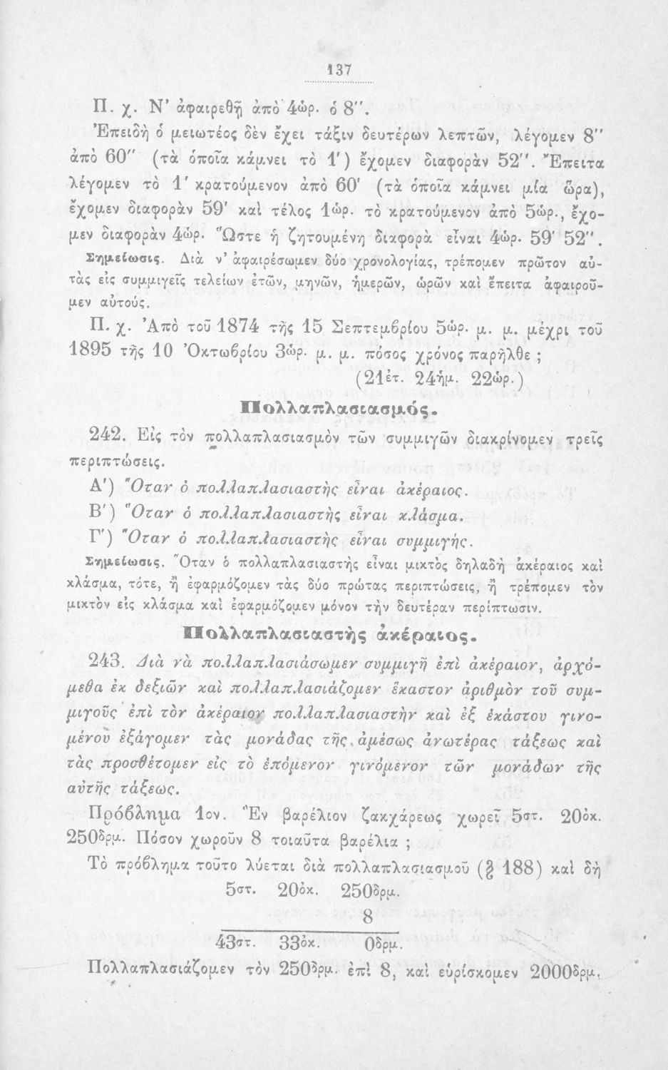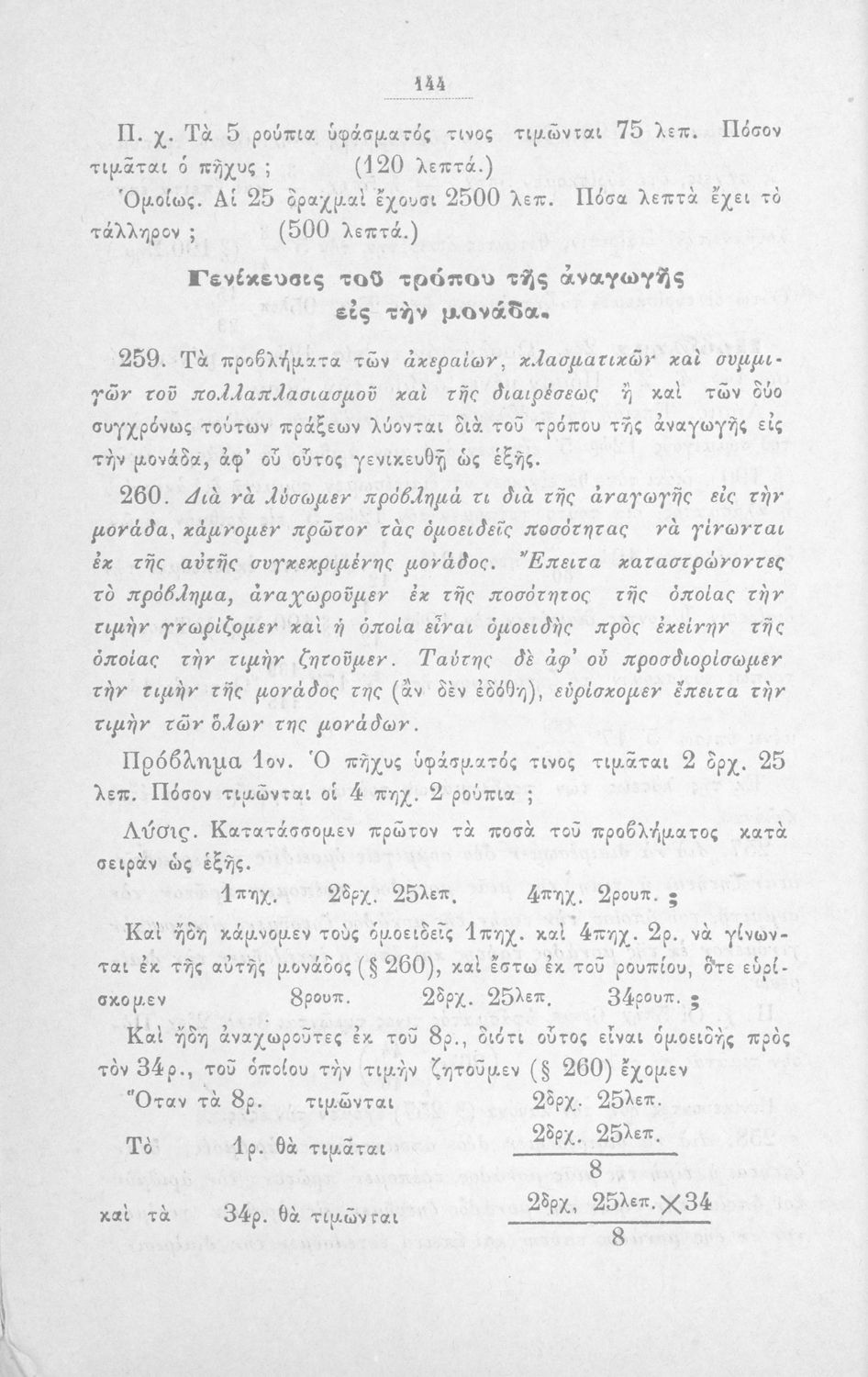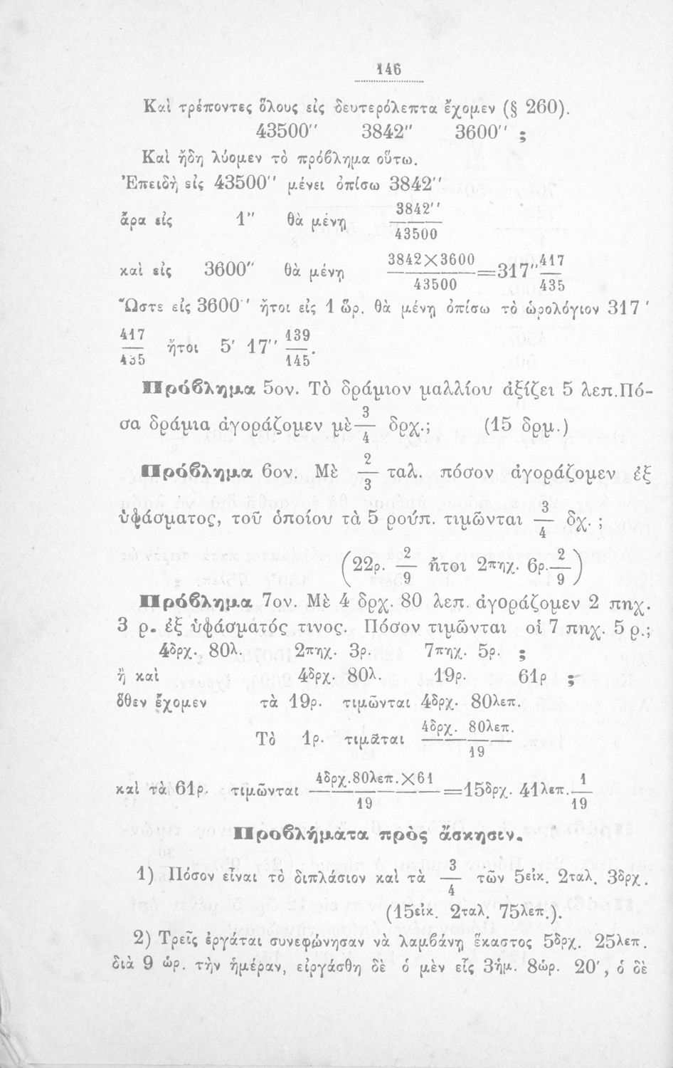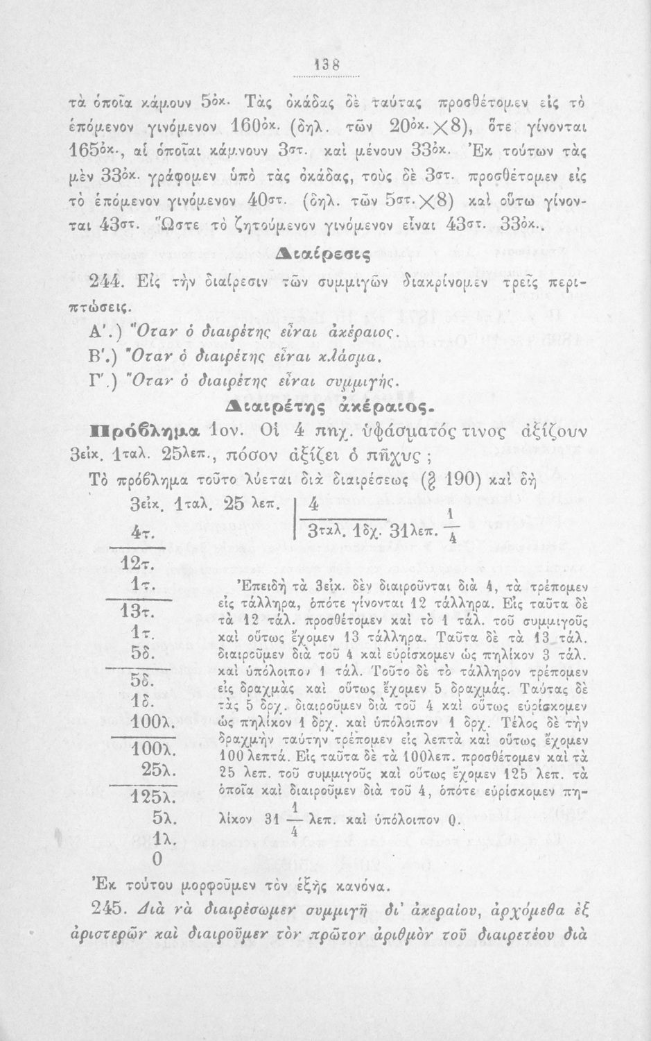 Σχολικό εγχειρίδιο Αριθμητικής για τα Ελληνικά σχολεία και Παρθεναγωγεία που περιέχει θεωρία και ασκήσεις.