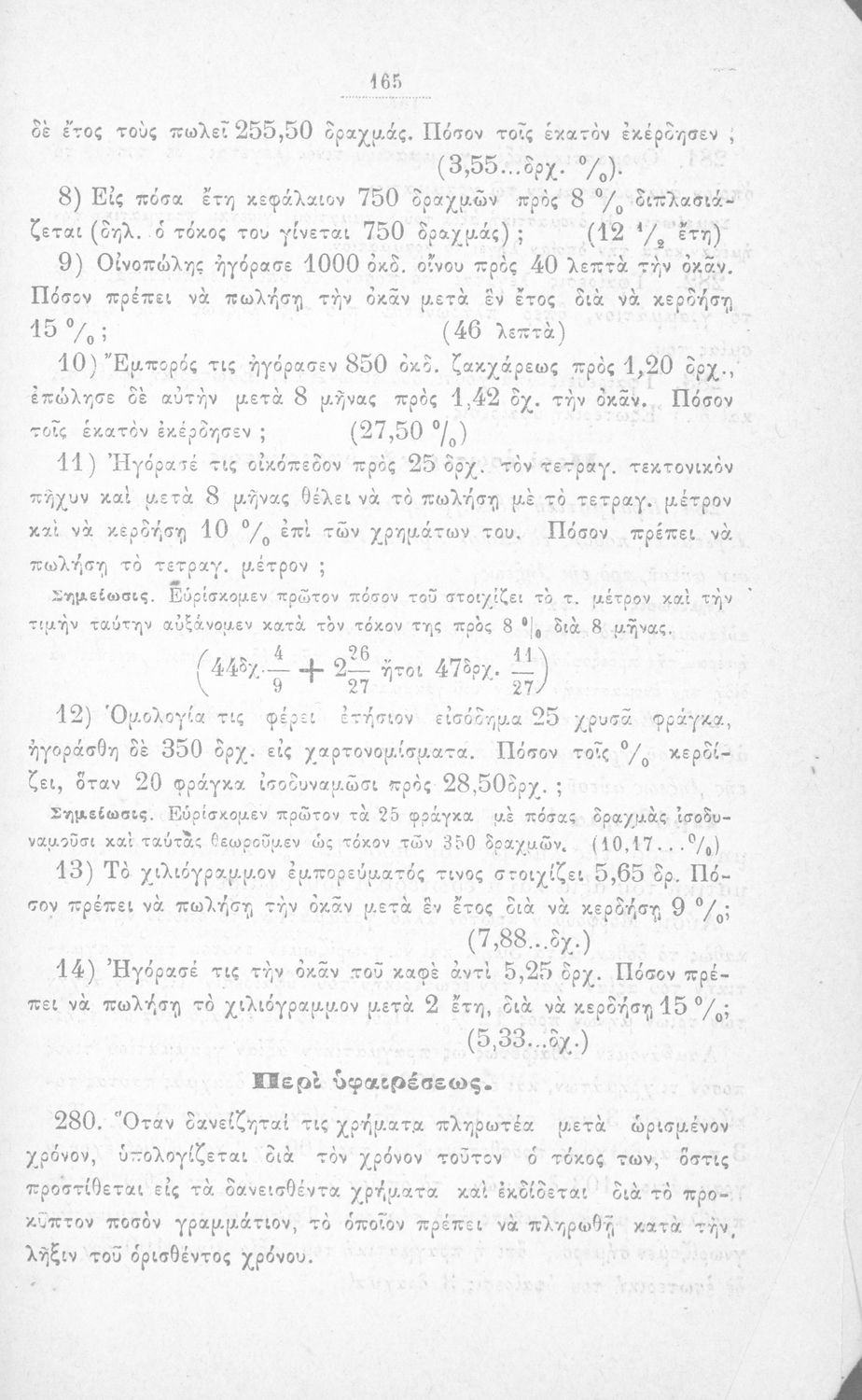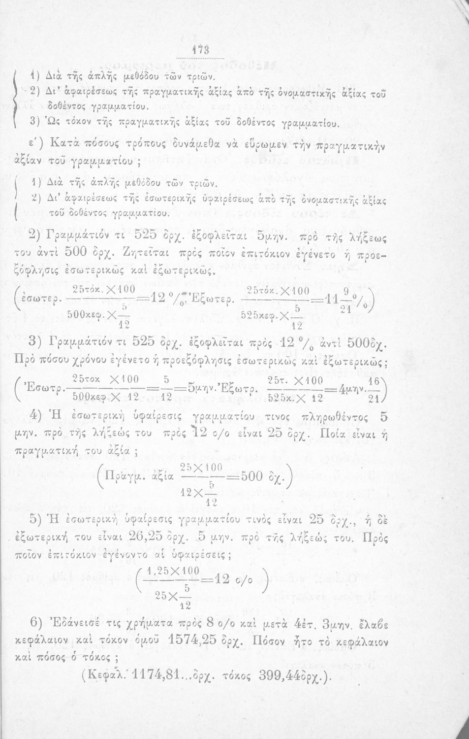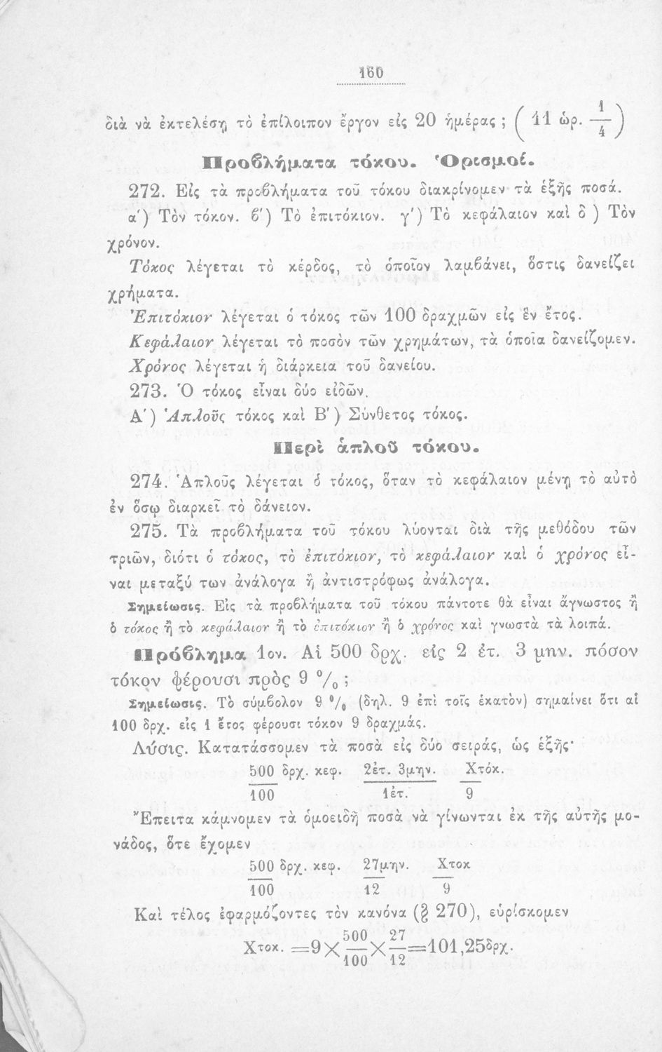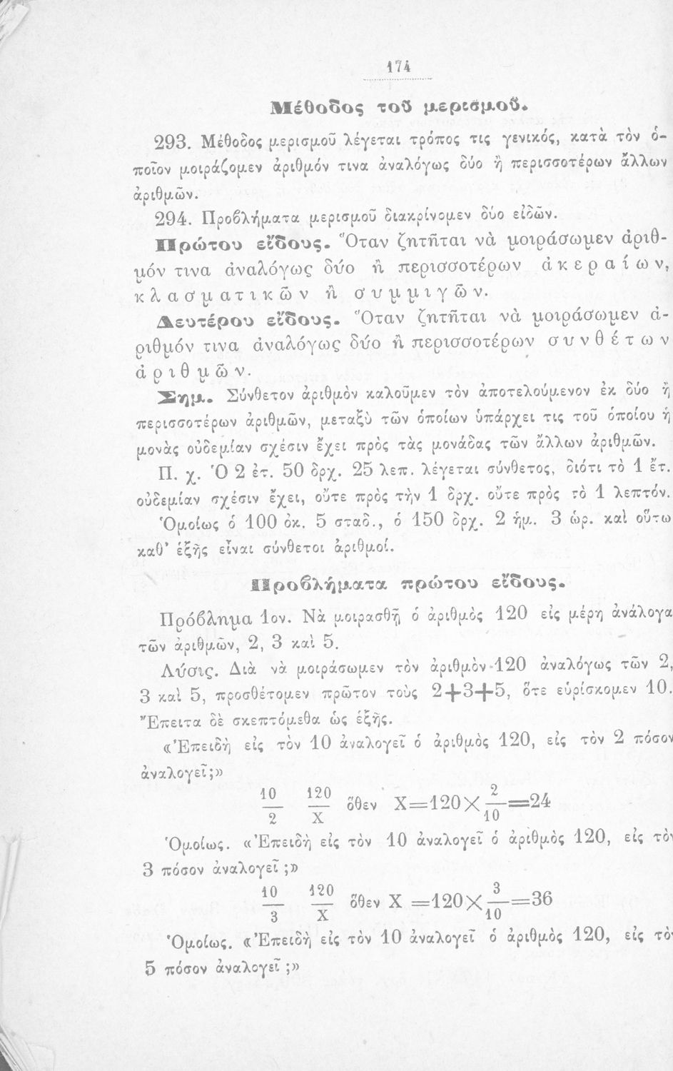 Σχολικό εγχειρίδιο Αριθμητικής για τα Ελληνικά σχολεία και Παρθεναγωγεία που περιέχει θεωρία και ασκήσεις.