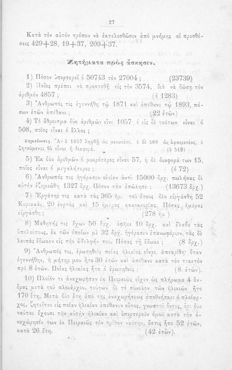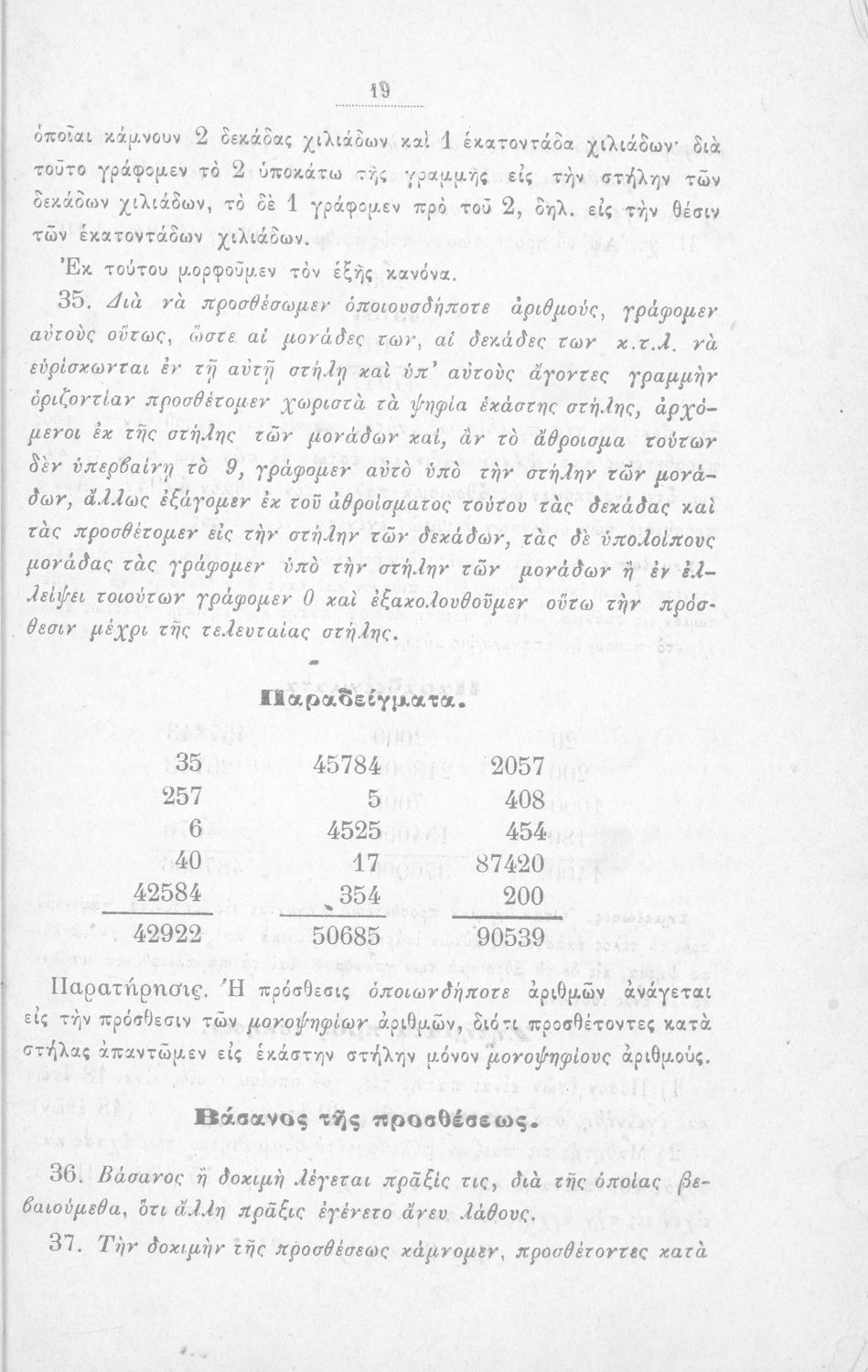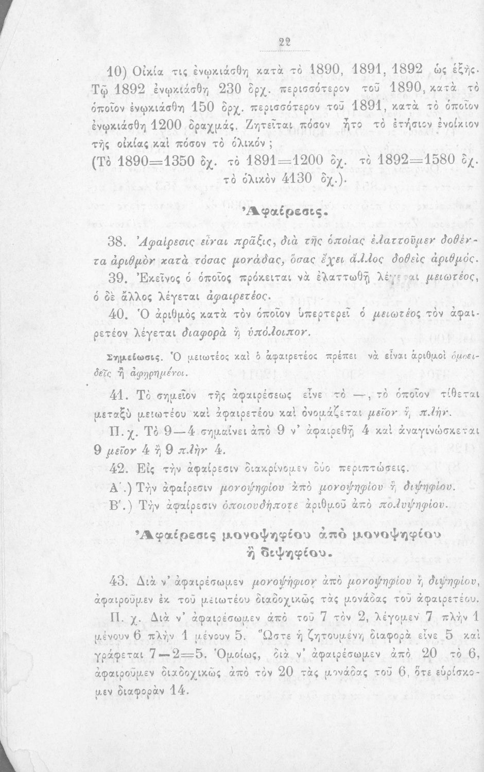 Σχολικό εγχειρίδιο Αριθμητικής για τα Ελληνικά σχολεία και Παρθεναγωγεία που περιέχει θεωρία και ασκήσεις.