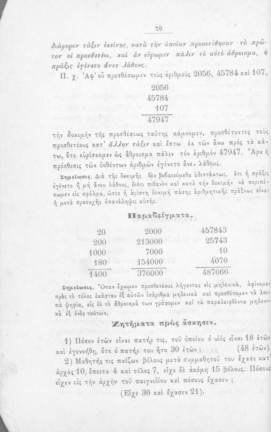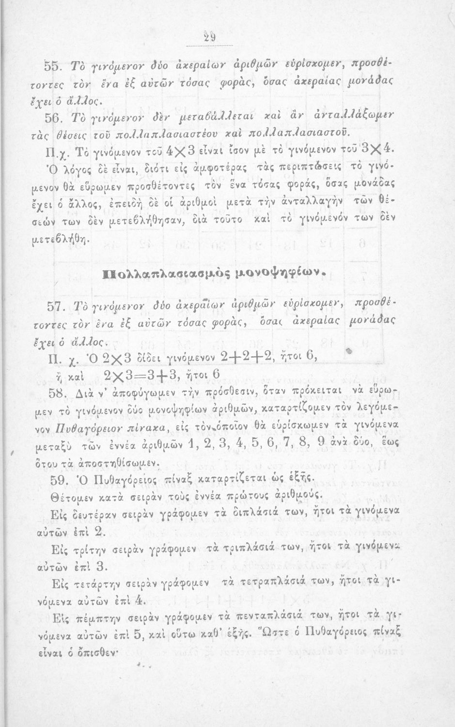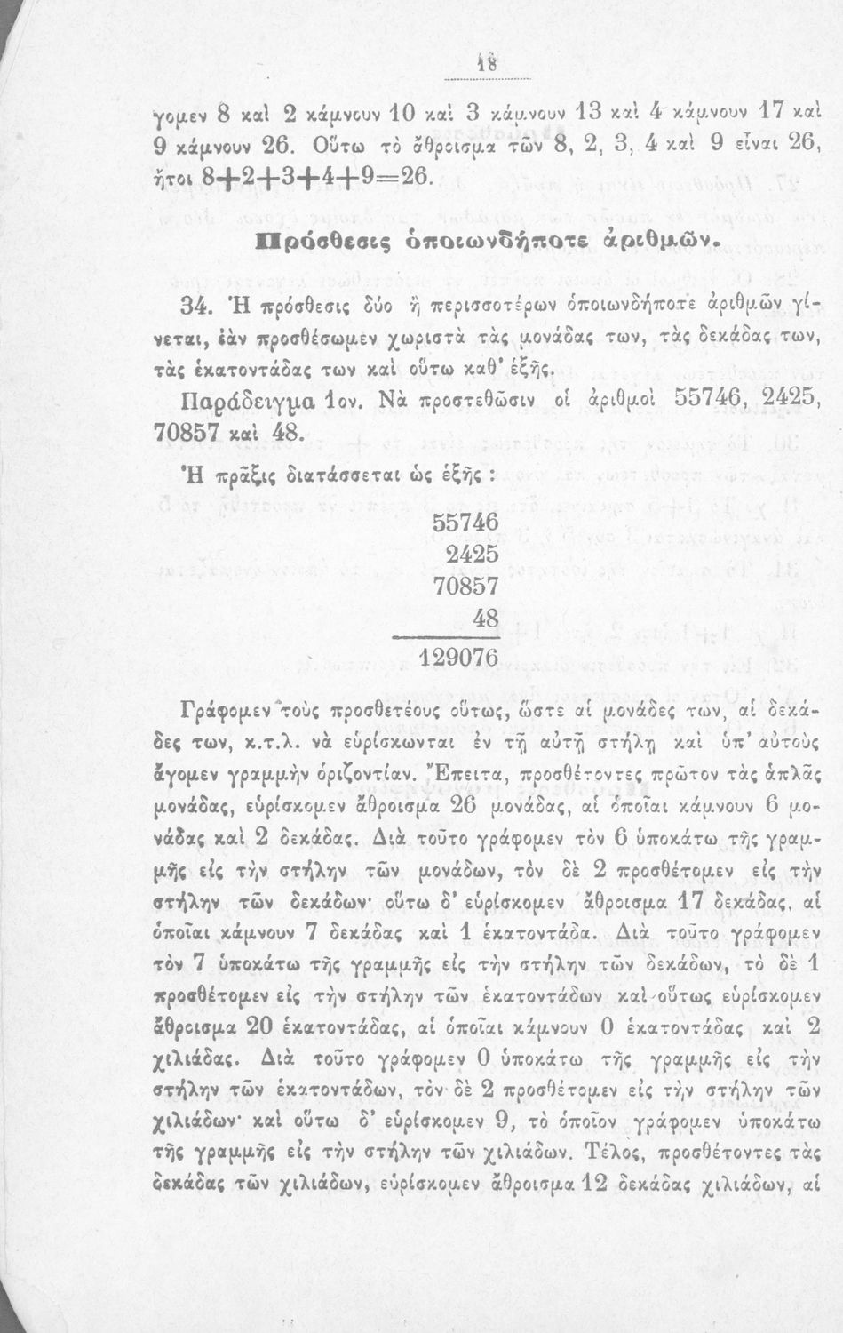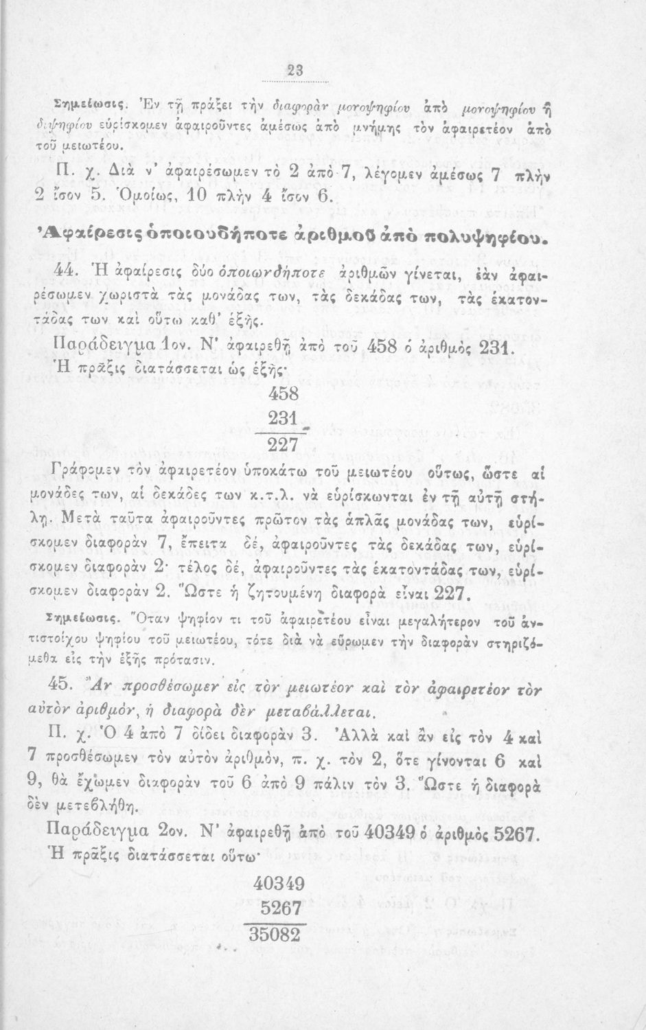 Σχολικό εγχειρίδιο Αριθμητικής για τα Ελληνικά σχολεία και Παρθεναγωγεία που περιέχει θεωρία και ασκήσεις.