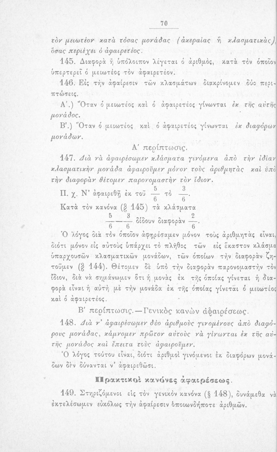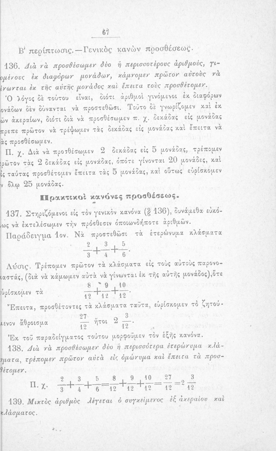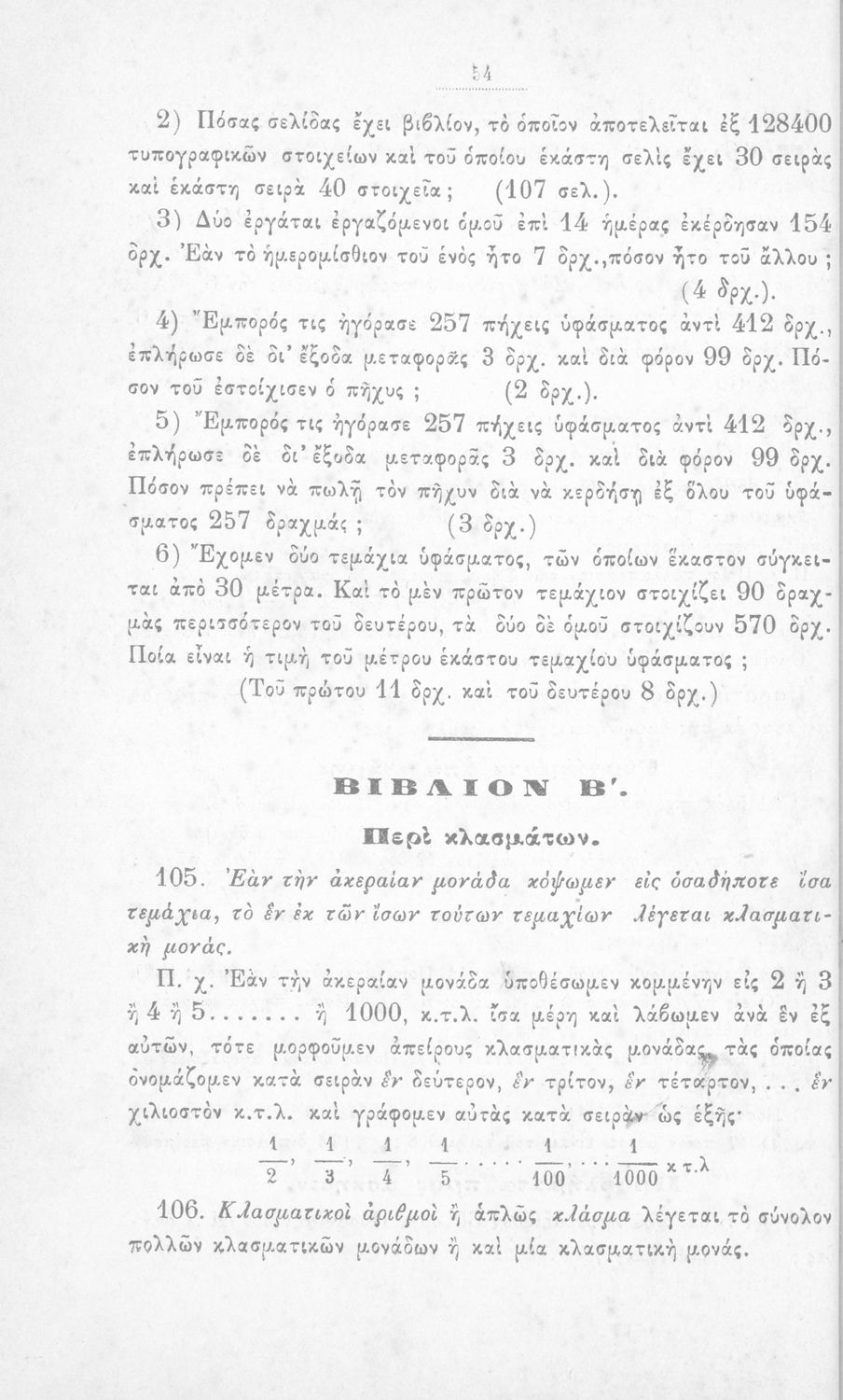 Σχολικό εγχειρίδιο Αριθμητικής για τα Ελληνικά σχολεία και Παρθεναγωγεία που περιέχει θεωρία και ασκήσεις.