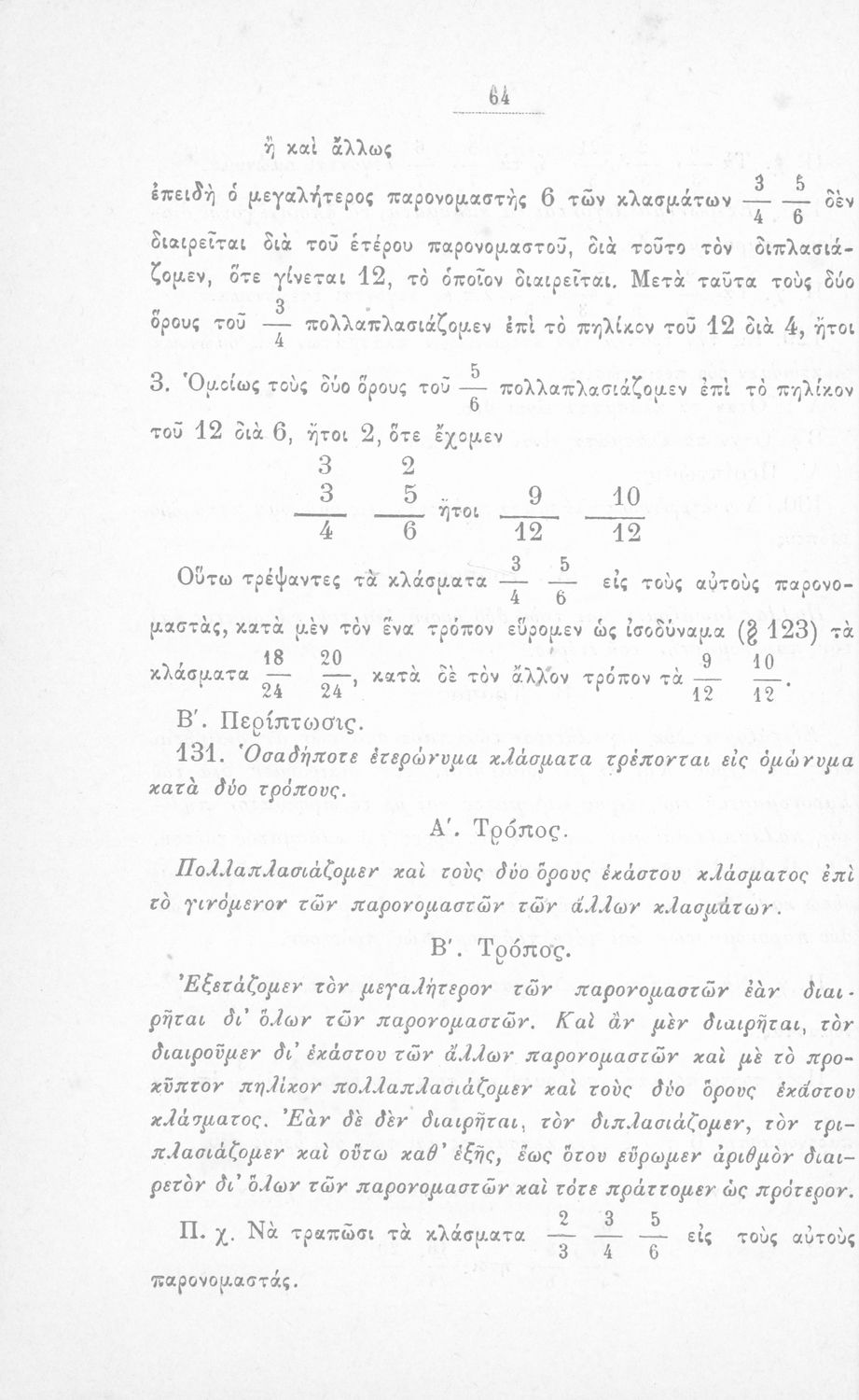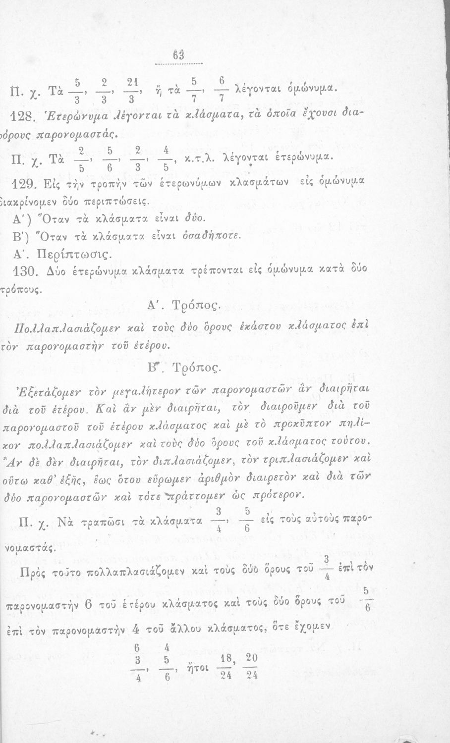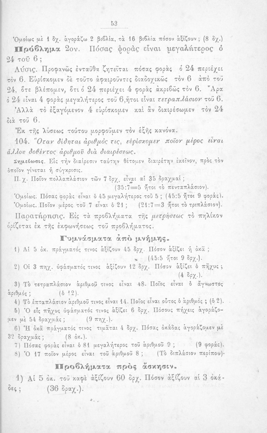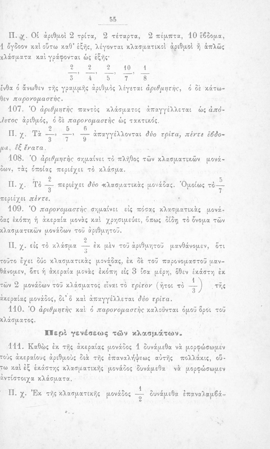 Σχολικό εγχειρίδιο Αριθμητικής για τα Ελληνικά σχολεία και Παρθεναγωγεία που περιέχει θεωρία και ασκήσεις.