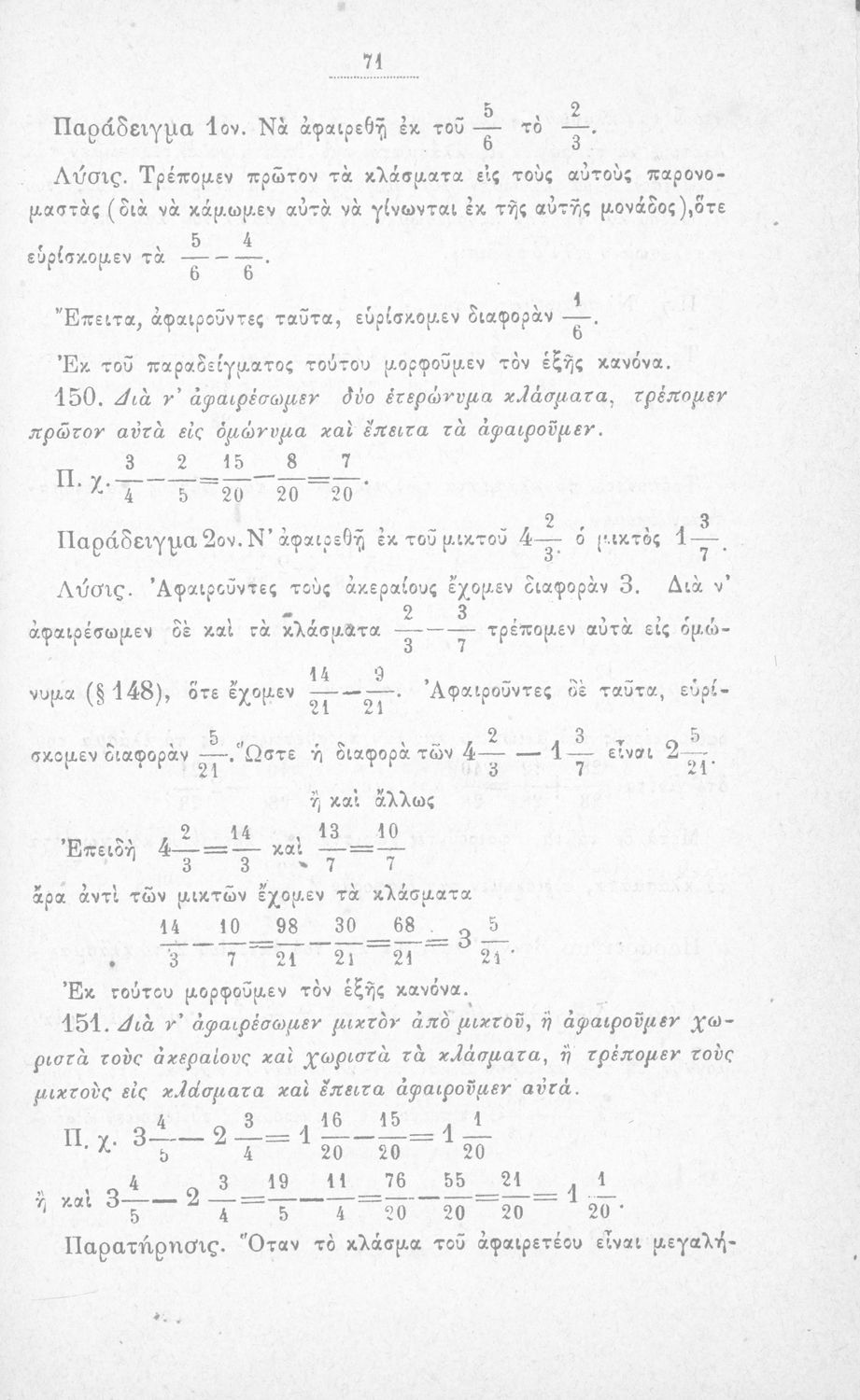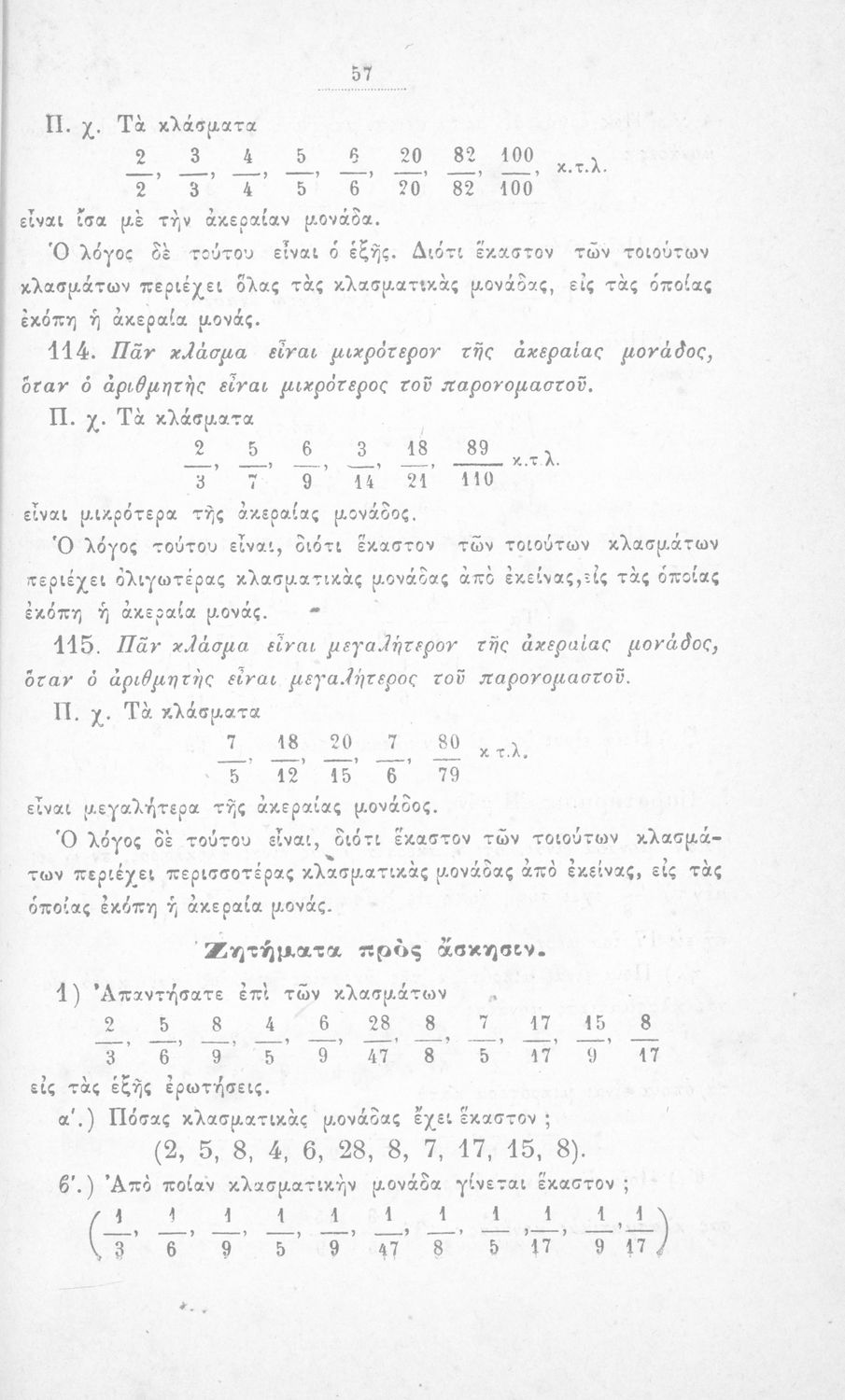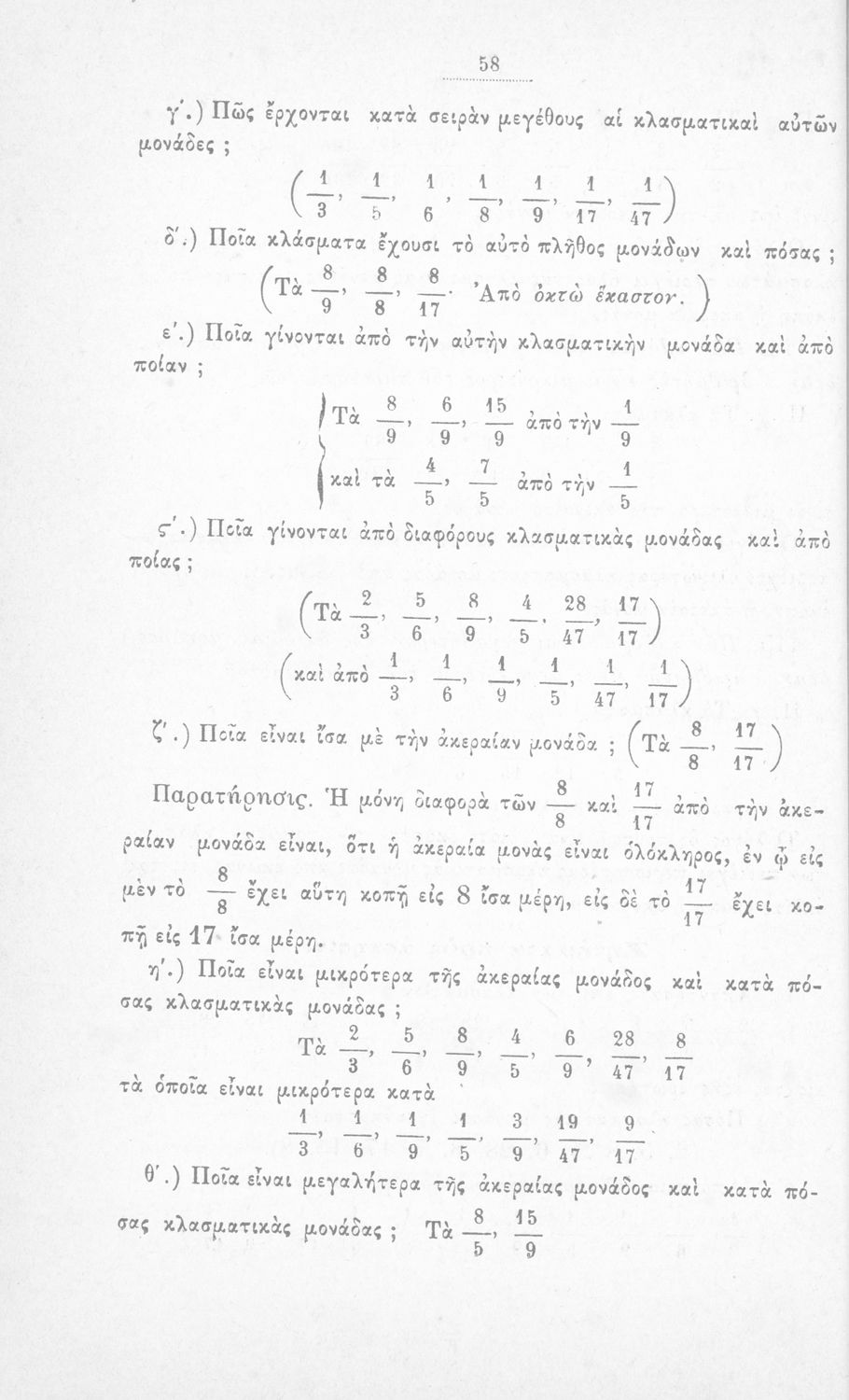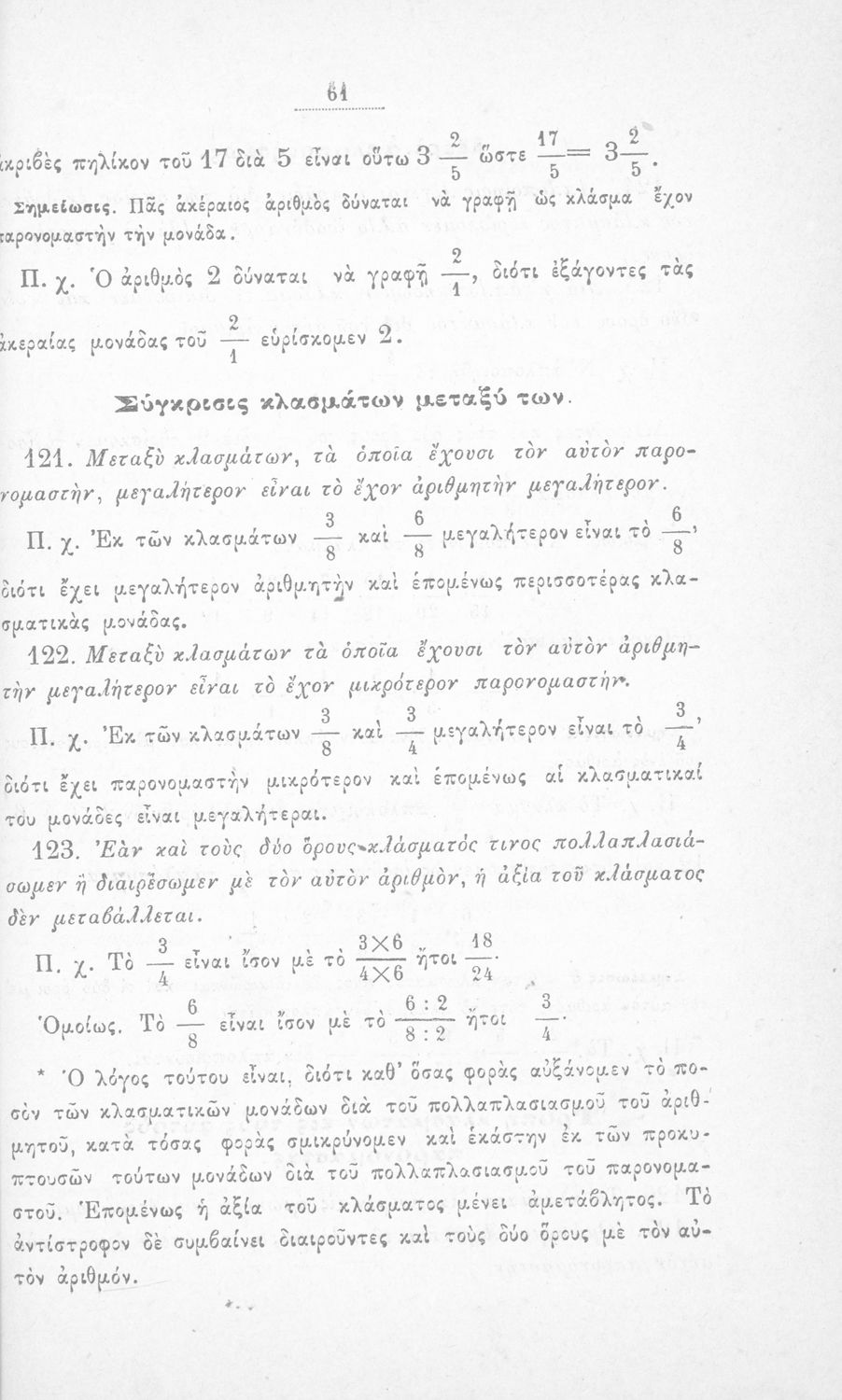 Σχολικό εγχειρίδιο Αριθμητικής για τα Ελληνικά και Αστικά Σχολεία και τα Παρθεναγωγεία που εστιάζει στις αριθμητικές πράξεις, τα κλάσματα, τους δεκαδικούς και συμμιγείς αριθμούς, και τις δυνάμεις. Περιέχει και