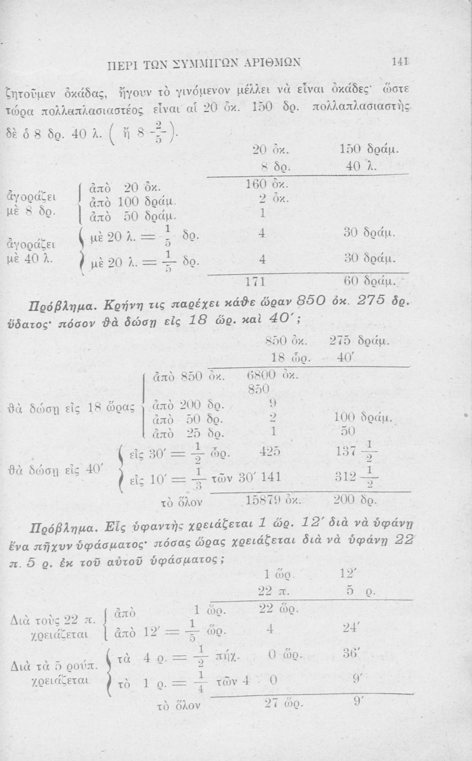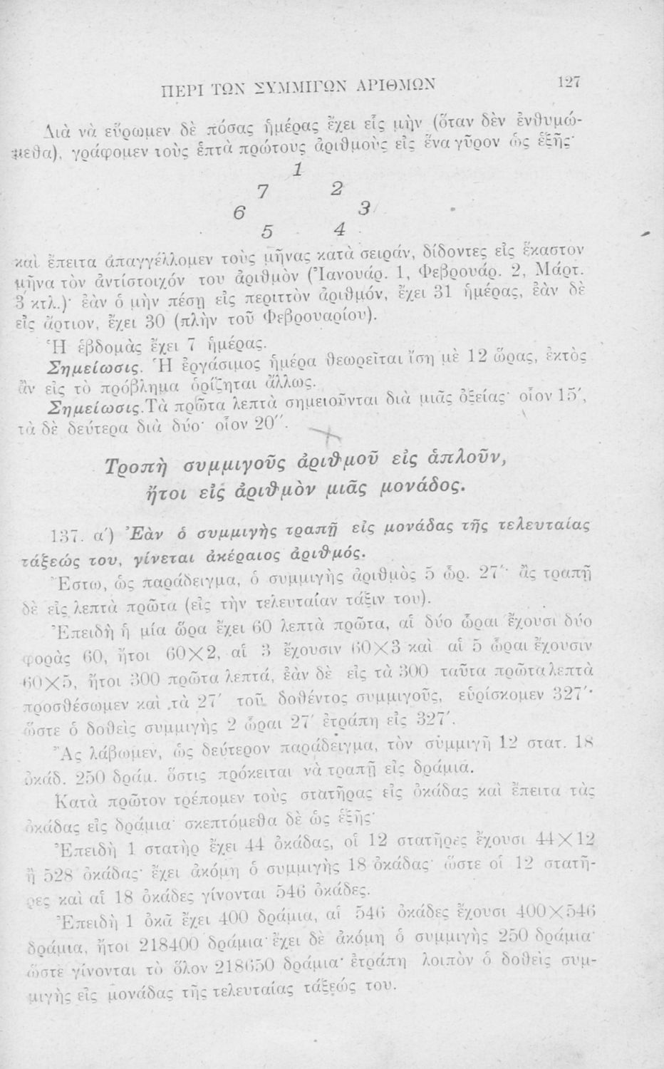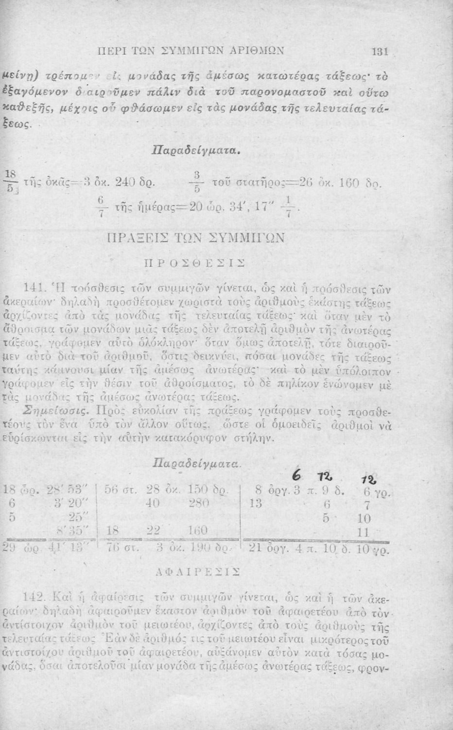 Σχολικό εγχειρίδιο Αριθμητικής για τα Ελληνικά σχολεία και Παρθεναγωγεία που περιέχει θεωρία και ασκήσεις.
