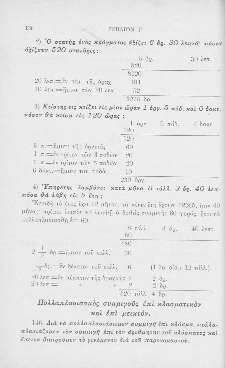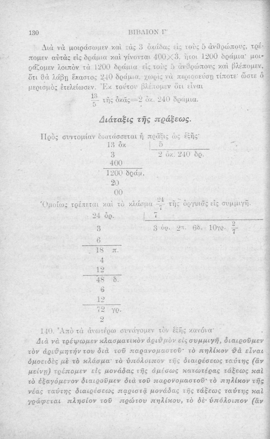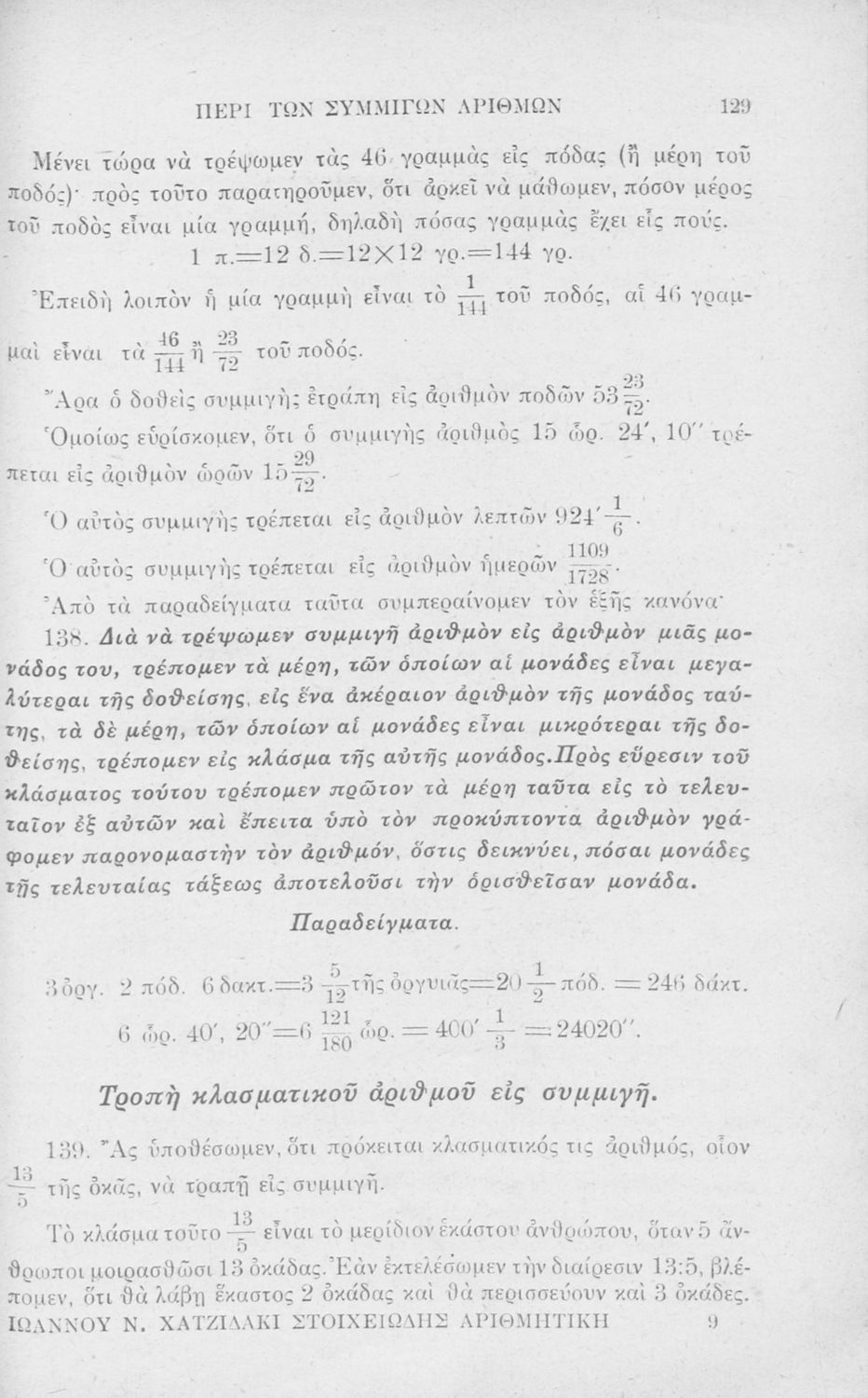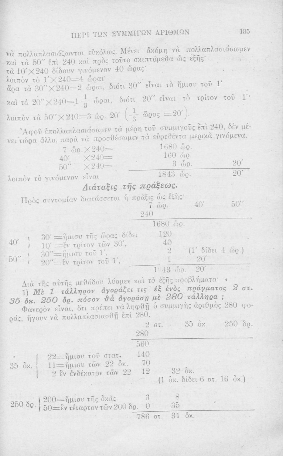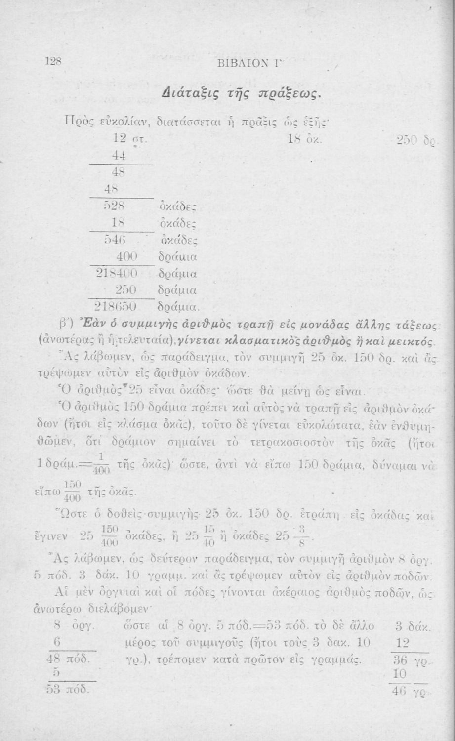 Σχολικό εγχειρίδιο Αριθμητικής για τα Ελληνικά Σχολεία που εστιάζει στις αριθμητικές πράξεις με ακέραιους αριθμούς και κλάσματα και περιλαμβάνει στοιχεία λογιστικής και καταστιχογραφίας.