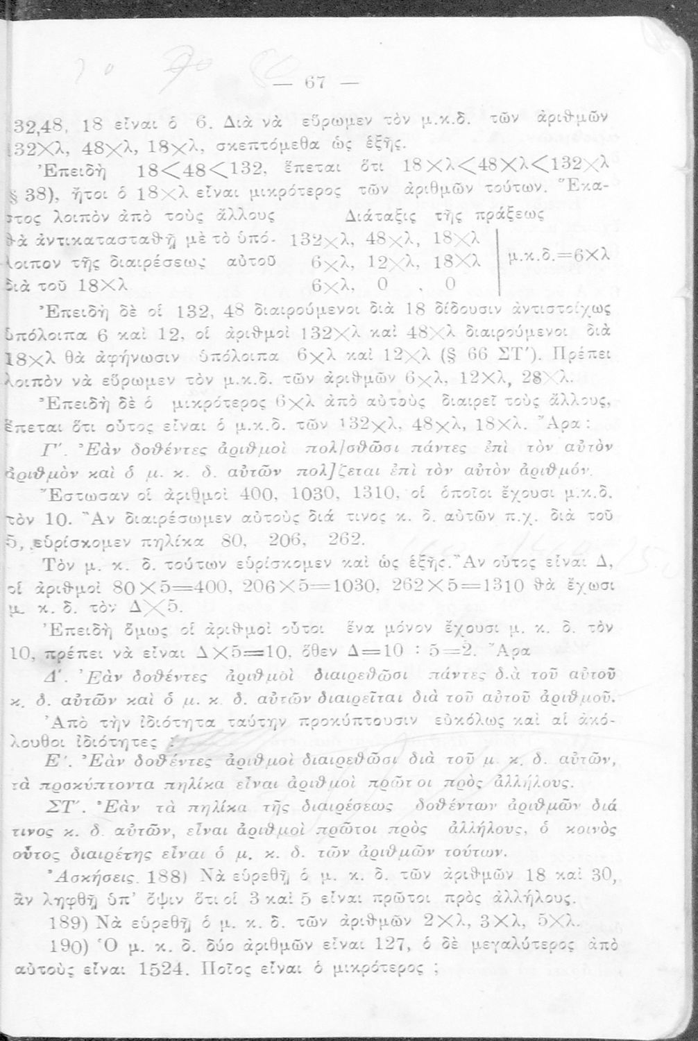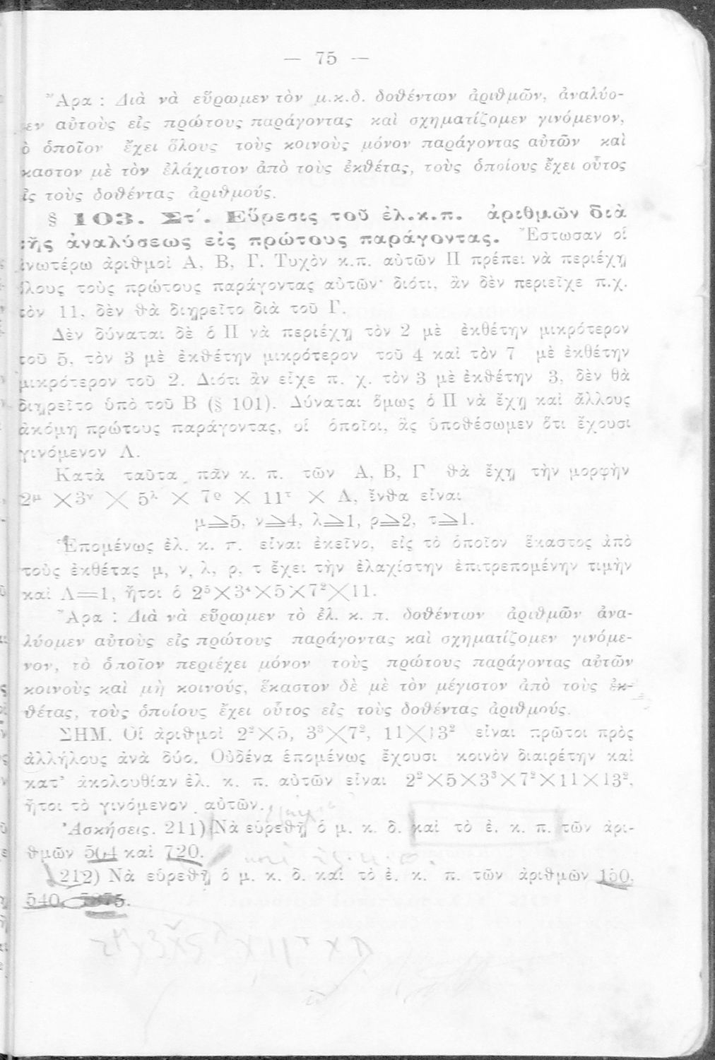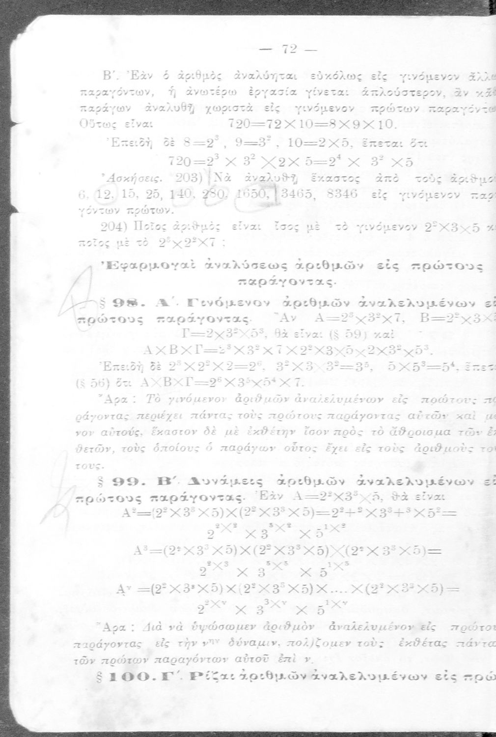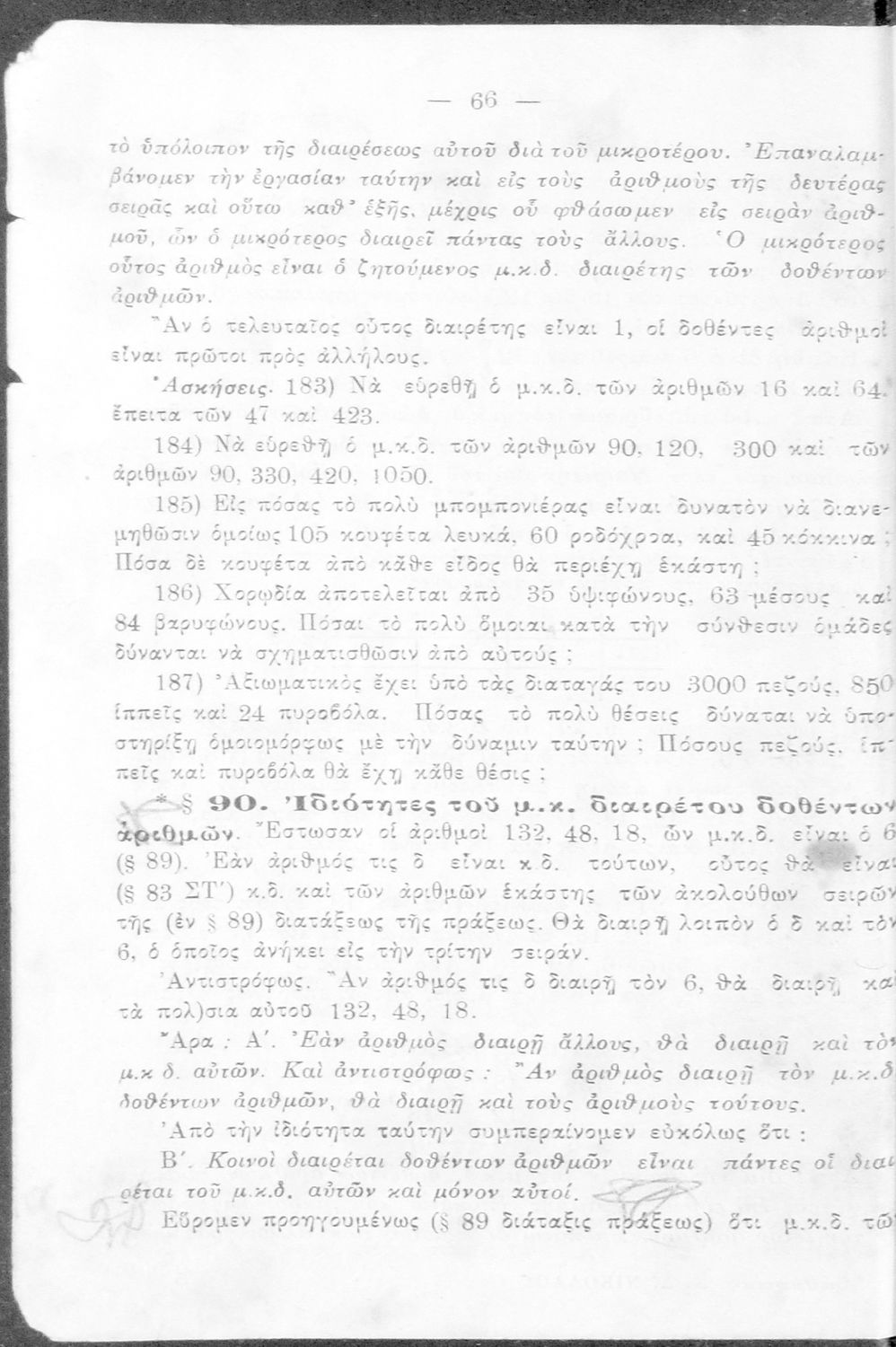 Σχολικό εγχειρίδιο Αριθμητικής για τις Α΄, Β΄, Γ΄ Γυμνασίου και τα Ανώτερα Παρθεναγωγεία που είναι χωρισμένο σε θεωρία και ασκήσεις και εστιάζει στις αριθμητικές πράξεις με κλάσματα και ακέραιους και συμμιγείς