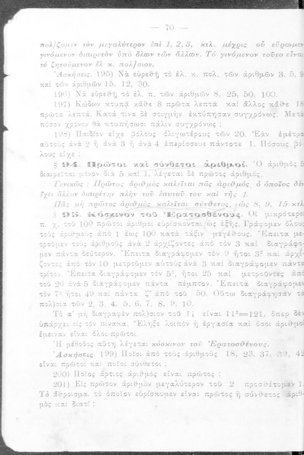 Αριθμητική συντεταγμένη κατά το τελευταίον πρόγραμμα προς χρήσιν των μαθητών της Α΄, Β΄, Γ΄ τάξεως των Γυμνασίων και Ημιγυμνασίων