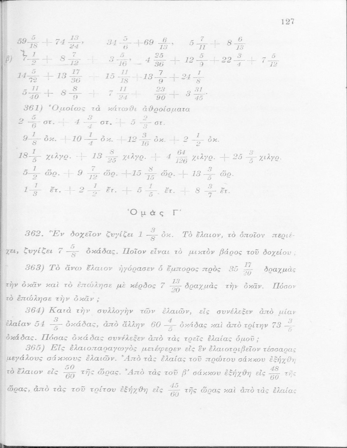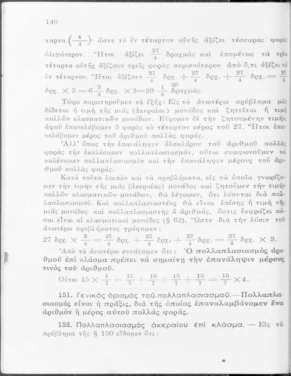 Σχολικό εγχειρίδιο Αριθμητικής για τα Γυμνάσια και Αστικά Σχολεία που είναι χωρισμένο σε θεωρία και ασκήσεις με έντονο επιχειρηματικό προσανατολισμό. Περιλαμβάνει στοιχεία Θεωρητικής Αριθμητικής.