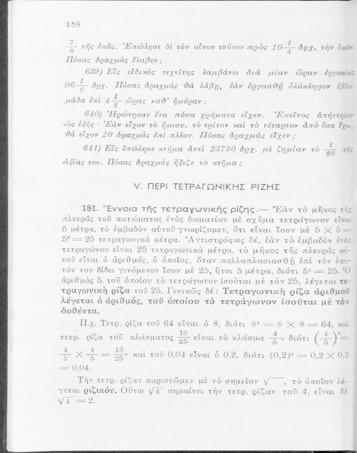 Σχολικό εγχειρίδιο Αριθμητικής για τα Γυμνάσια και τα Αστικά σχολεία που είναι χωρισμένο σε θεωρία και ασκήσεις με έντονο επιχειρηματικό προσανατολισμό. Περιλαμβάνει στοιχεία Θεωρητικής Αριθμητικής.