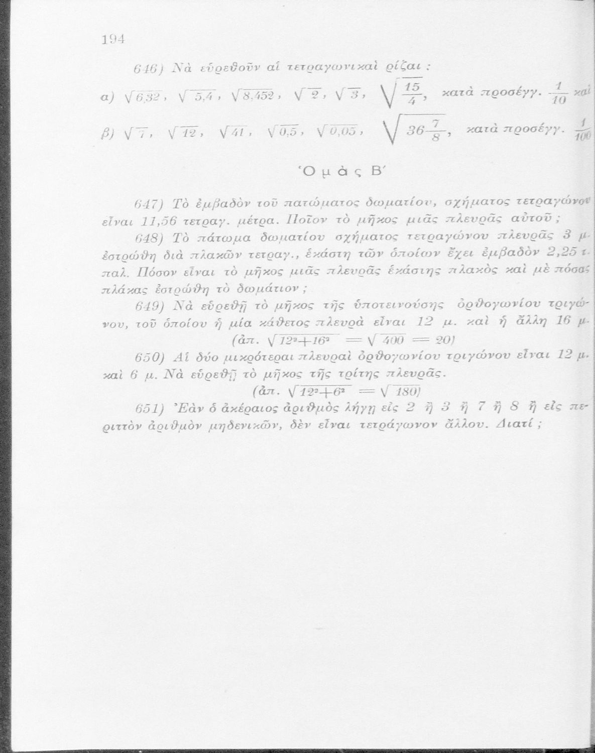 Σχολικό εγχειρίδιο Γεωμετρίας για τα Γυμνάσια και τα Αστικά Σχολεία που είναι χωρισμένο σε Επιπεδομετρία και Στερεομετρία και περιλαμβάνει θεωρία και ασκήσεις.