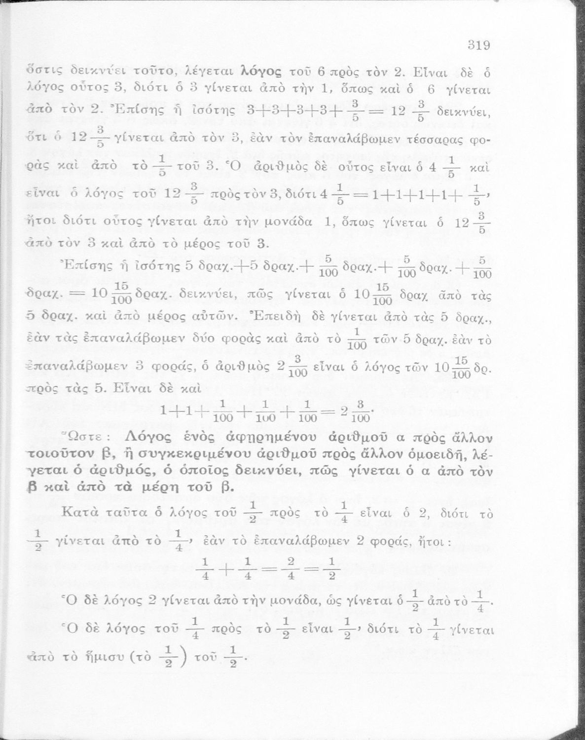 Σχολικό εγχειρίδιο Αριθμητικής για τα Γυμνάσια και Αστικά Σχολεία που είναι χωρισμένο σε θεωρία και ασκήσεις με έντονο επιχειρηματικό προσανατολισμό. Περιλαμβάνει στοιχεία Θεωρητικής Αριθμητικής.