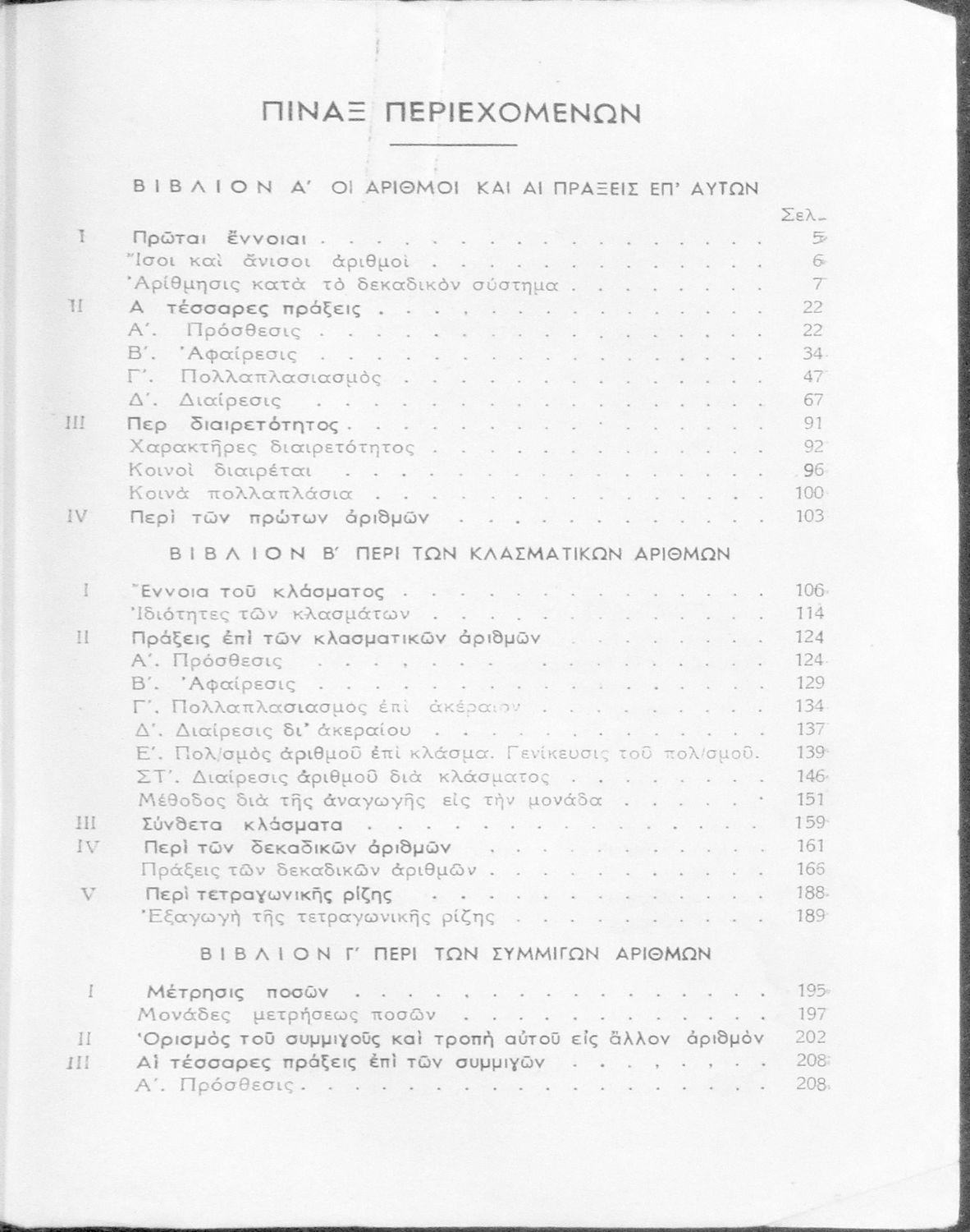 Σχολικό εγχειρίδιο Αριθμητικής για τα Γυμνάσια και τα Αστικά σχολεία που είναι χωρισμένο σε θεωρία και ασκήσεις με έντονο επιχειρηματικό προσανατολισμό. Περιλαμβάνει στοιχεία Θεωρητικής Αριθμητικής.