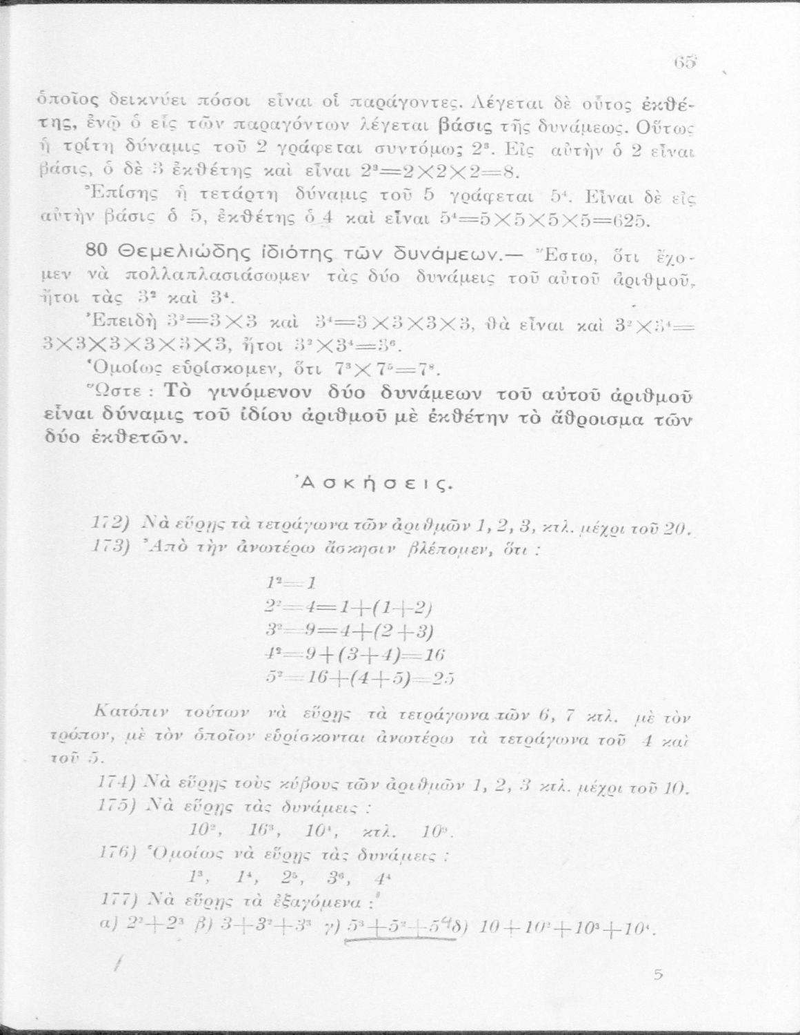 Παρουσίαση περιεχομένου: Σχολικό εγχειρίδιο Αριθμητικής για τα Γυμνάσια και τα Αστικά σχολεία που είναι χωρισμένο σε θεωρία και ασκήσεις με έντονο επιχειρηματικό προσανατολισμό. Περιλαμβάνει στοιχεία Θεωρητικής Αριθμητικής.