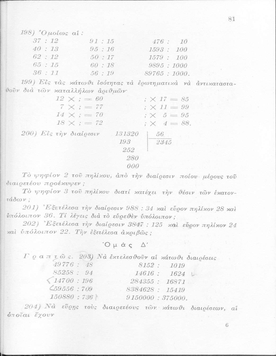 Βαθμίδα εκπαίδευσης: Δευτεροβάθμια Τάξη: Γυμνάσιο / Αστικό Σχολείο Μάθημα: Μαθηματικά Γλώσσα: Απλή καθαρεύουσα Παρουσίαση περιεχομένου: Σχολικό εγχειρίδιο Αριθμητικής για τα Γυμνάσια και τα Αστικά σχολεία που είναι χωρισμένο σε θεωρία και ασκήσεις με έντονο επιχειρηματικό προσανατολισμό. Περιλαμβάνει στοιχεία Θεωρητικής Αριθμητικής. |