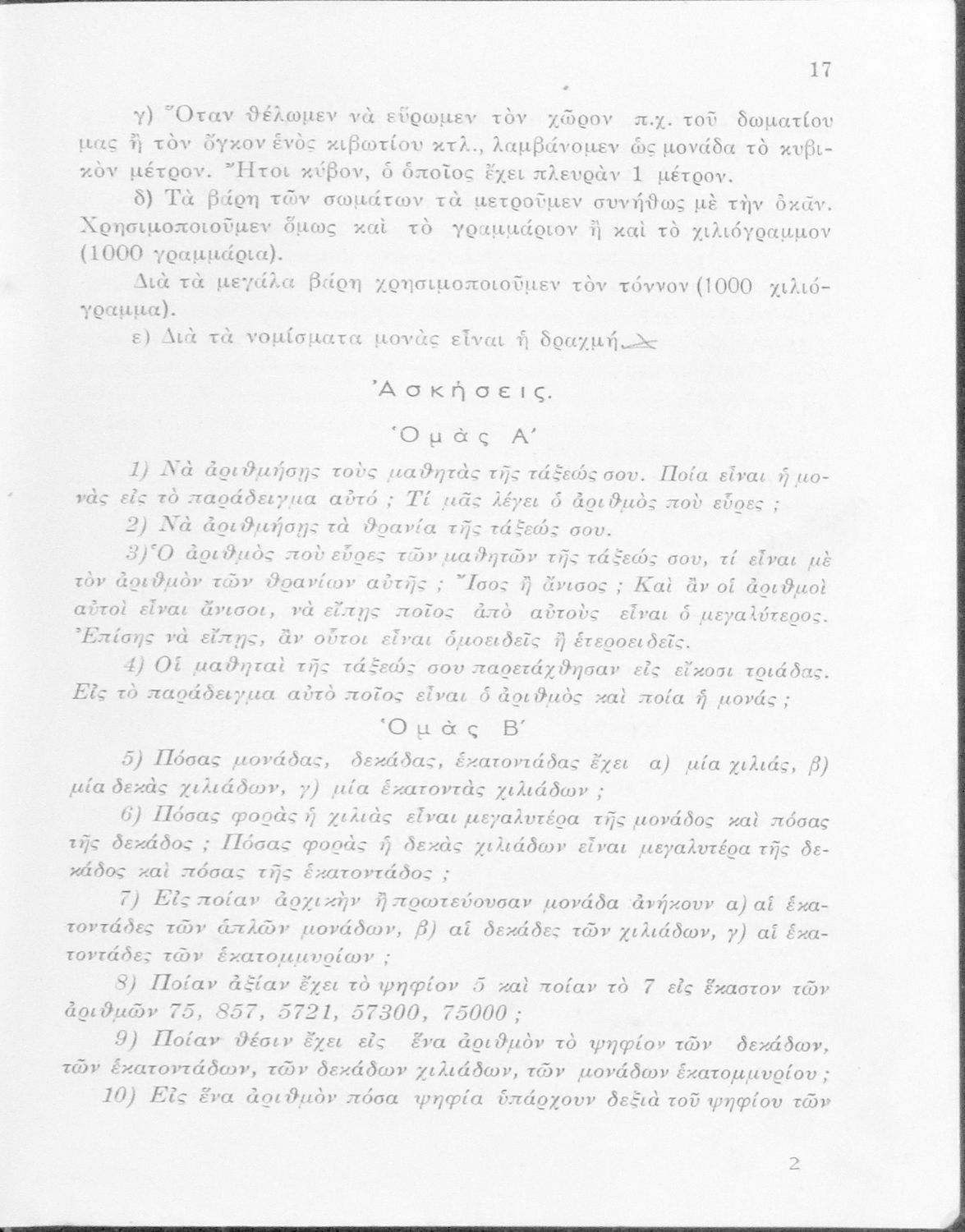 Τάξη:  Οκτατάξιο Γυμνάσιο / Πεντατάξιο Προγυμνάσιο / Αστικό Σχολείο