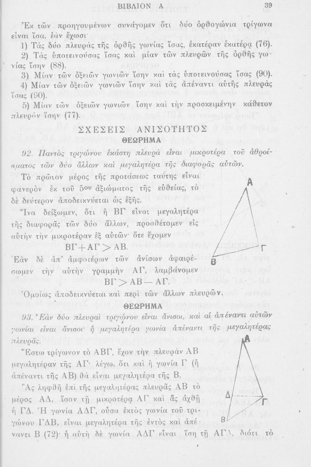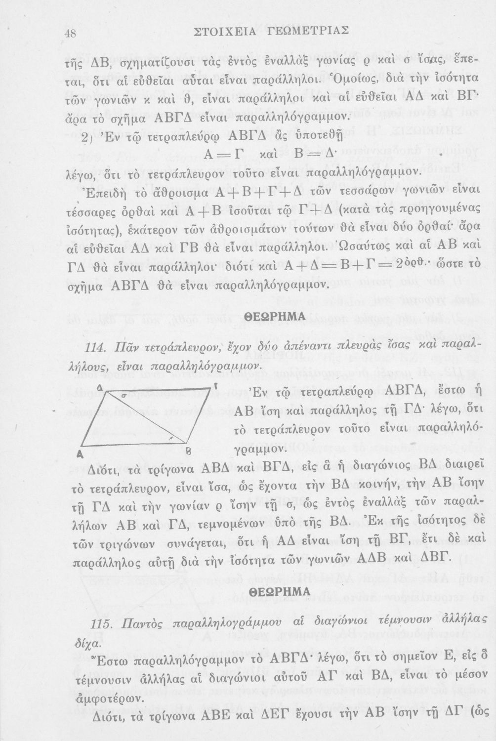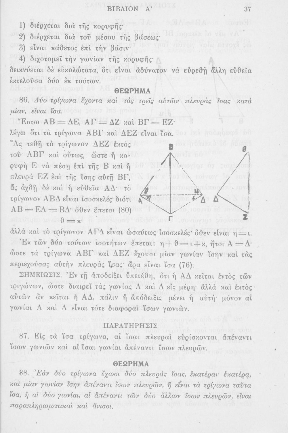 Σχολικό εγχειρίδιο Γεωμετρίας Γυμνασίου χωρισμένο σε ορισμούς, θεωρήματα, πορίσματα και ασκήσεις που εστιάζει στην Επιπεδομετρία και τη Στερεομετρία. Διαθέτει και παράρτημα εφαρμογής της Άλγεβρας στη Γεωμετρία.