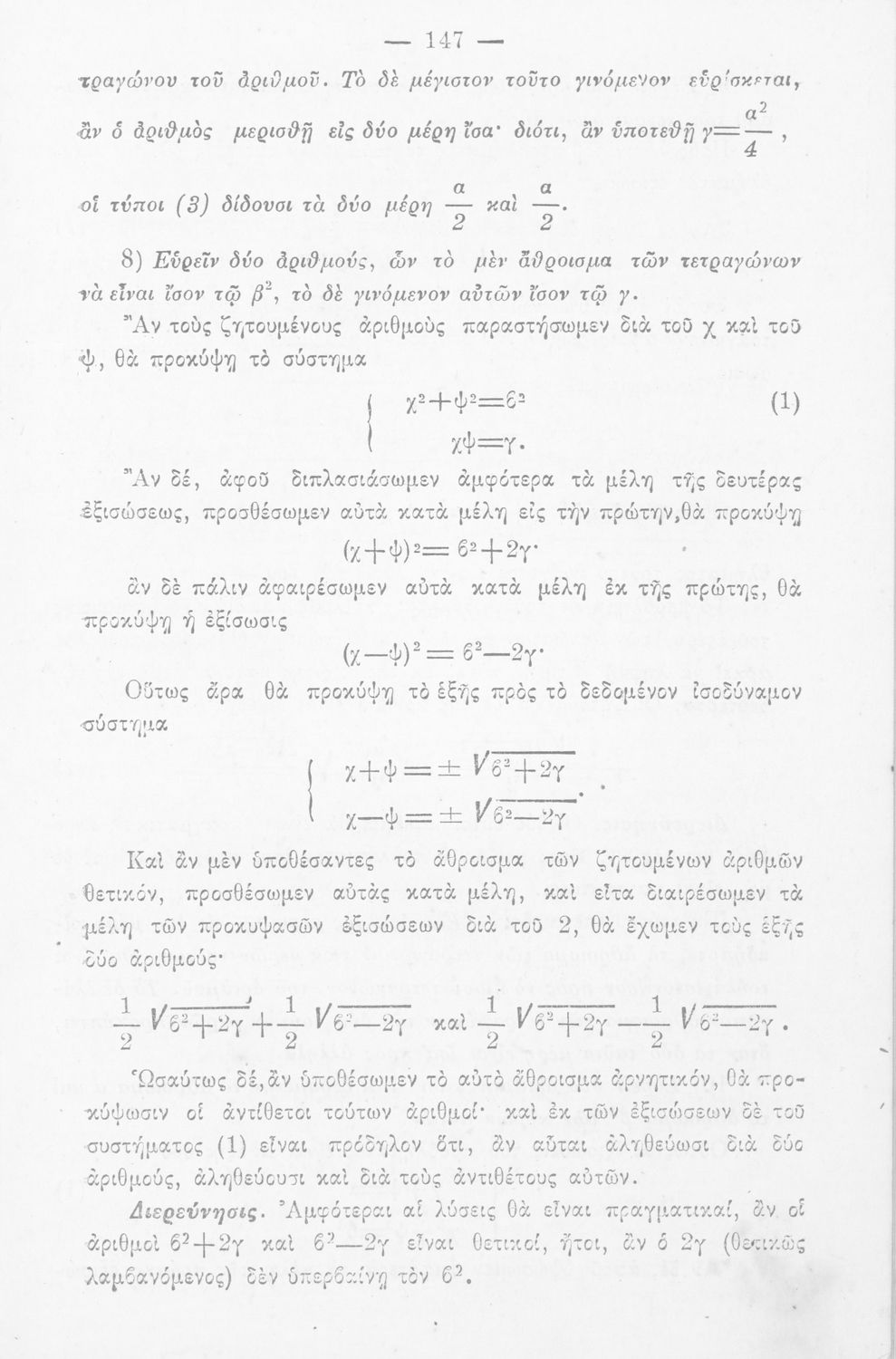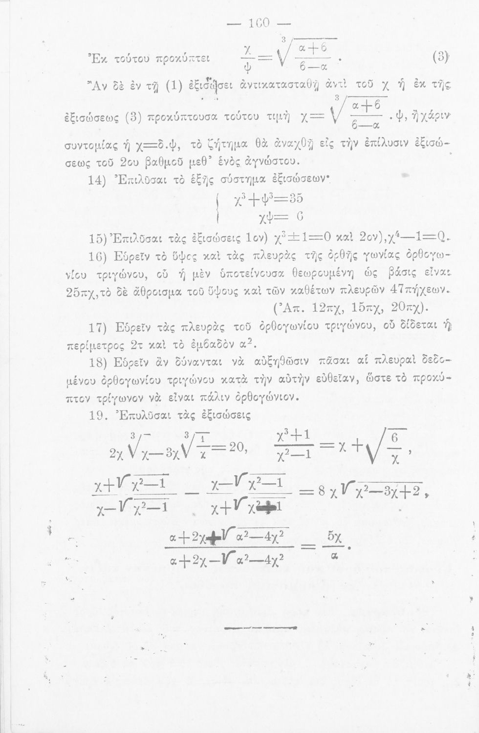Σχολικό εγχειρίδιο Άλγεβρας Γυμνασίου που περιέχει θεωρία και ασκήσεις. Ο συγγραφέας ήταν υφηγητής στο Εθνικό Πανεπιστήμιο.