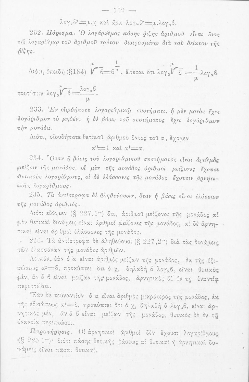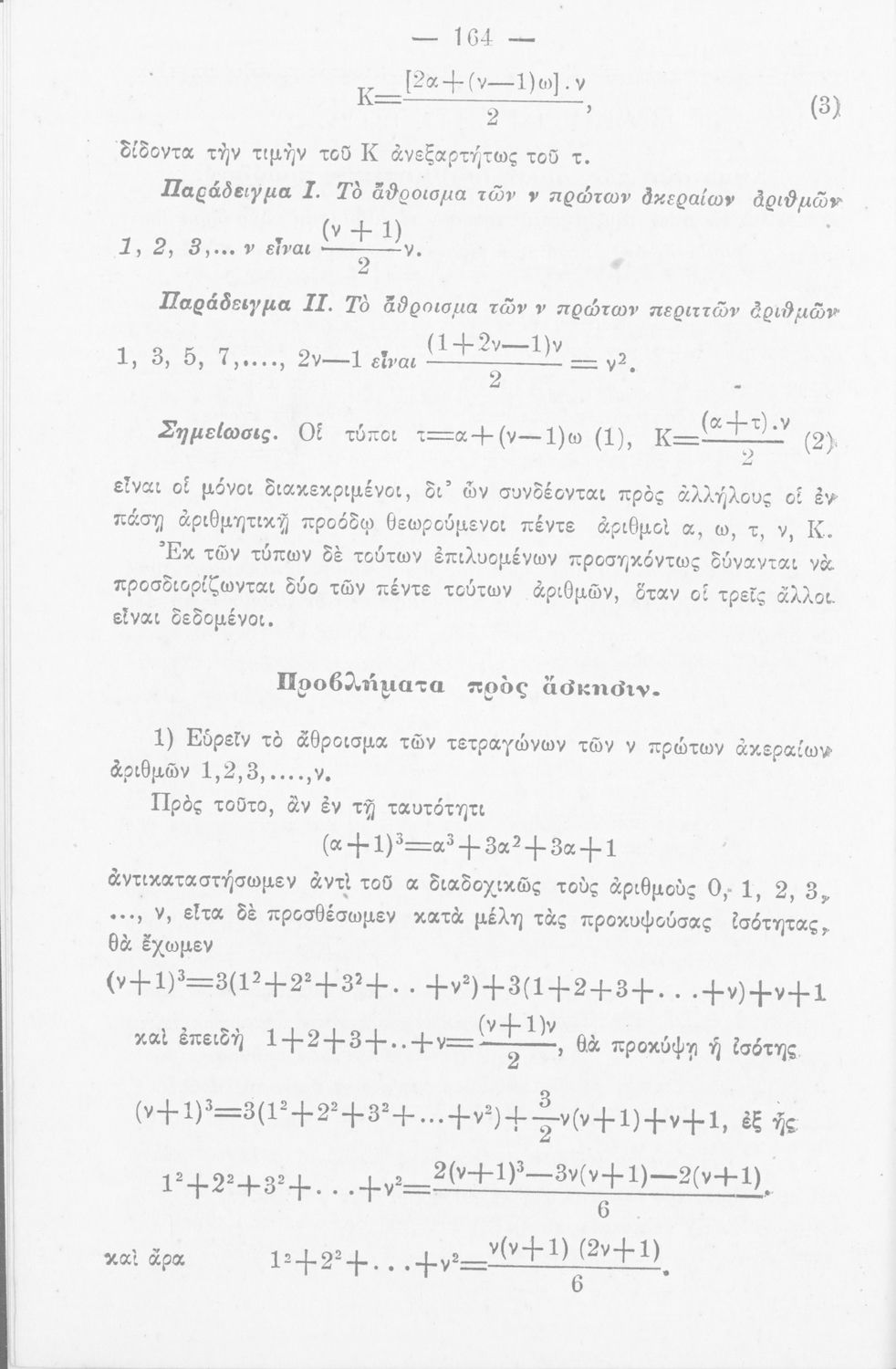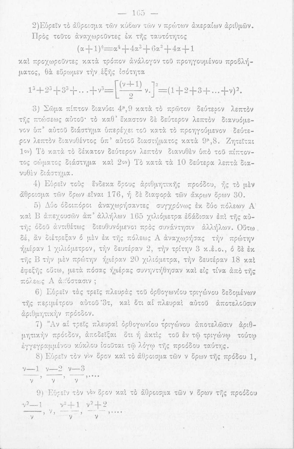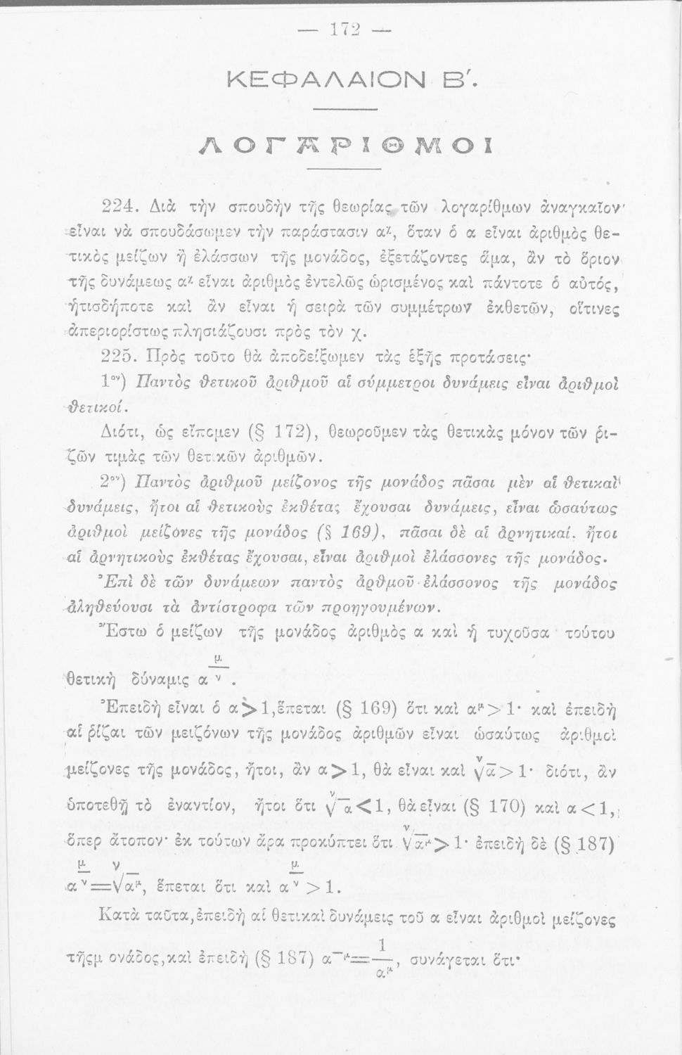 Σχολικό εγχειρίδιο Άλγεβρας Γυμνασίου που περιέχει θεωρία και ασκήσεις. Ο συγγραφέας ήταν υφηγητής στο Εθνικό Πανεπιστήμιο.