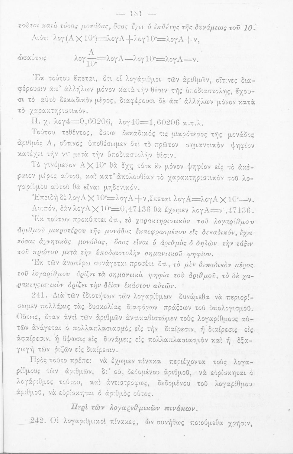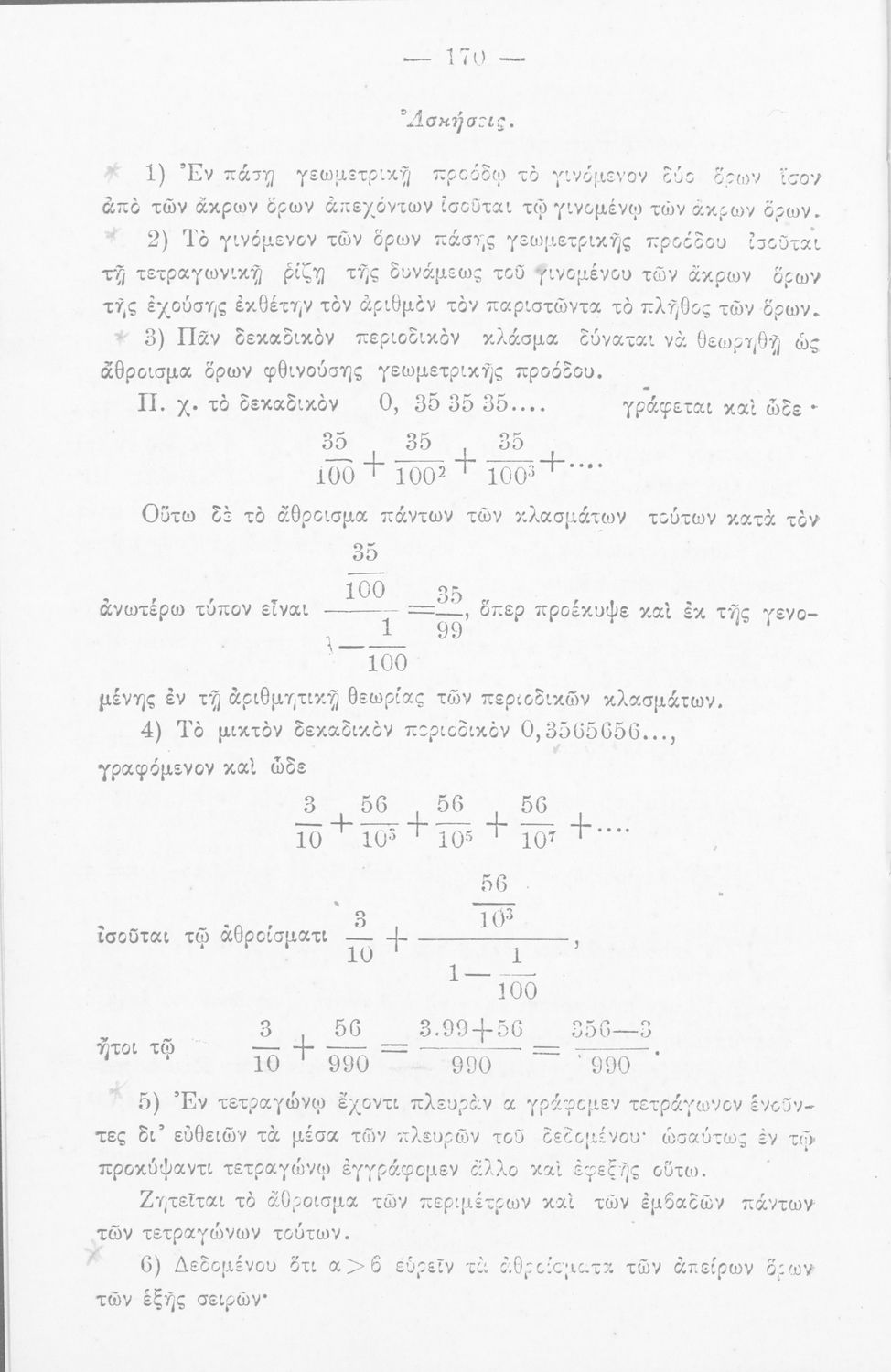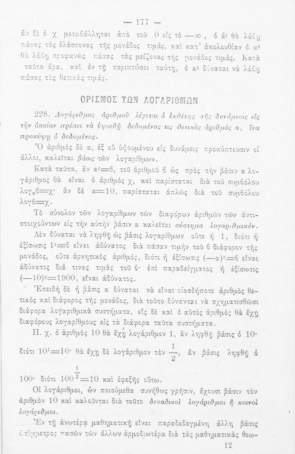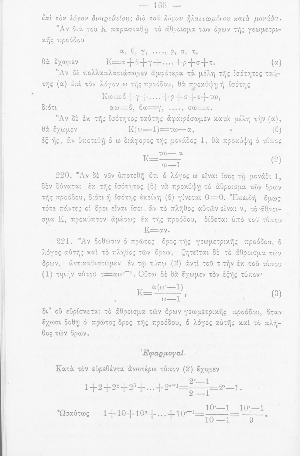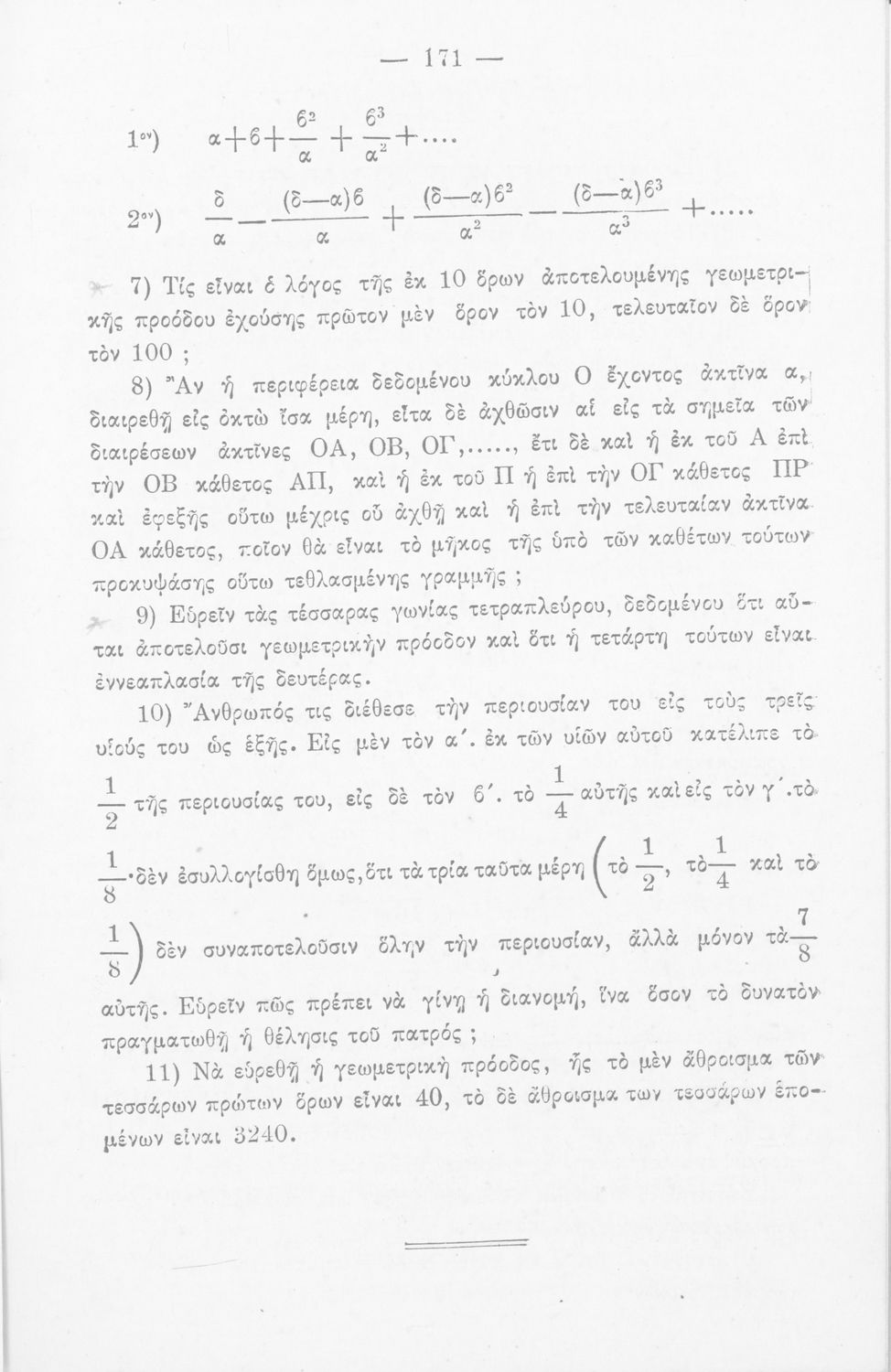 Σχολικό εγχειρίδιο Άλγεβρας Γυμνασίου που περιέχει θεωρία και ασκήσεις. Ο συγγραφέας ήταν υφηγητής στο Εθνικό Πανεπιστήμιο.