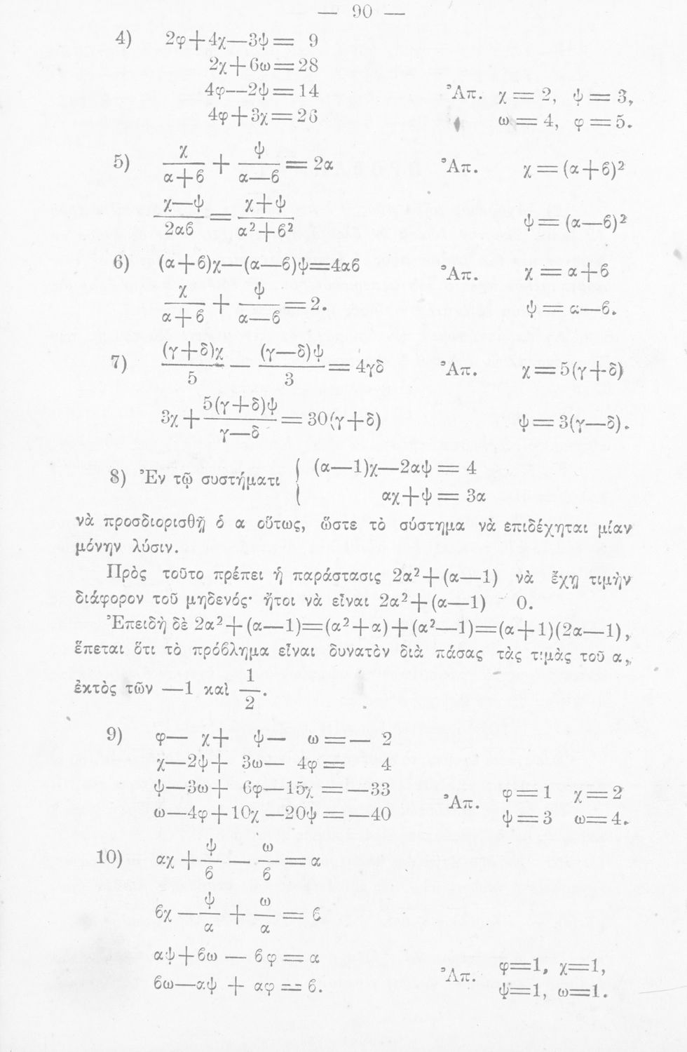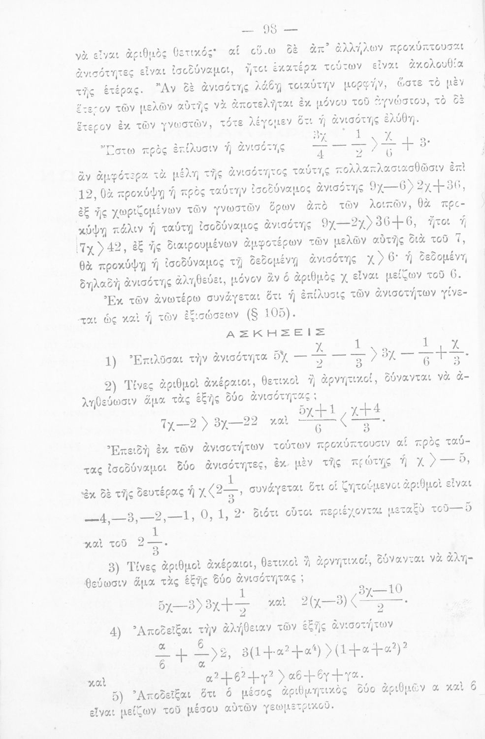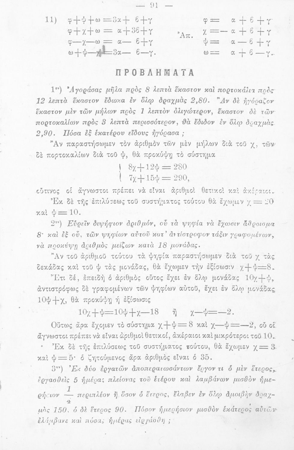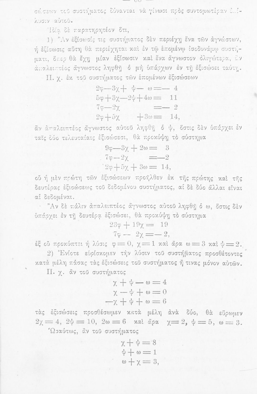 Σχολικό εγχειρίδιο Άλγεβρας Γυμνασίου που περιέχει θεωρία και ασκήσεις. Ο συγγραφέας ήταν υφηγητής στο Εθνικό Πανεπιστήμιο.