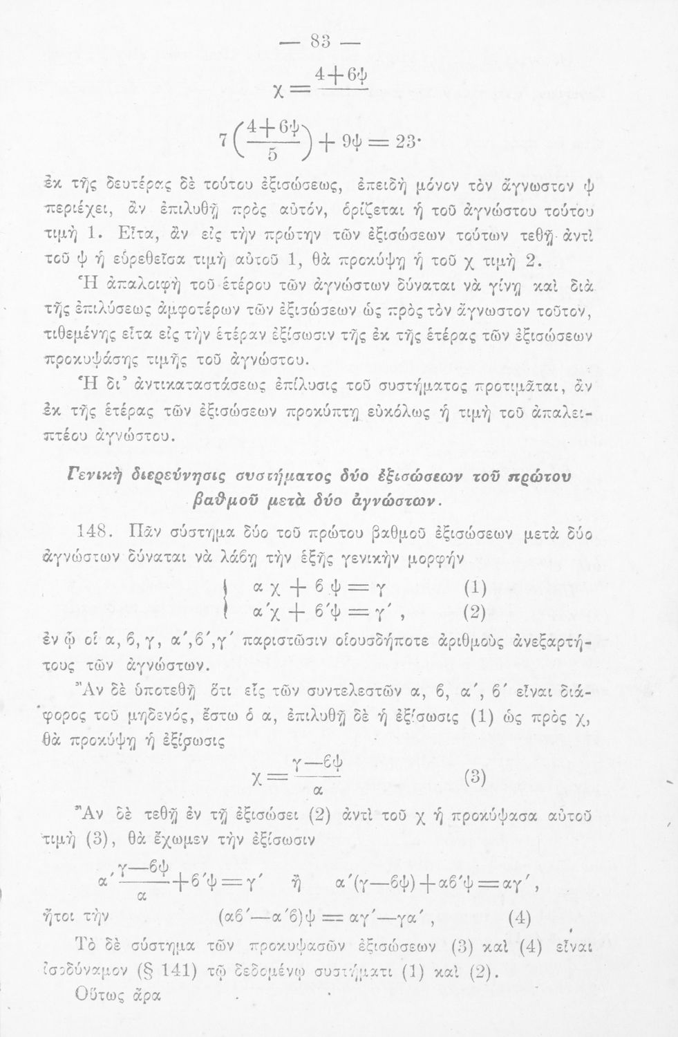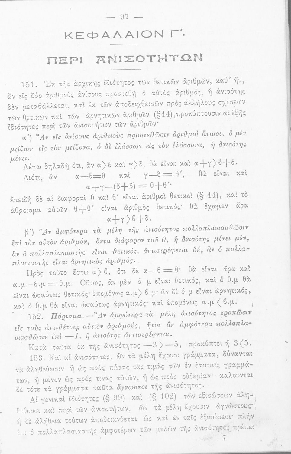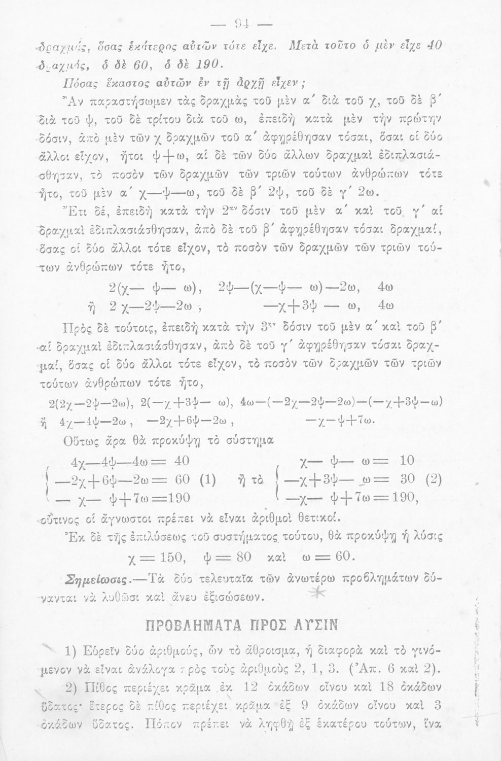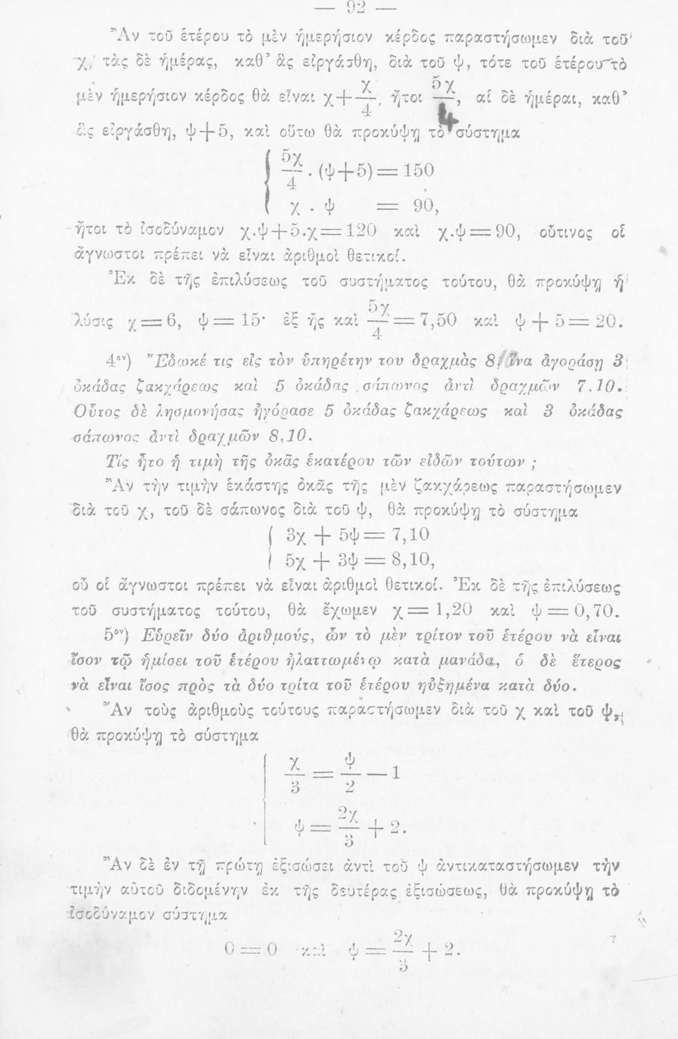 Σχολικό εγχειρίδιο Άλγεβρας Γυμνασίου που περιέχει θεωρία και ασκήσεις. Ο συγγραφέας ήταν υφηγητής στο Εθνικό Πανεπιστήμιο.