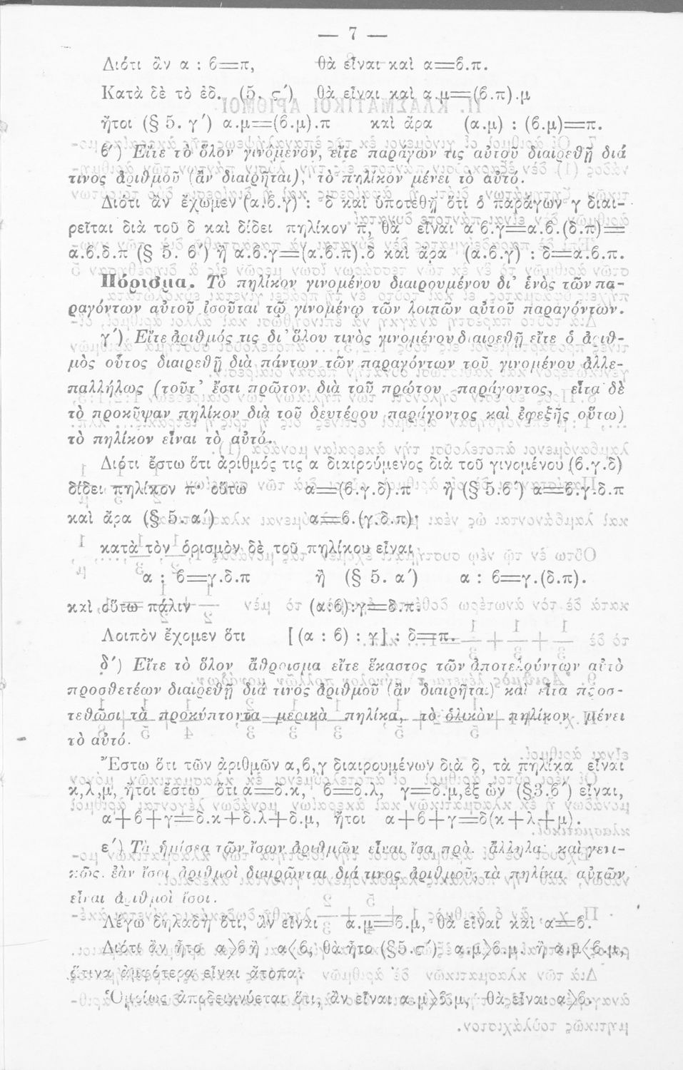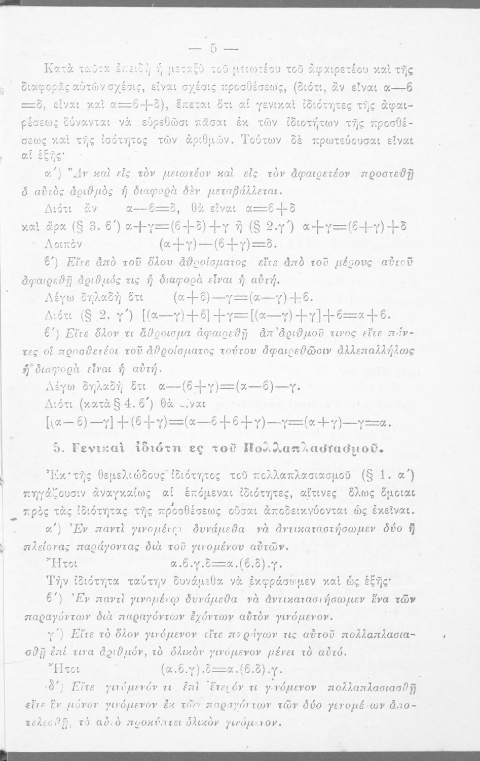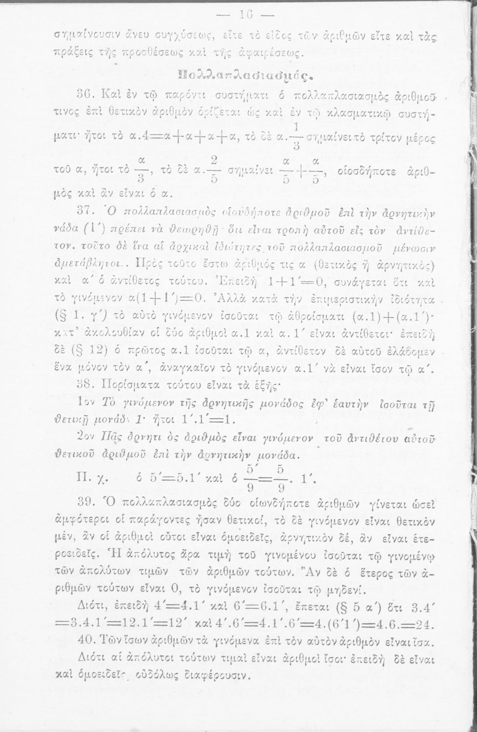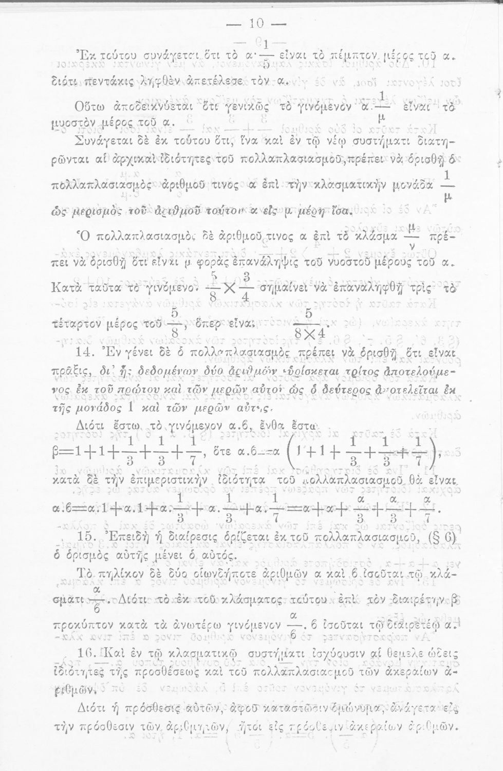 Σχολικό εγχειρίδιο Άλγεβρας Γυμνασίου που περιέχει θεωρία και ασκήσεις. Ο συγγραφέας ήταν υφηγητής στο Εθνικό Πανεπιστήμιο.
