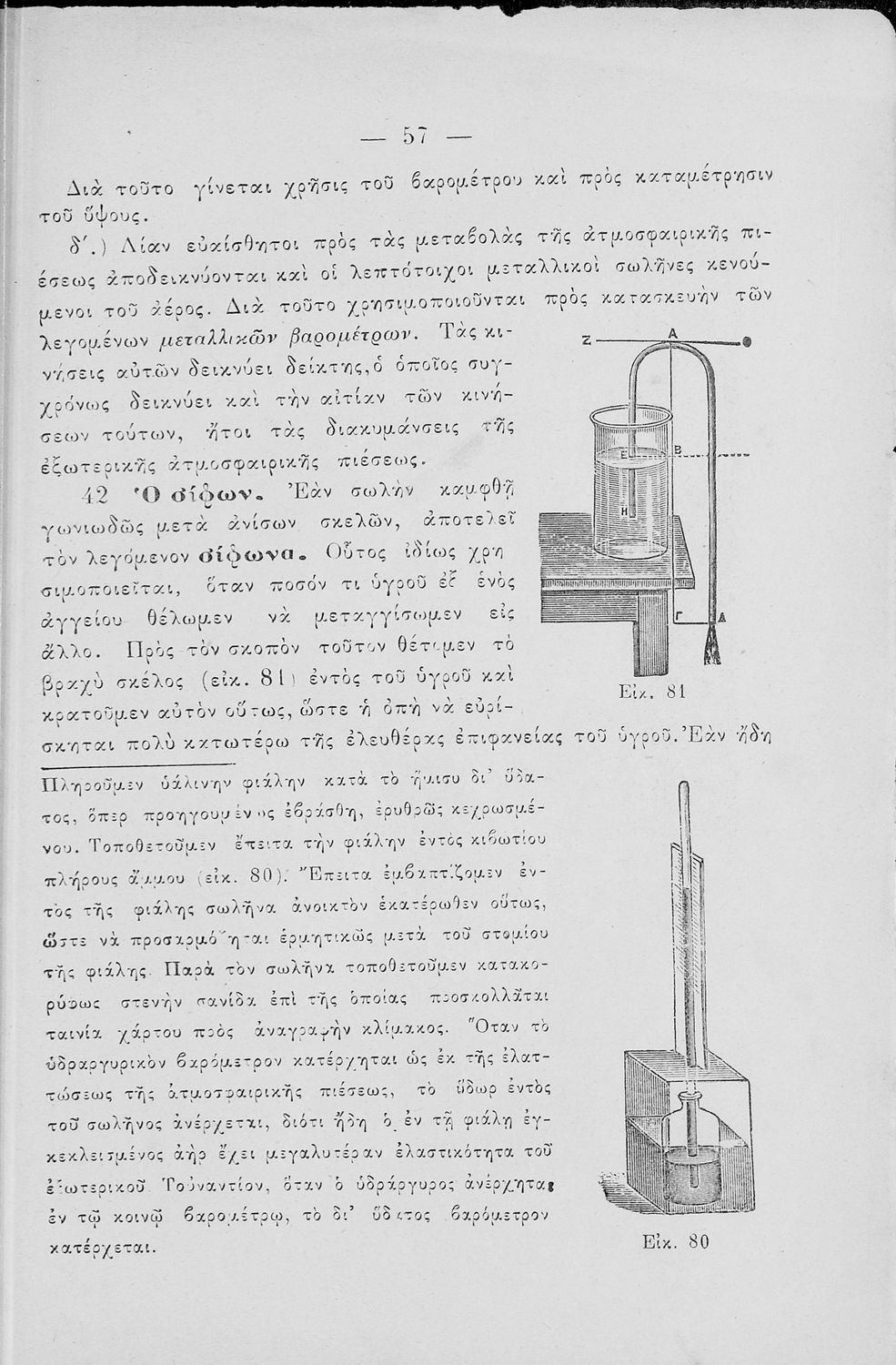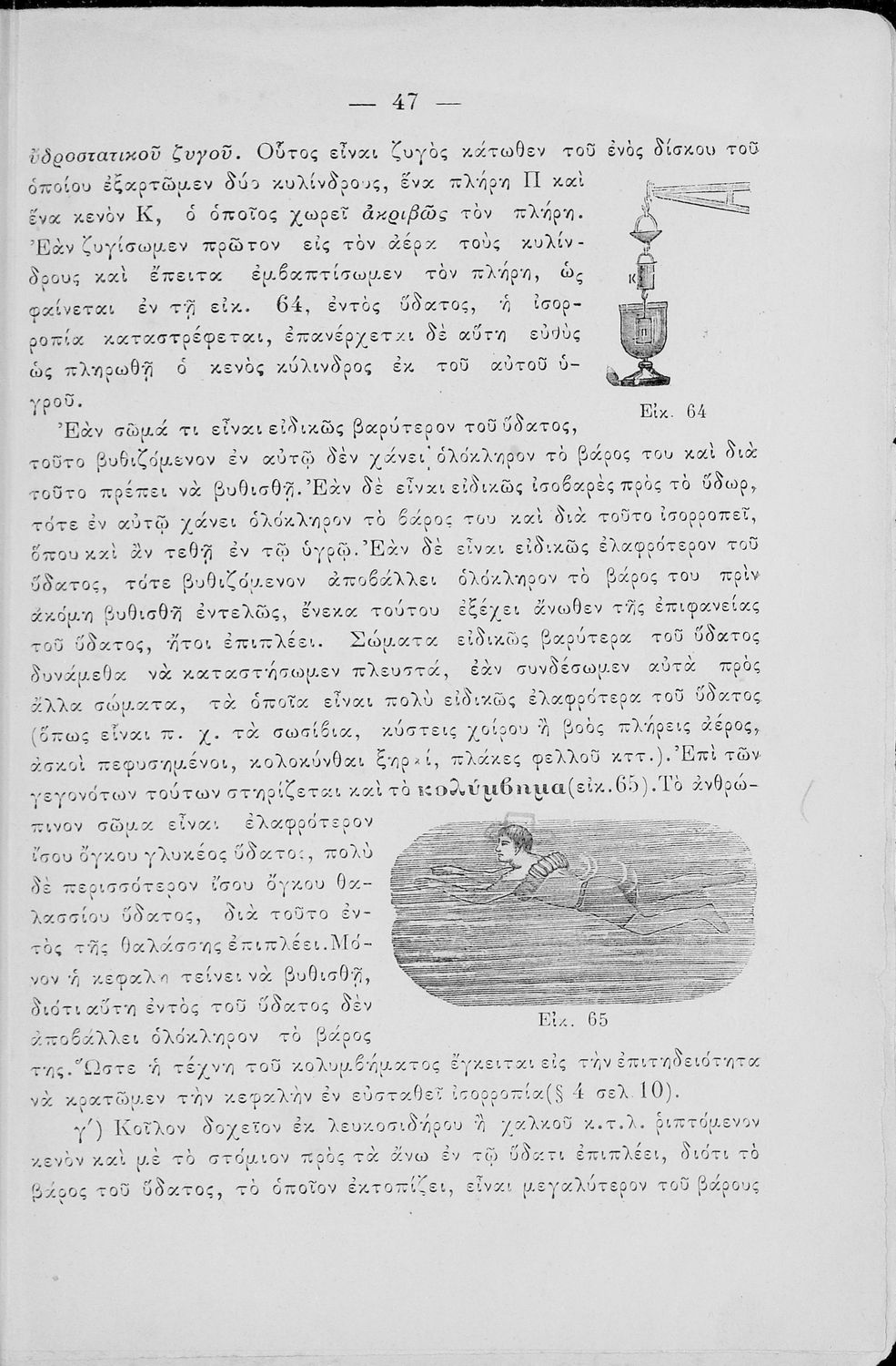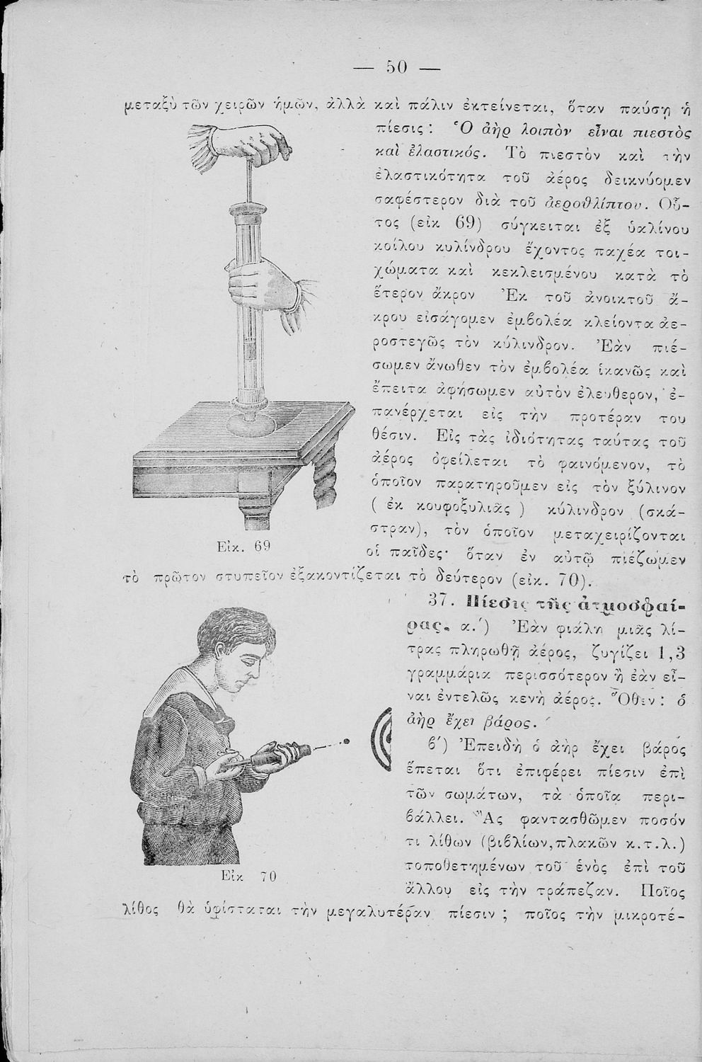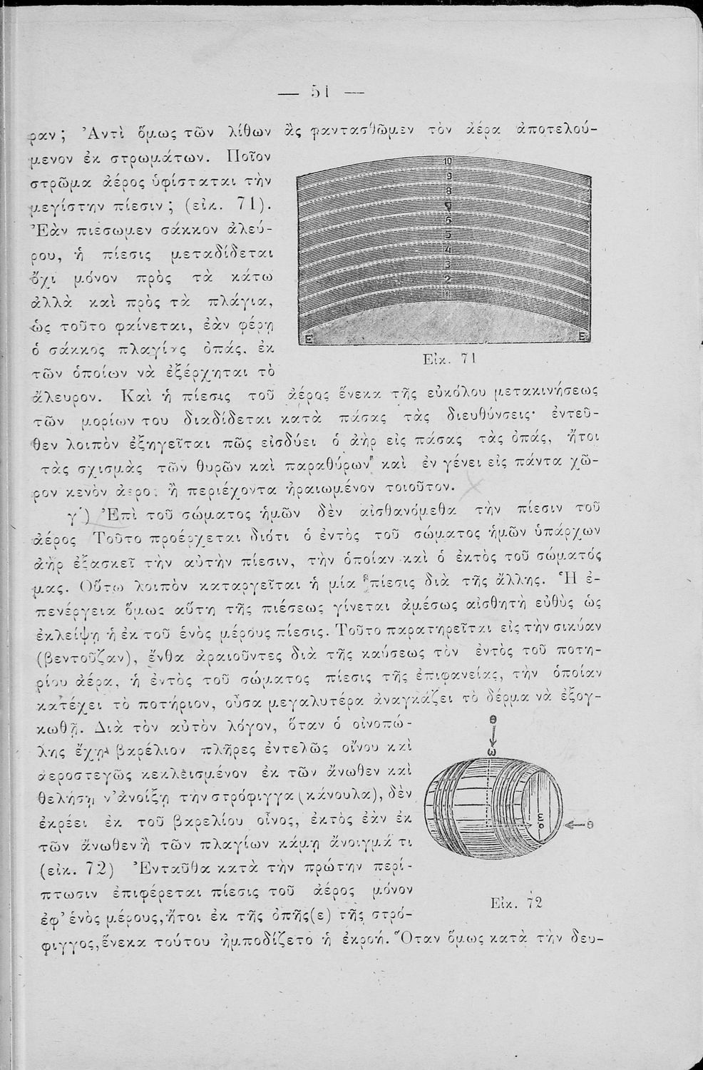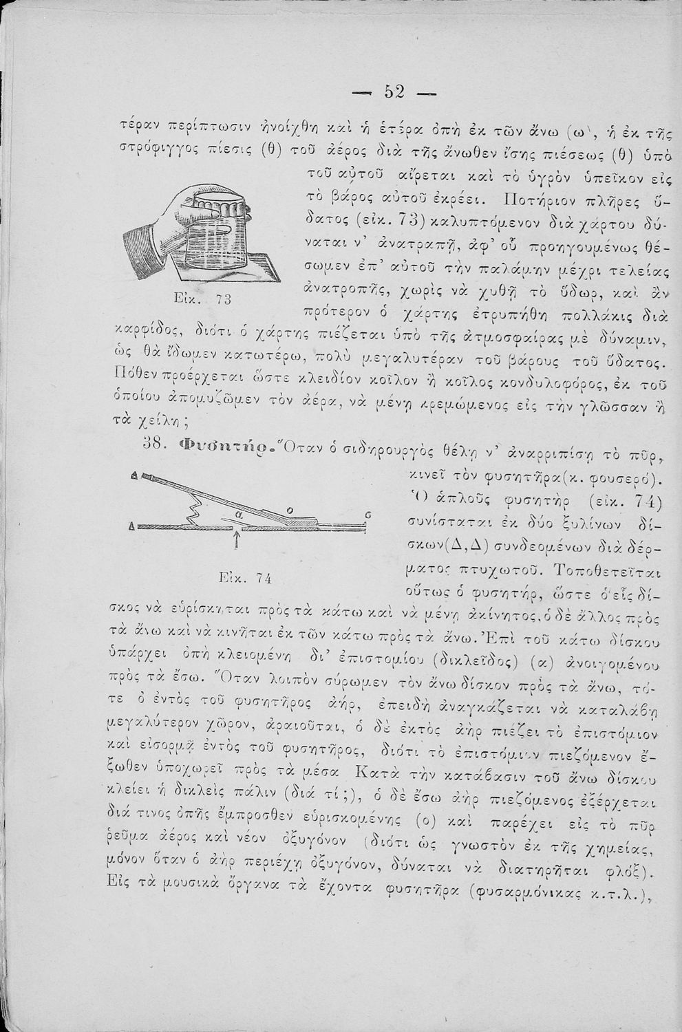 Παρουσίαση περιεχομένου: Σχολικό εγχειρίδιο Φυσικής για τα Ελληνικά Σχολεία και Παρθεναγωγεία που εστιάζει στα φυσικά φαινόμενα της θερμότητας, του ηλεκτρισμού και του μαγνητισμού, της υδροστατικής, της βαρύτητας και της αεροστατικής.