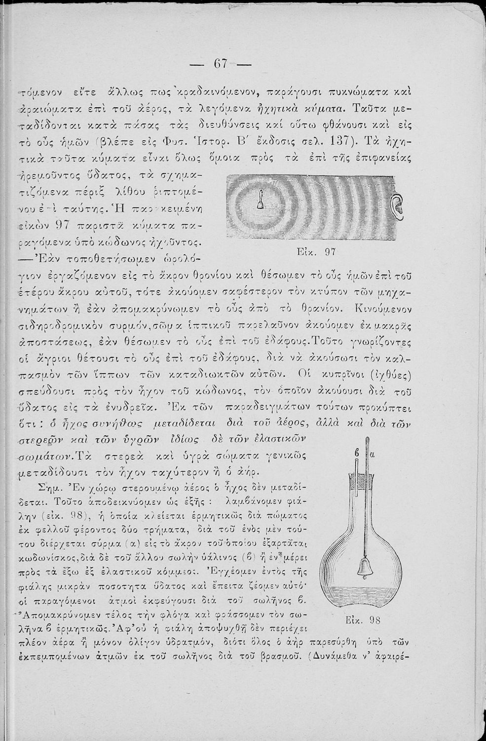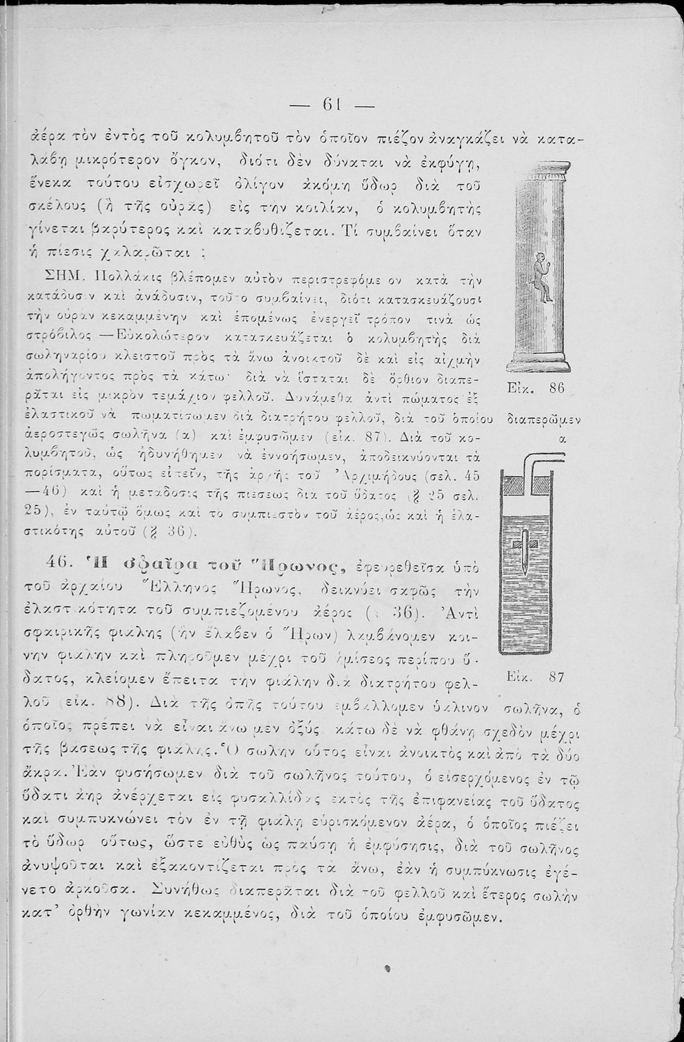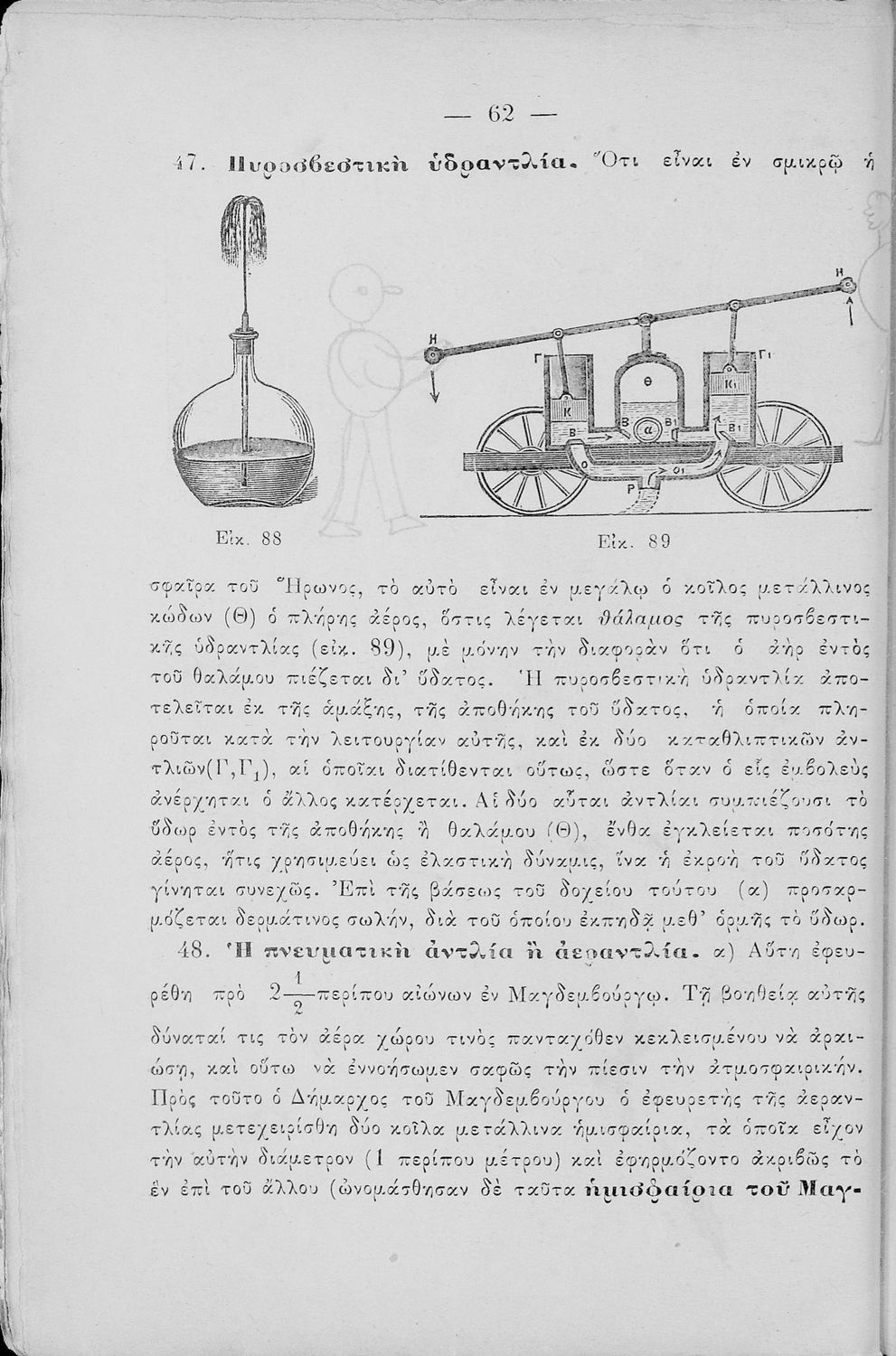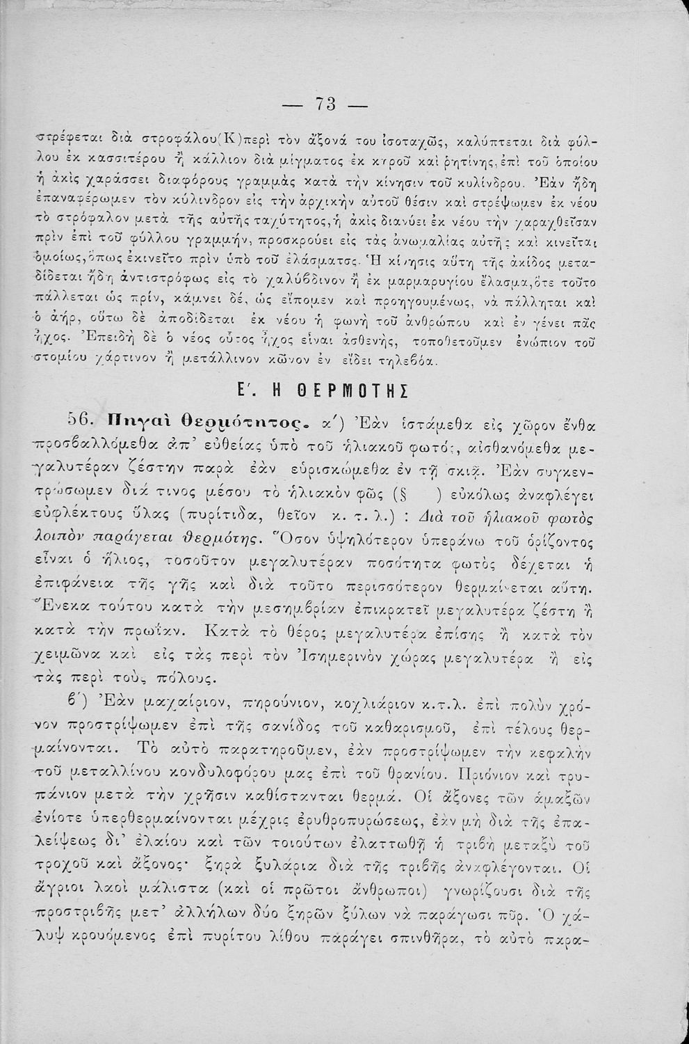 Παρουσίαση περιεχομένου: Σχολικό εγχειρίδιο Φυσικής για τα Ελληνικά Σχολεία και Παρθεναγωγεία που εστιάζει στα φυσικά φαινόμενα της θερμότητας, του ηλεκτρισμού και του μαγνητισμού, της υδροστατικής, της βαρύτητας και της αεροστατικής.