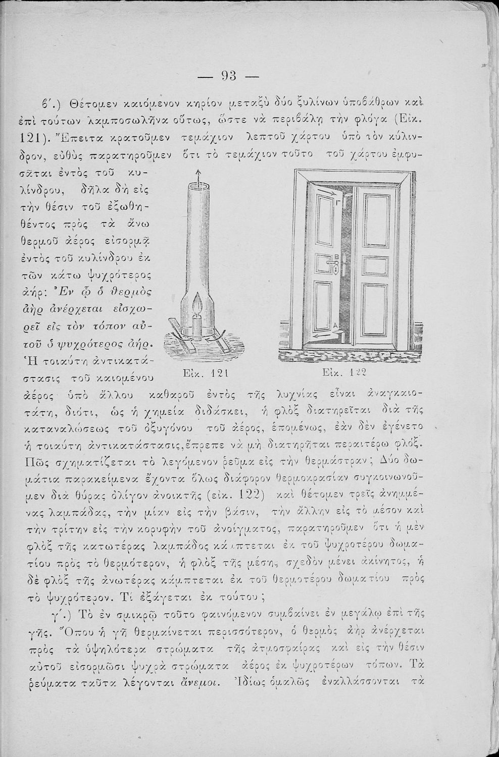 Σχολικό εγχειρίδιο Φυσικής για τα Ελληνικά Σχολεία και Παρθεναγωγεία που εστιάζει στα φυσικά φαινόμενα της θερμότητας, του ηλεκτρισμού και του μαγνητισμού, της υδροστατικής, της βαρύτητας και της αεροστατικής.
