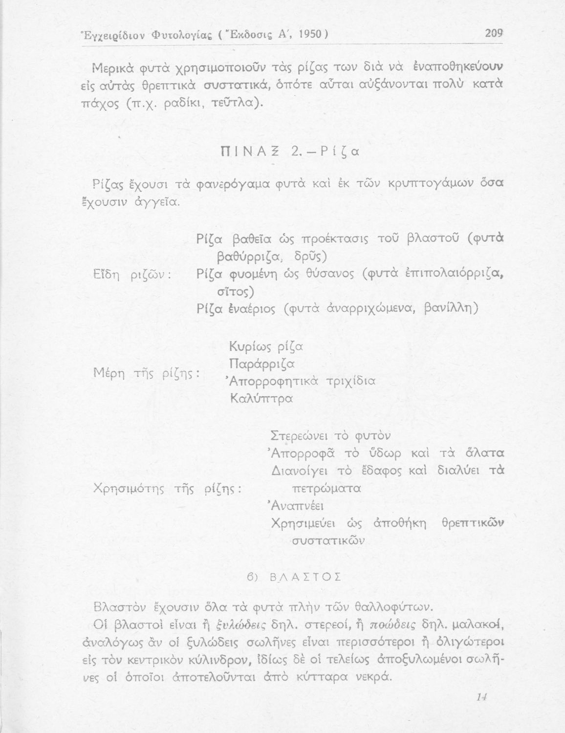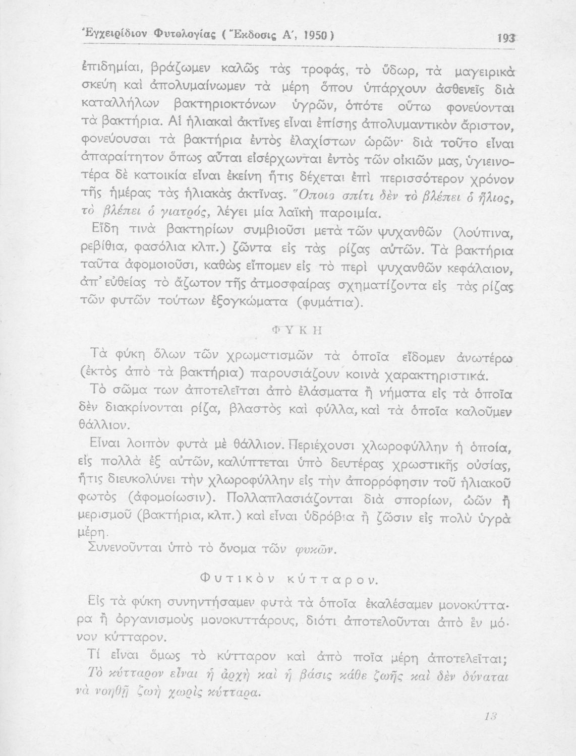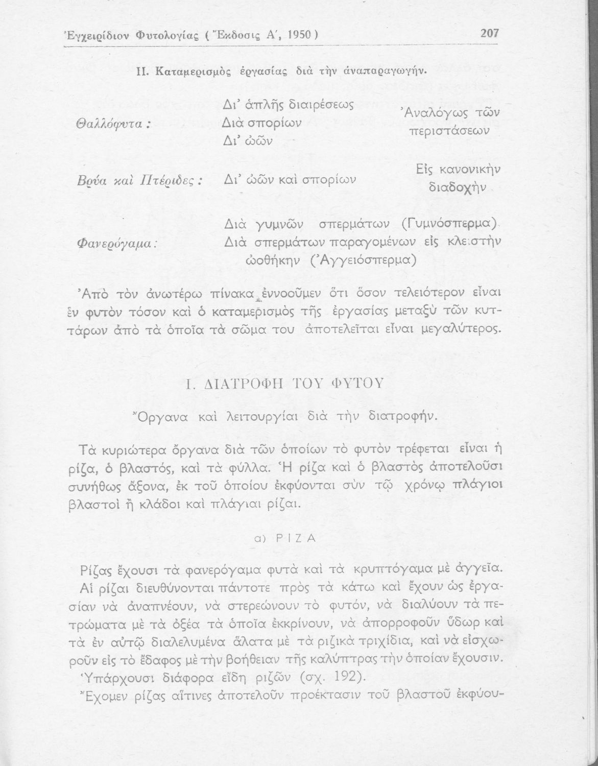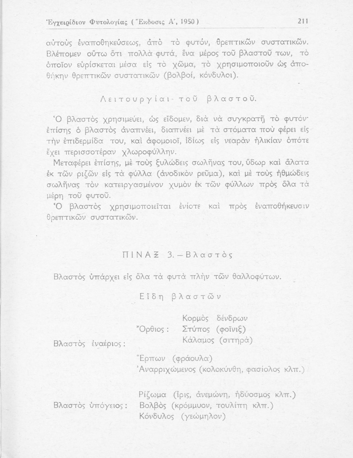 Σχολικό εγχειρίδιο Φυτολογίας για τη Β΄ τάξη των Εξαταξίων Γυμνασίων και Ημιγυμνασίων και τη Δ΄ τάξη των οκταταξίων Γυμνασίων που εξετάζει φυτά της Ελλάδας και παραθέτει στοιχεία γενικής φυτολογίας για την ...