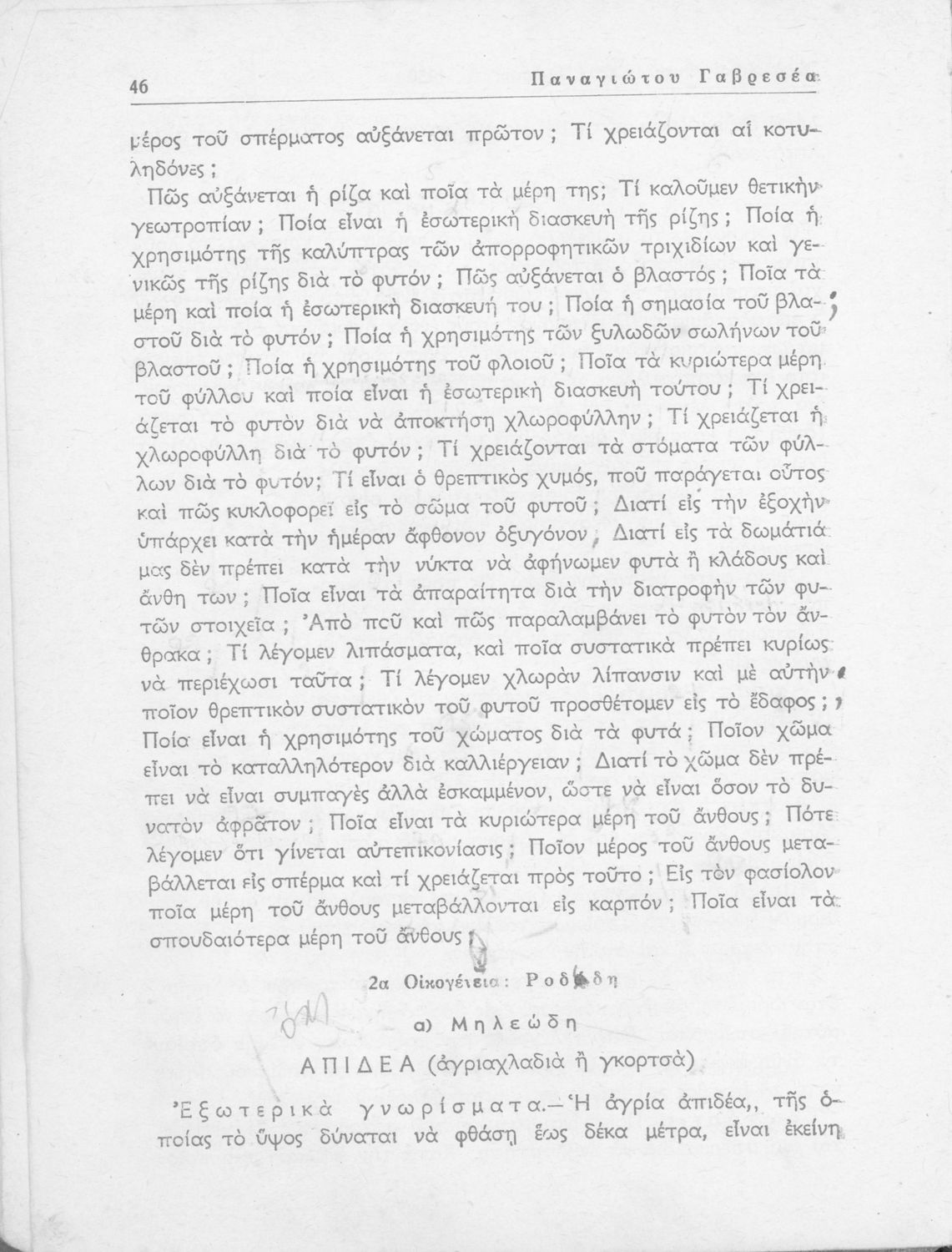 Βαθμίδα εκπαίδευσης: Δευτεροβάθμια Μάθημα: Φυτολογία Γλώσσα: Καθαρεύουσα Παρουσίαση περιεχομένου: Σχολικό εγχειρίδιο Φυτολογίας που εξετάζει φυτά και δέντρα της Ελλάδας ανάλογα με τη συνομοταξία στην οποία ανήκουν και παρέχει πληροφορίες για την αναπαραγωγή τους και τη χρησιμότητά τους για τον άνθρωπο. |