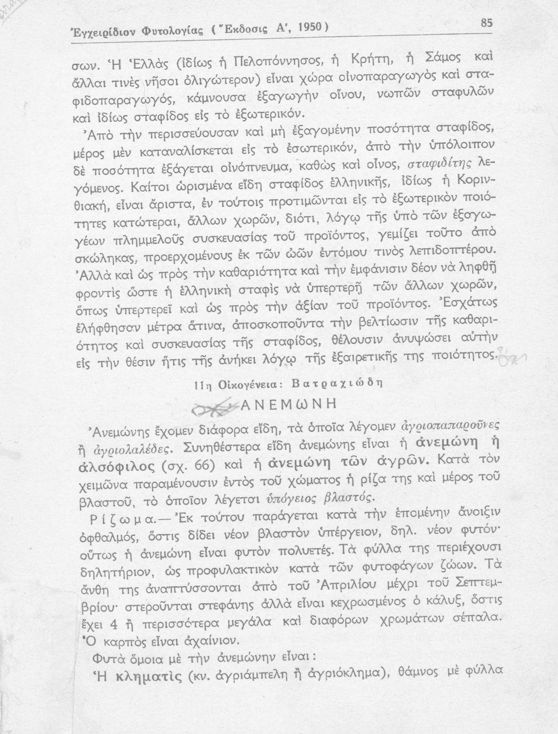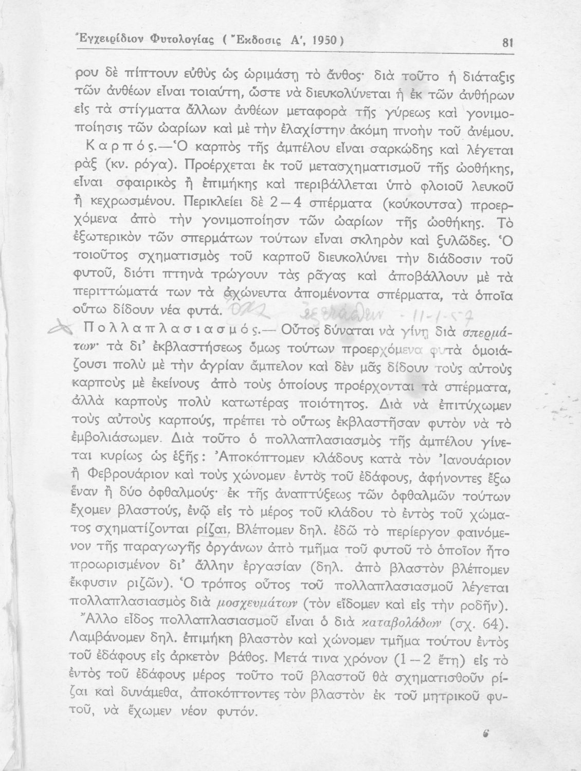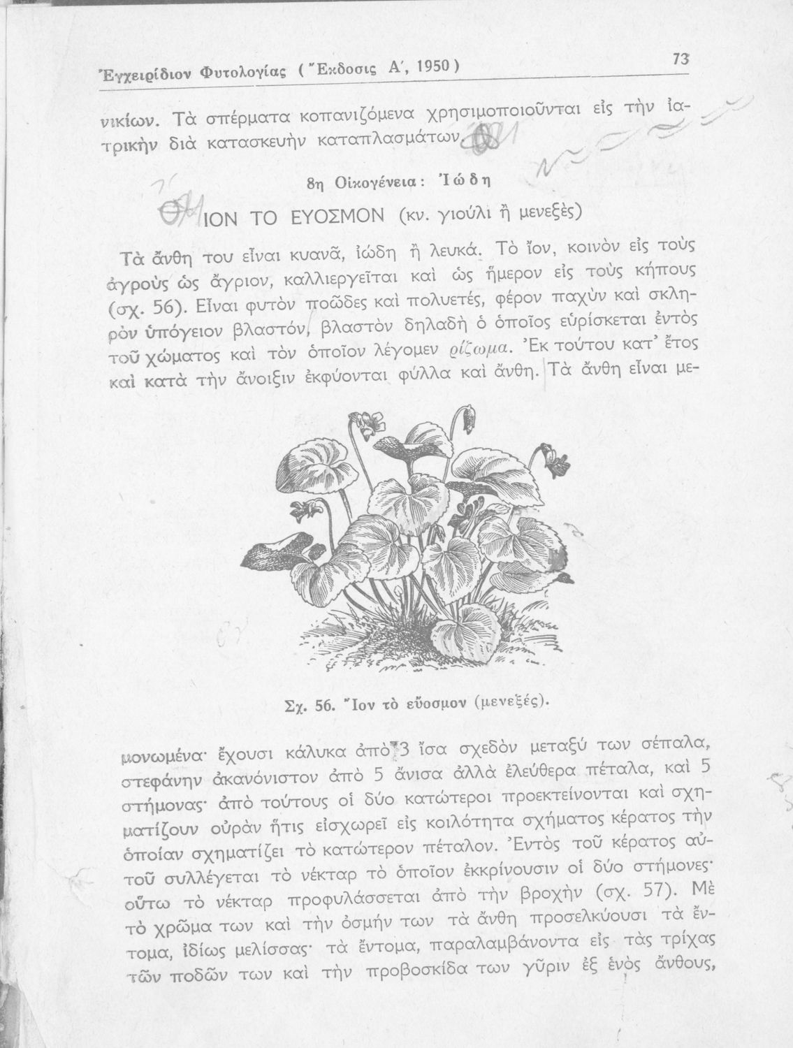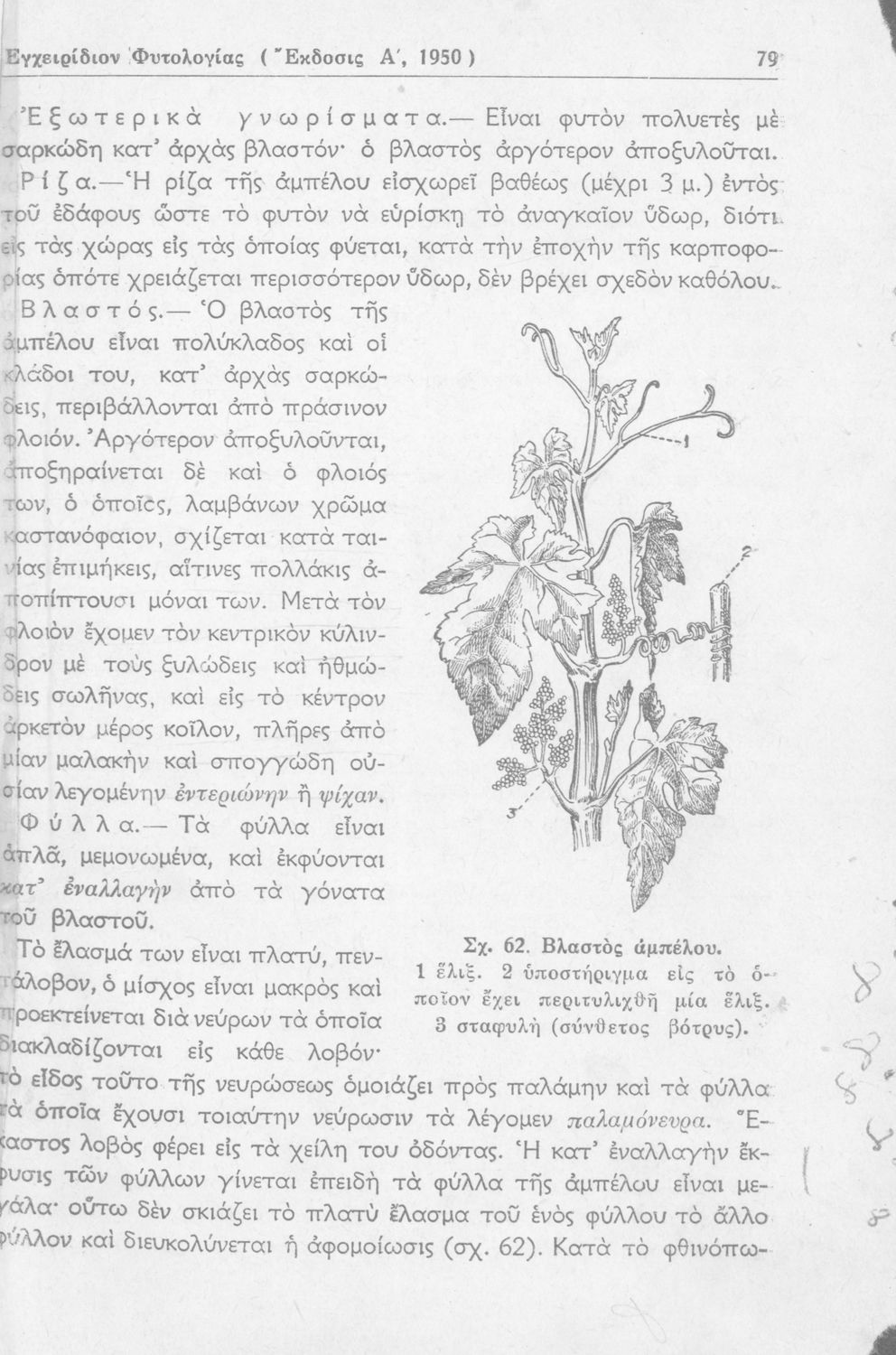 Σχολικό εγχειρίδιο Φυτολογίας για τη Β΄ τάξη των Εξαταξίων Γυμνασίων και Ημιγυμνασίων και τη Δ΄ τάξη των οκταταξίων Γυμνασίων που εξετάζει φυτά της Ελλάδας και παραθέτει στοιχεία γενικής φυτολογίας για την ...