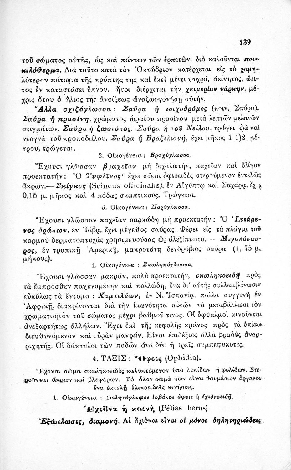 Σχολικό εγχειρίδιο Φυσικής Ιστορίας για τα Ελληνικά Σχολεία και Παρθεναγωγεία που περιλαμβάνει στοιχεία ζωολογίας και της φυτολογίας και διακρίνει τα ζώα και τα φυτά ανάλογα με την συνομοταξία στην οποία ...