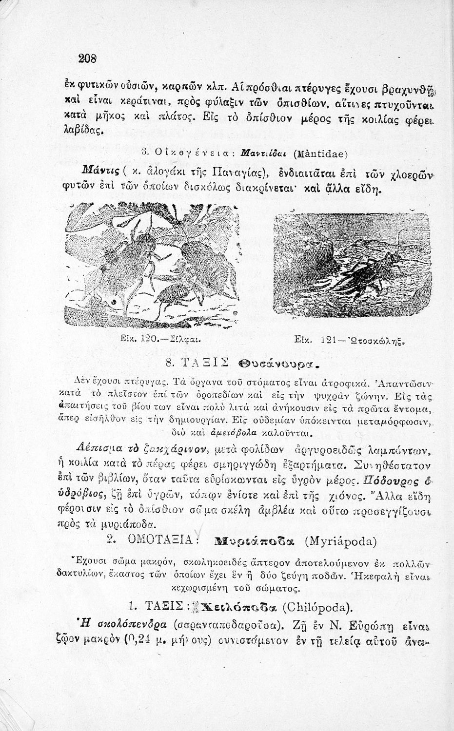 Σχολικό εγχειρίδιο Φυσικής Ιστορίας για τα Ελληνικά Σχολεία και Παρθεναγωγεία που περιλαμβάνει στοιχεία ζωολογίας και της φυτολογίας και διακρίνει τα ζώα και τα φυτά ανάλογα με την συνομοταξία στην οποία ...