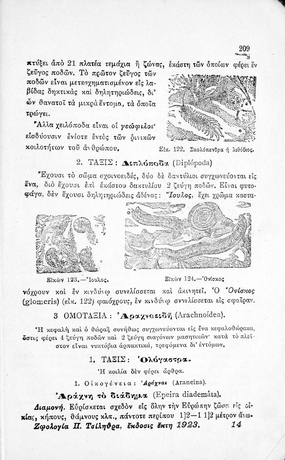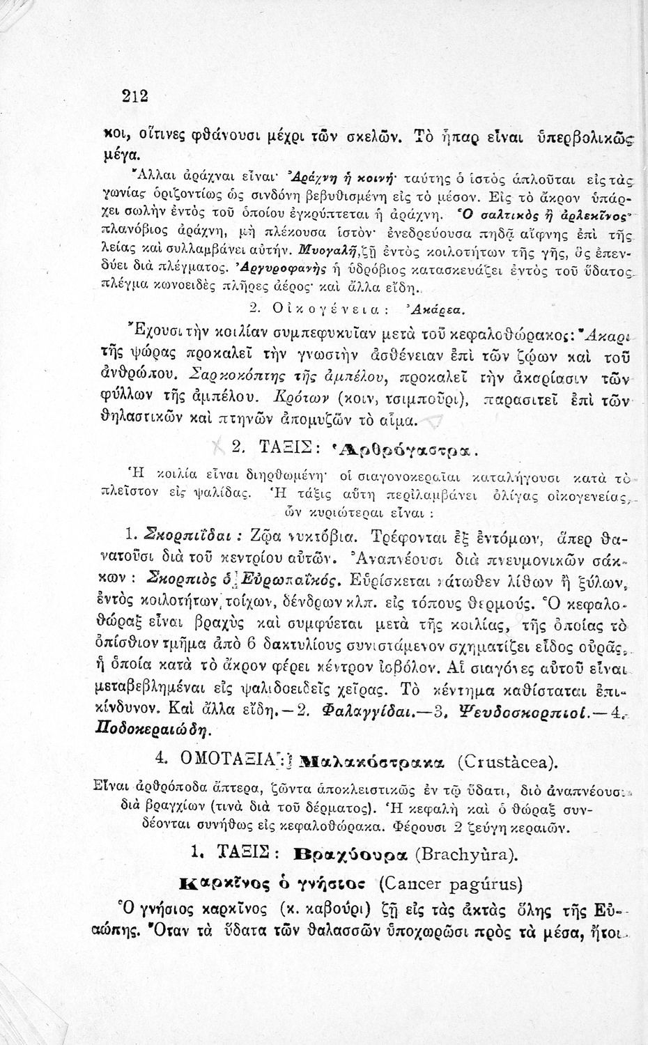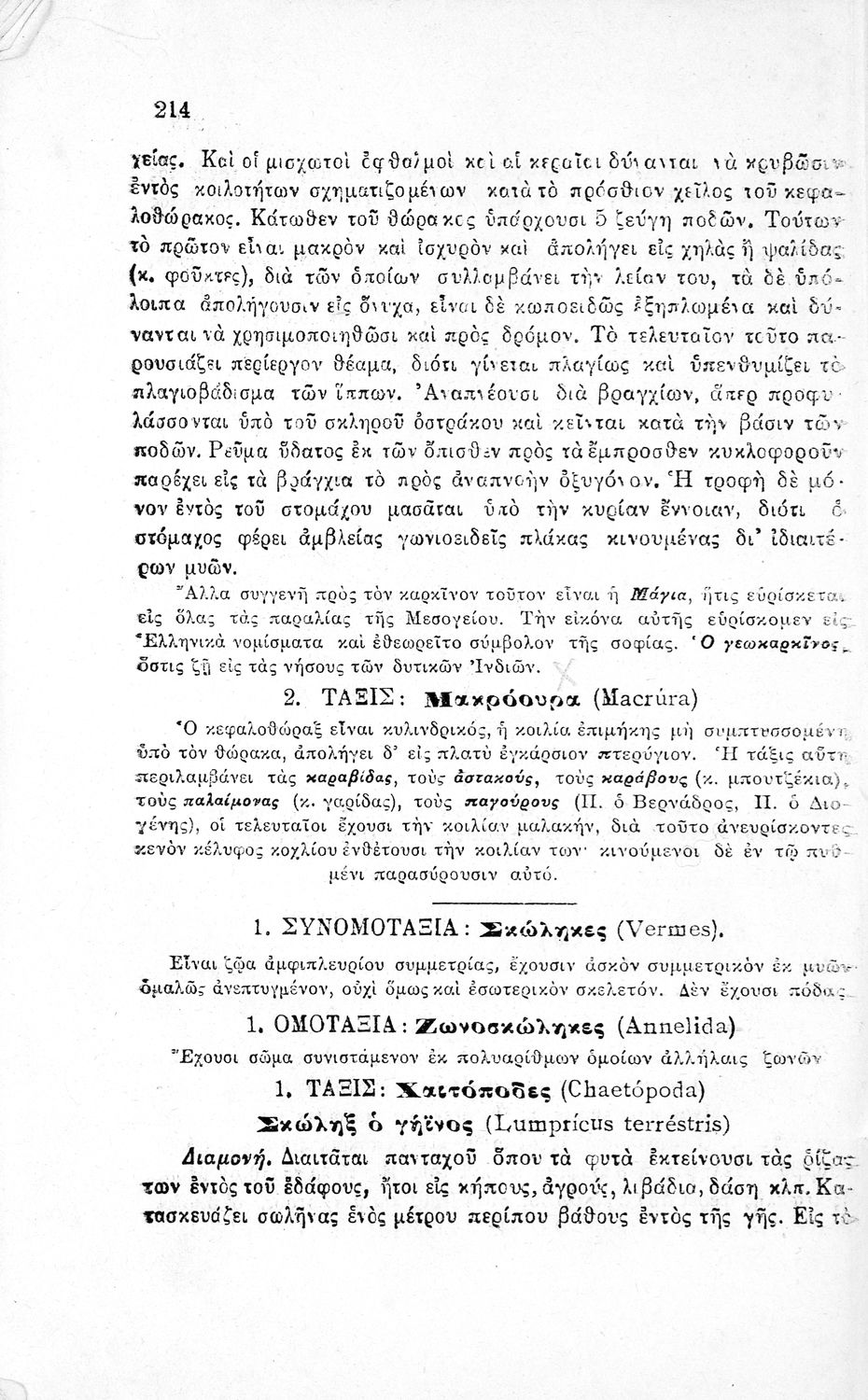 Σχολικό εγχειρίδιο Ζωολογίας για τα Γυμνάσια, τα Παρθεναγωγεία και τα Διδασκαλεία που εστιάζει στην ανθρώπινη φυσιολογία και παρουσιάζει τα διάφορα ζώα ανάλογα με την συνομοταξία στην οποία ανήκουν.