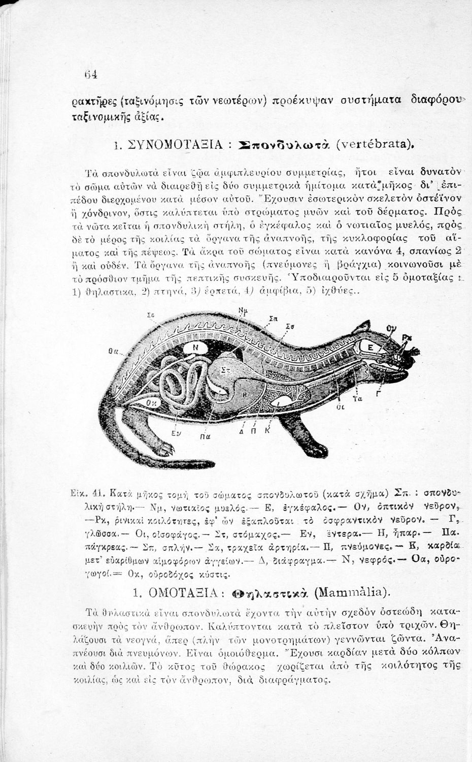 Σχολικό εγχειρίδιο Ζωολογίας για τα Γυμνάσια και τα Διδασκαλεία που εστιάζει στην ανθρώπινη φυσιολογία και παρουσιάζει τα διάφορα ζώα ανάλογα με την συνομοταξία στην οποία ανήκουν.