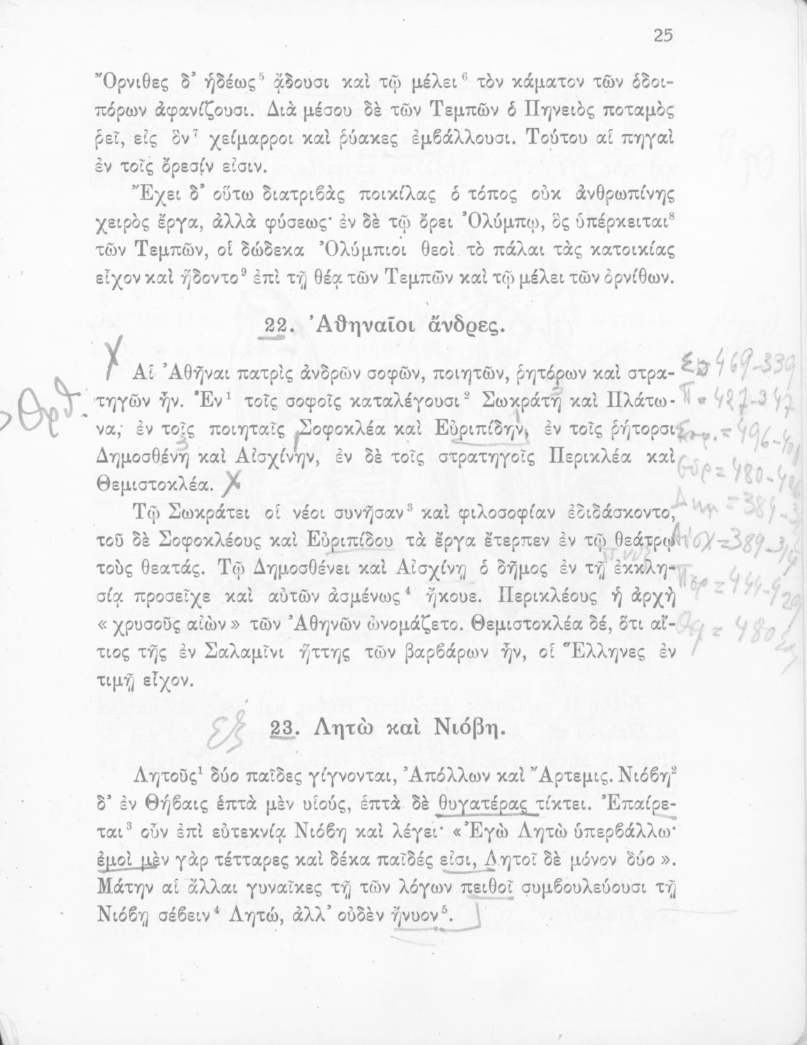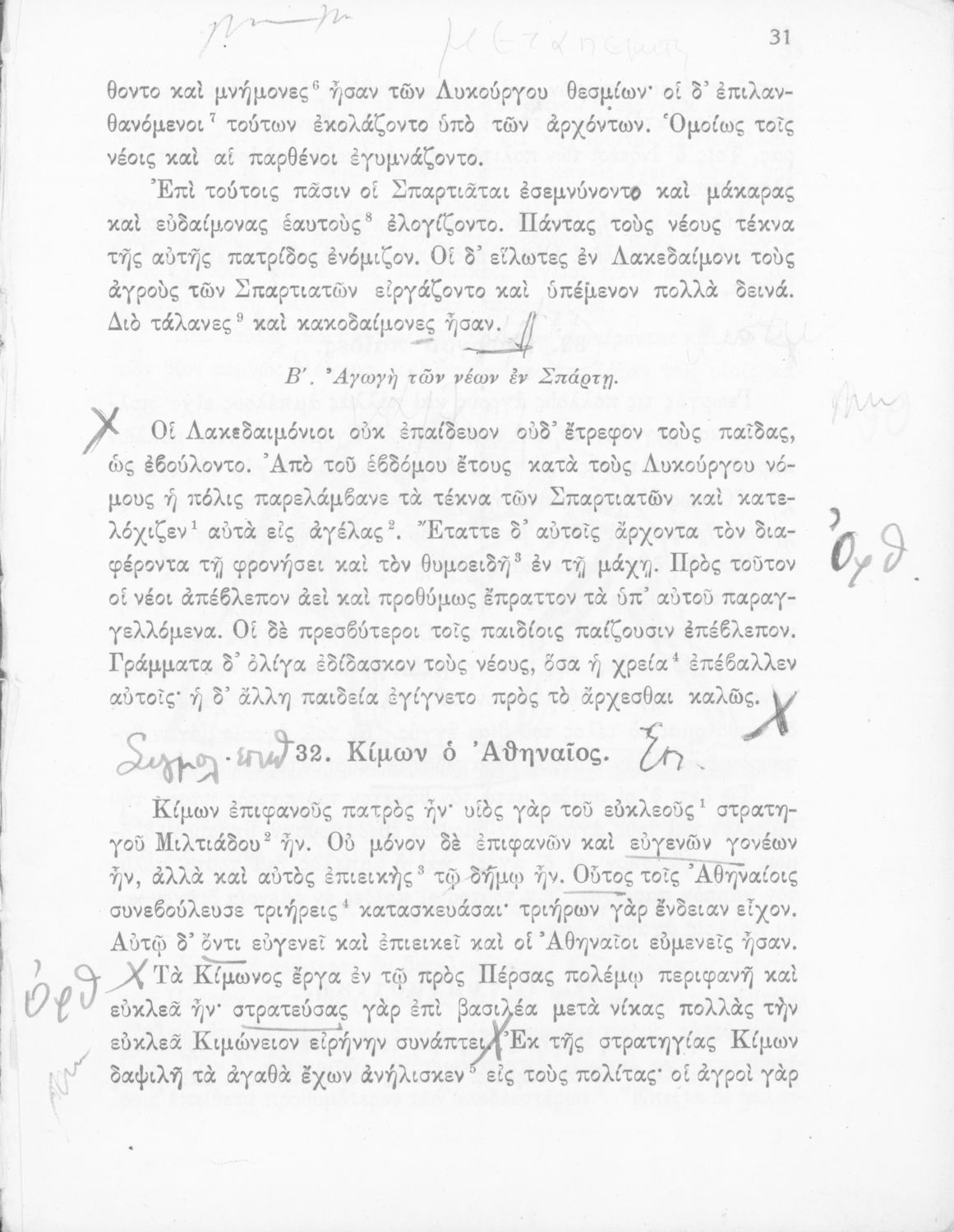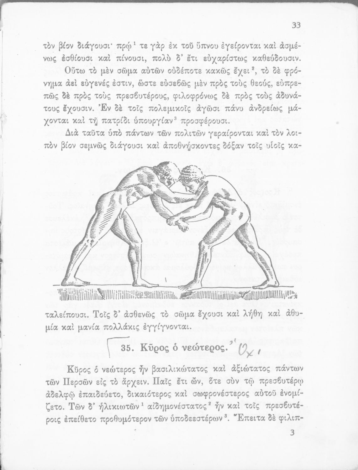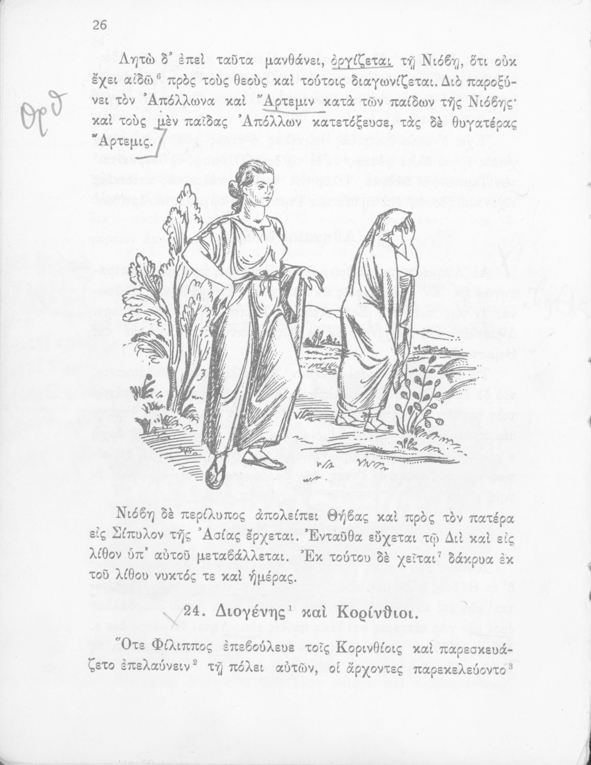 Σχολικό εγχειρίδιο Αρχαίων Ελληνικών Γυμνασίου που περιέχει κείμενα βασισμένα στην αρχαία ελληνική ιστορία και μυθολογία και γραμματικές, συντακτικές και ετυμολογικές παρατηρήσεις.