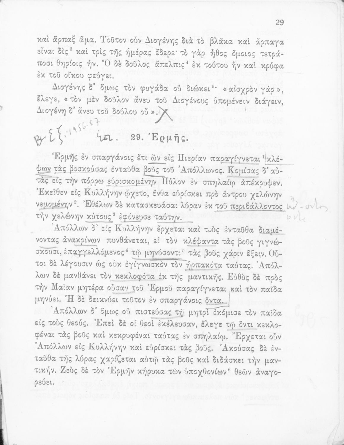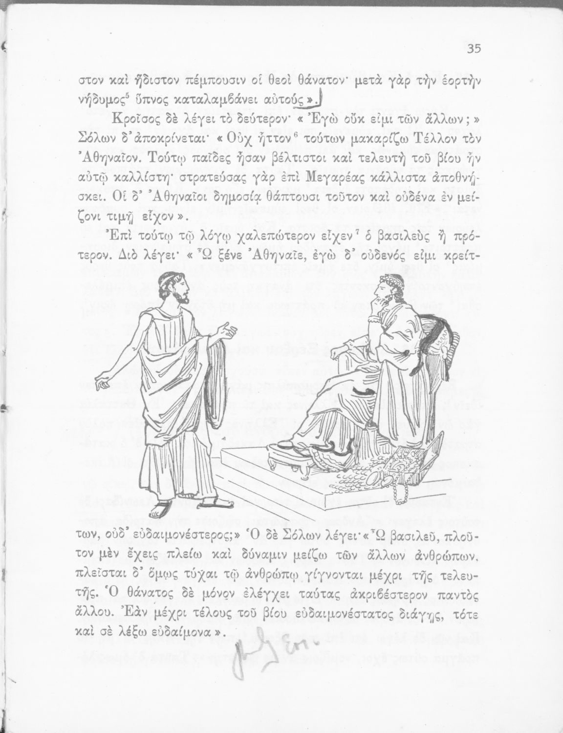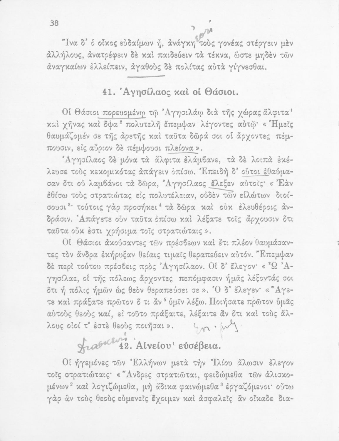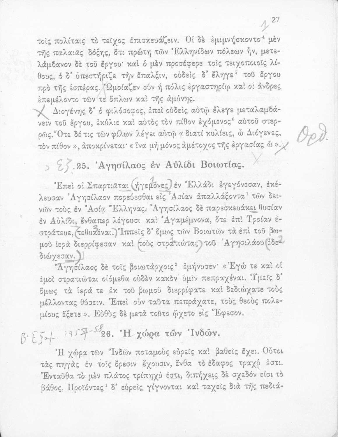 Σχολικό εγχειρίδιο Αρχαίων Ελληνικών Γυμνασίου που περιέχει κείμενα βασισμένα στην αρχαία ελληνική ιστορία και μυθολογία και γραμματικές, συντακτικές και ετυμολογικές παρατηρήσεις.