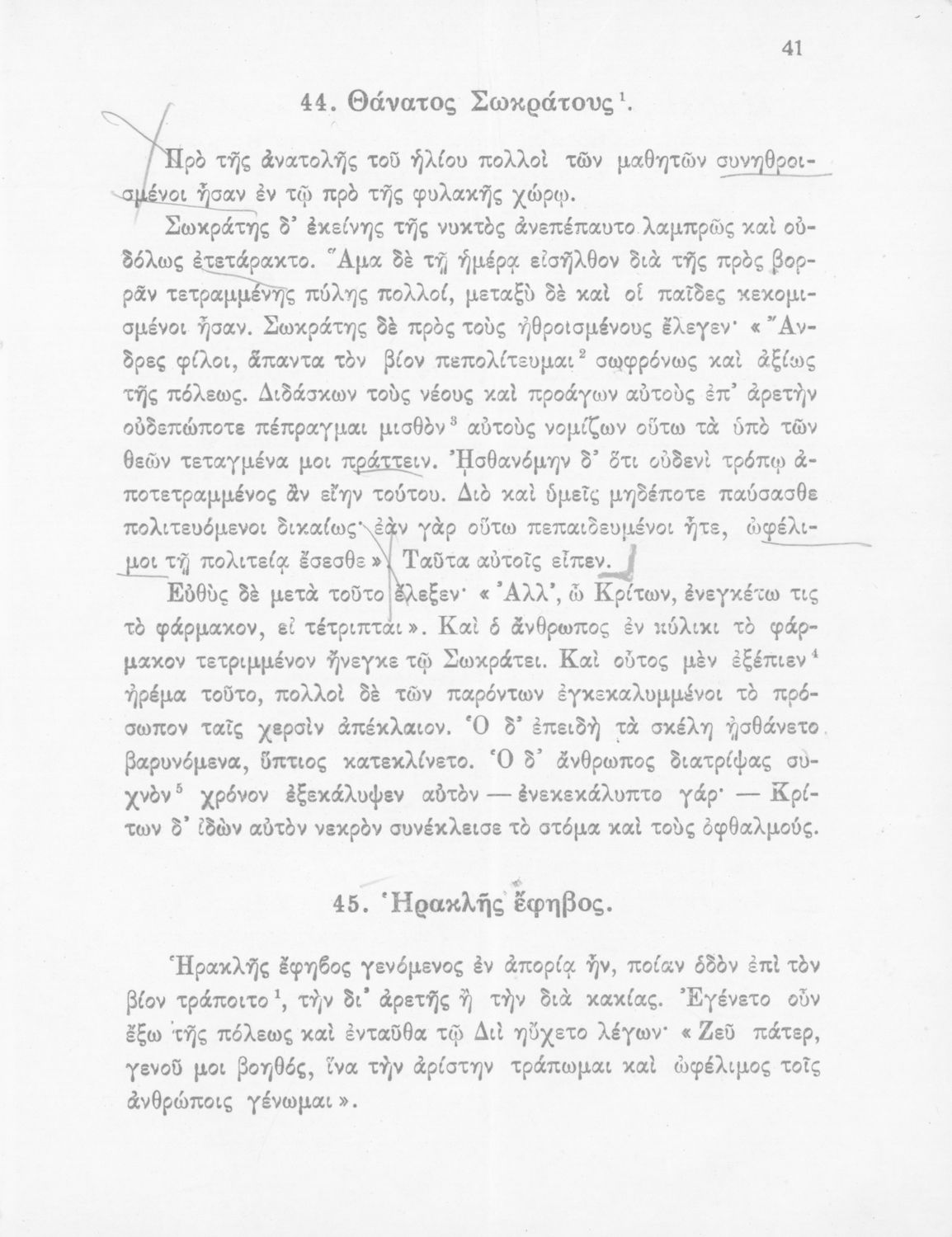 Σχολικό Εγχειρίδιο Αρχαίων Ελληνικών που περιλαμβάνει κείμενα προσαρμοσμένα στη διδασκαλία των γραμματικών και συντακτικών φαινομένων, και ερμηνευτικές και λεξιλογικές σημειώσεις.