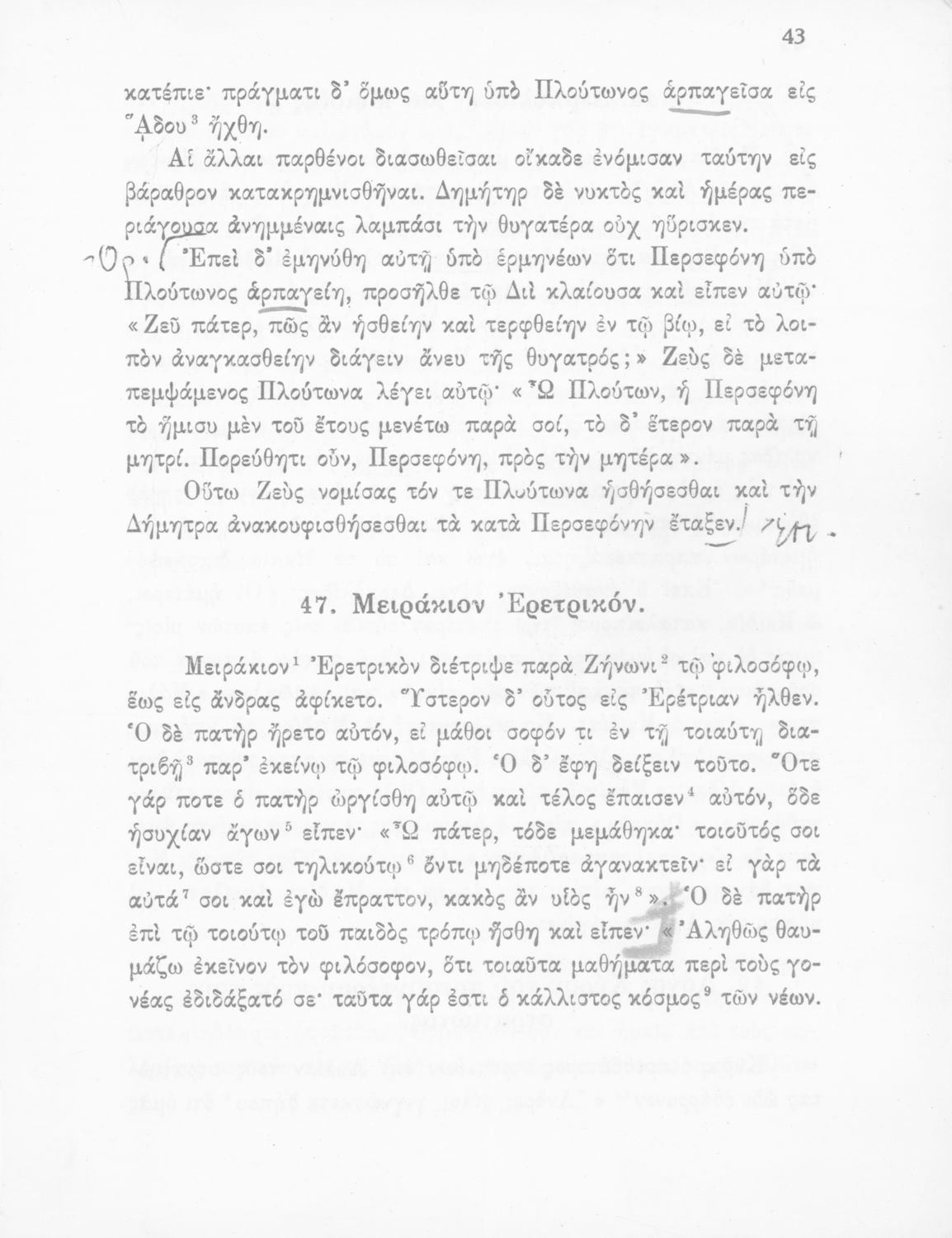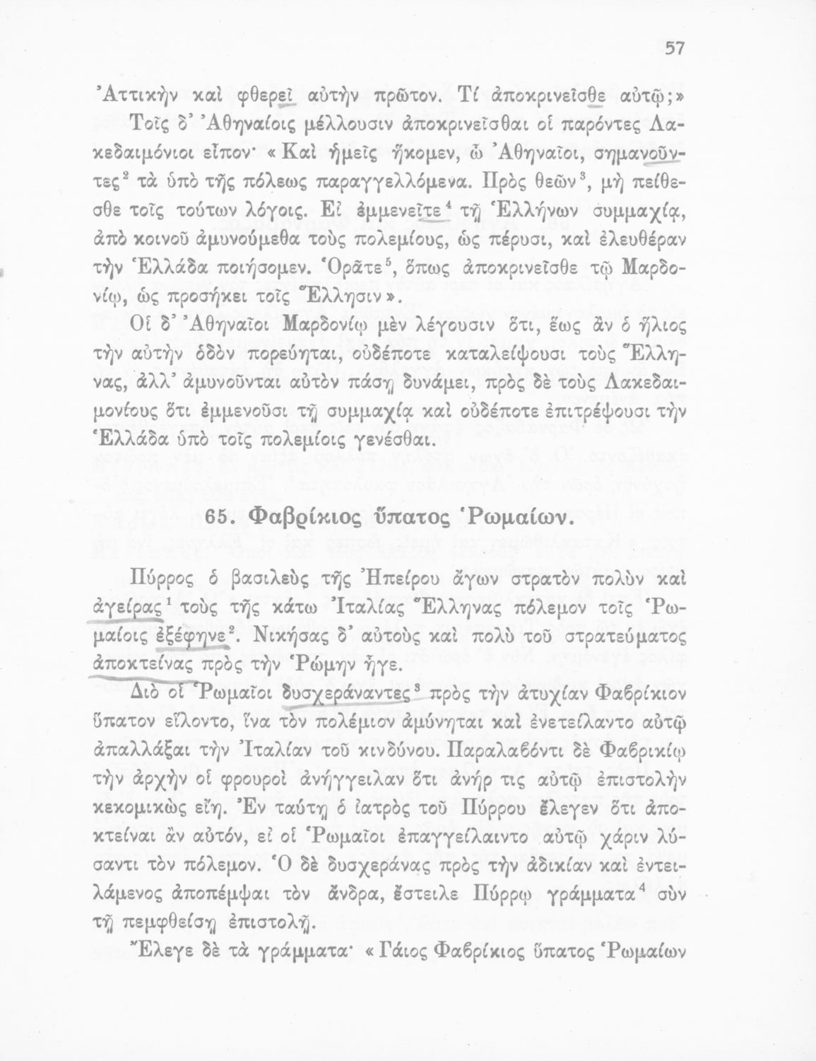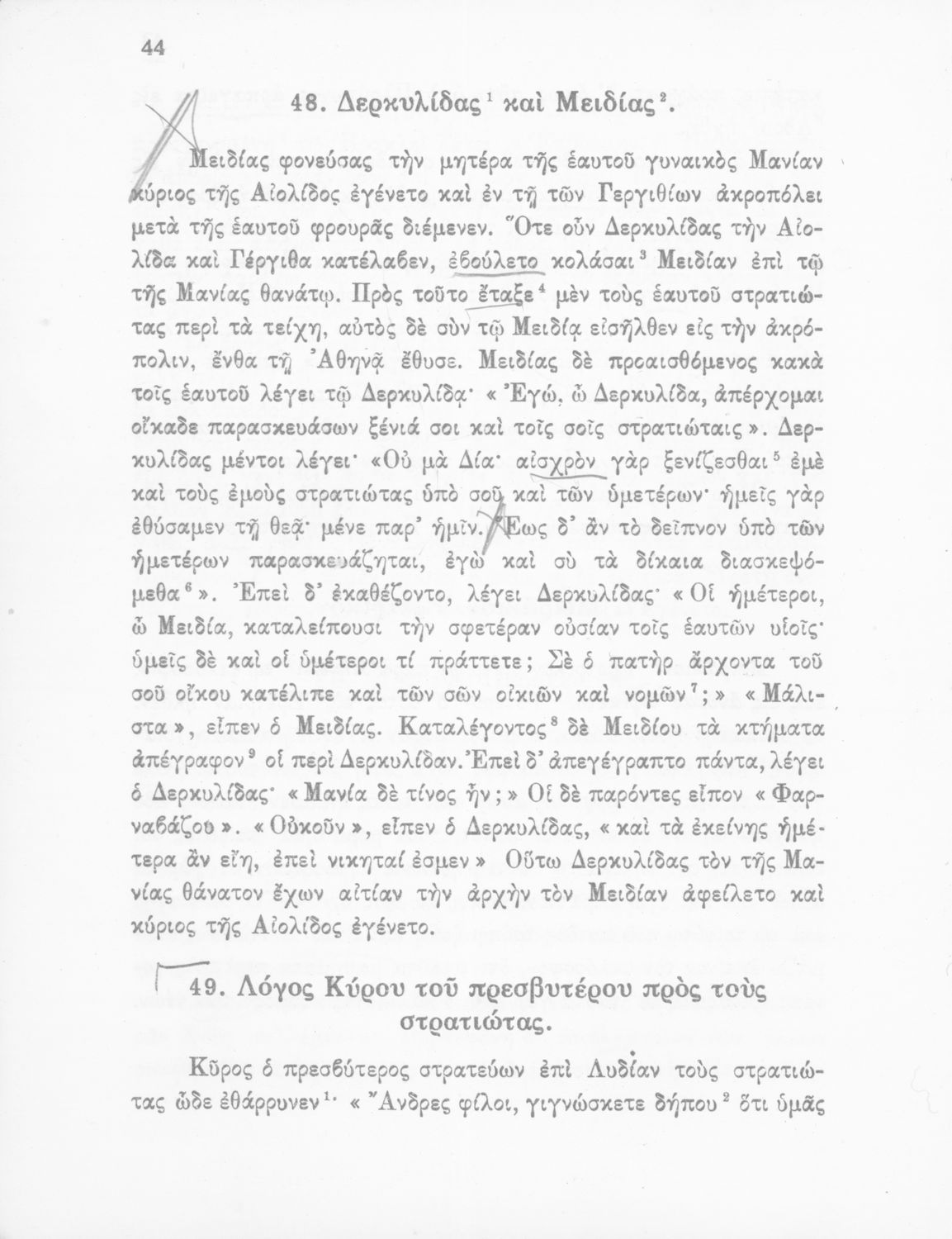 Σχολικό εγχειρίδιο Αρχαίων Ελληνικών Γυμνασίου που περιέχει κείμενα βασισμένα στην αρχαία ελληνική ιστορία και μυθολογία και γραμματικές, συντακτικές και ετυμολογικές παρατηρήσεις.