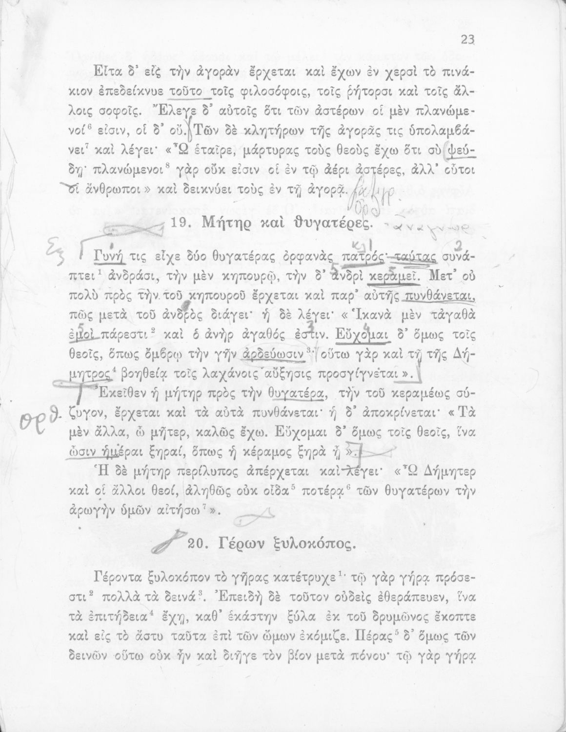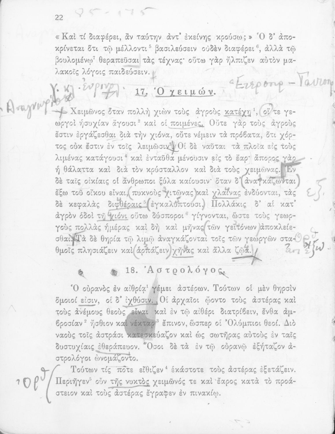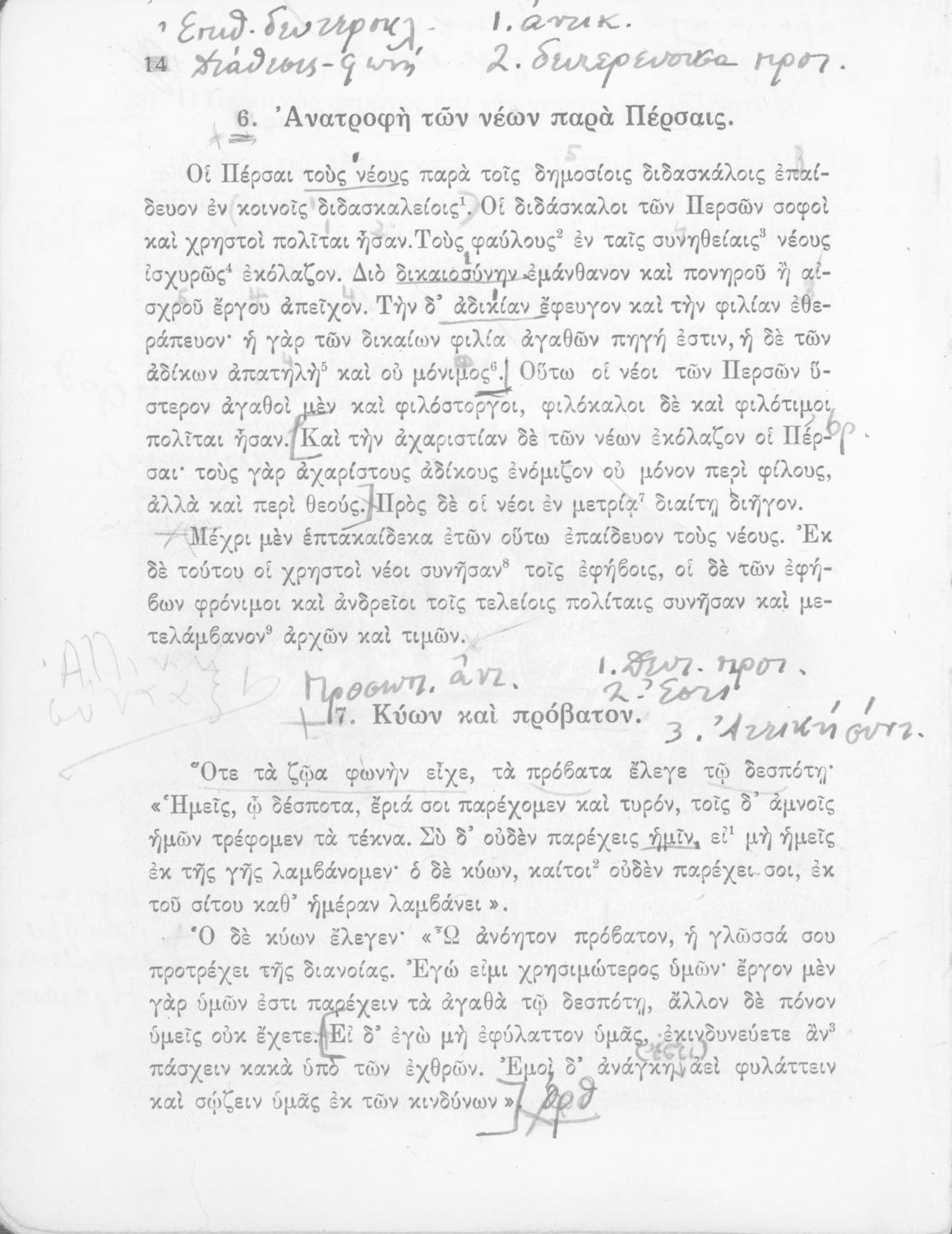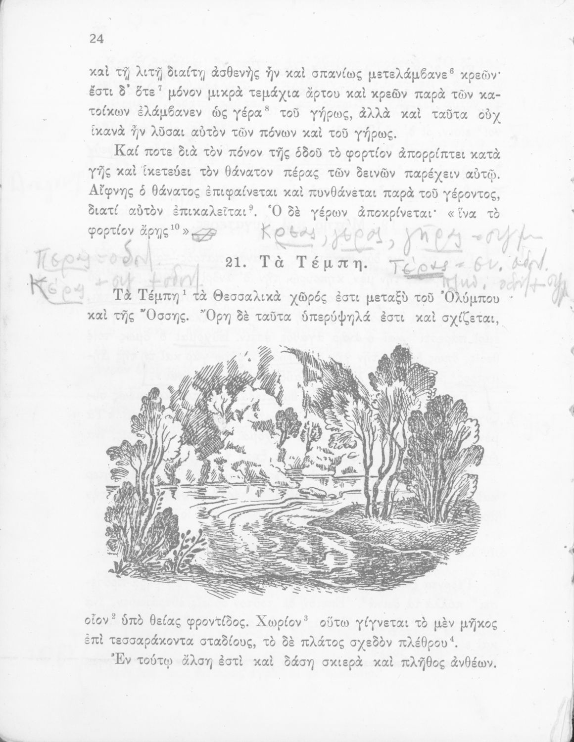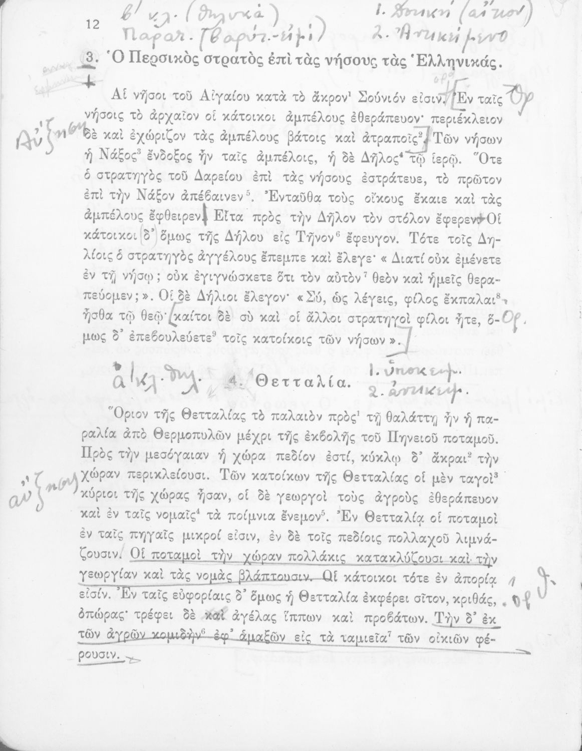 Σχολικό Εγχειρίδιο Αρχαίων Ελληνικών που περιλαμβάνει κείμενα προσαρμοσμένα στη διδασκαλία των γραμματικών και συντακτικών φαινομένων, και ερμηνευτικές και λεξιλογικές σημειώσεις.