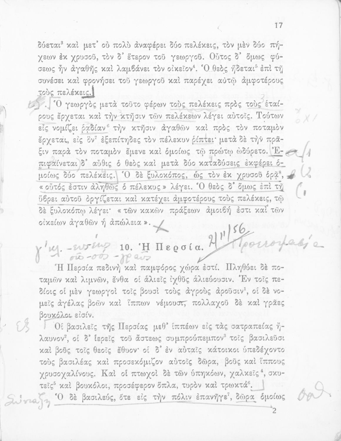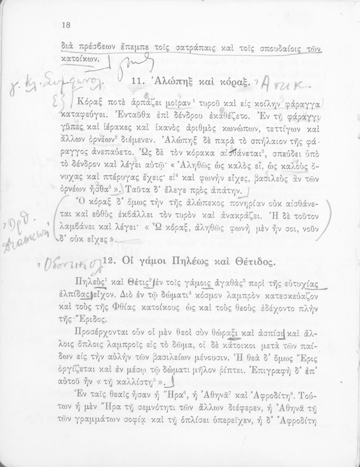 Σχολικό εγχειρίδιο Αρχαίων Ελληνικών Γυμνασίου που περιέχει κείμενα βασισμένα στην αρχαία ελληνική ιστορία και μυθολογία και γραμματικές, συντακτικές και ετυμολογικές παρατηρήσεις.