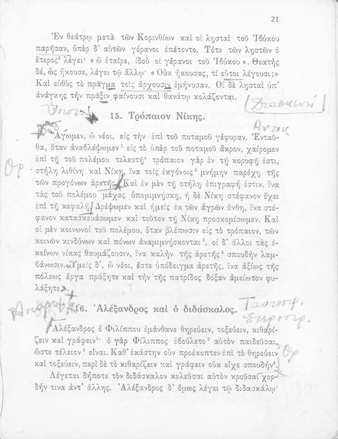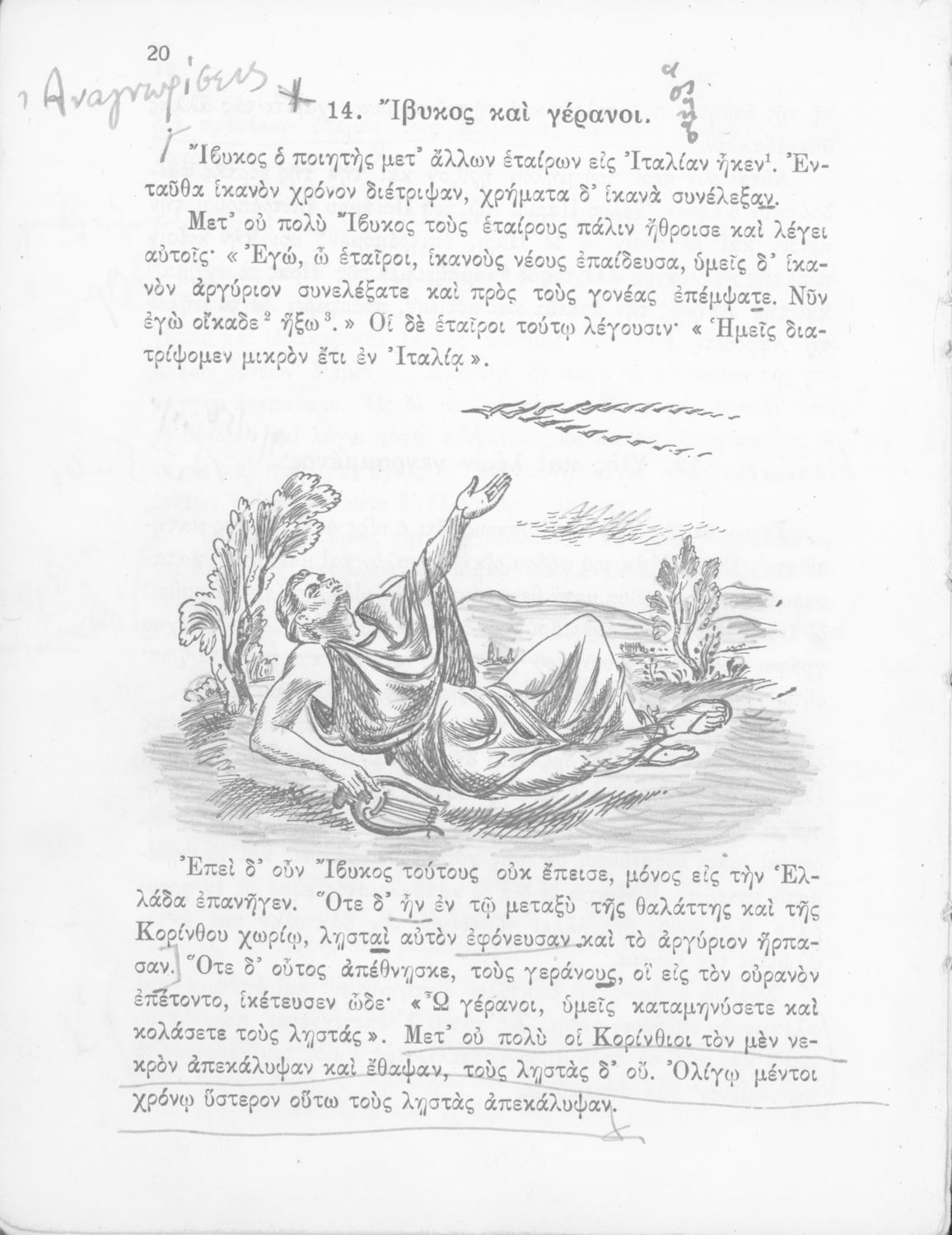 Σχολικό εγχειρίδιο Αρχαίων Ελληνικών που περιλαμβάνει σύντομα κείμενα εμπνευσμένα από την αρχαία ελληνική ιστορία και μυθολογία που χρησιμοποιούνται για τη διδασκαλία γραμματικών και συντακτικών φαινομένων ...